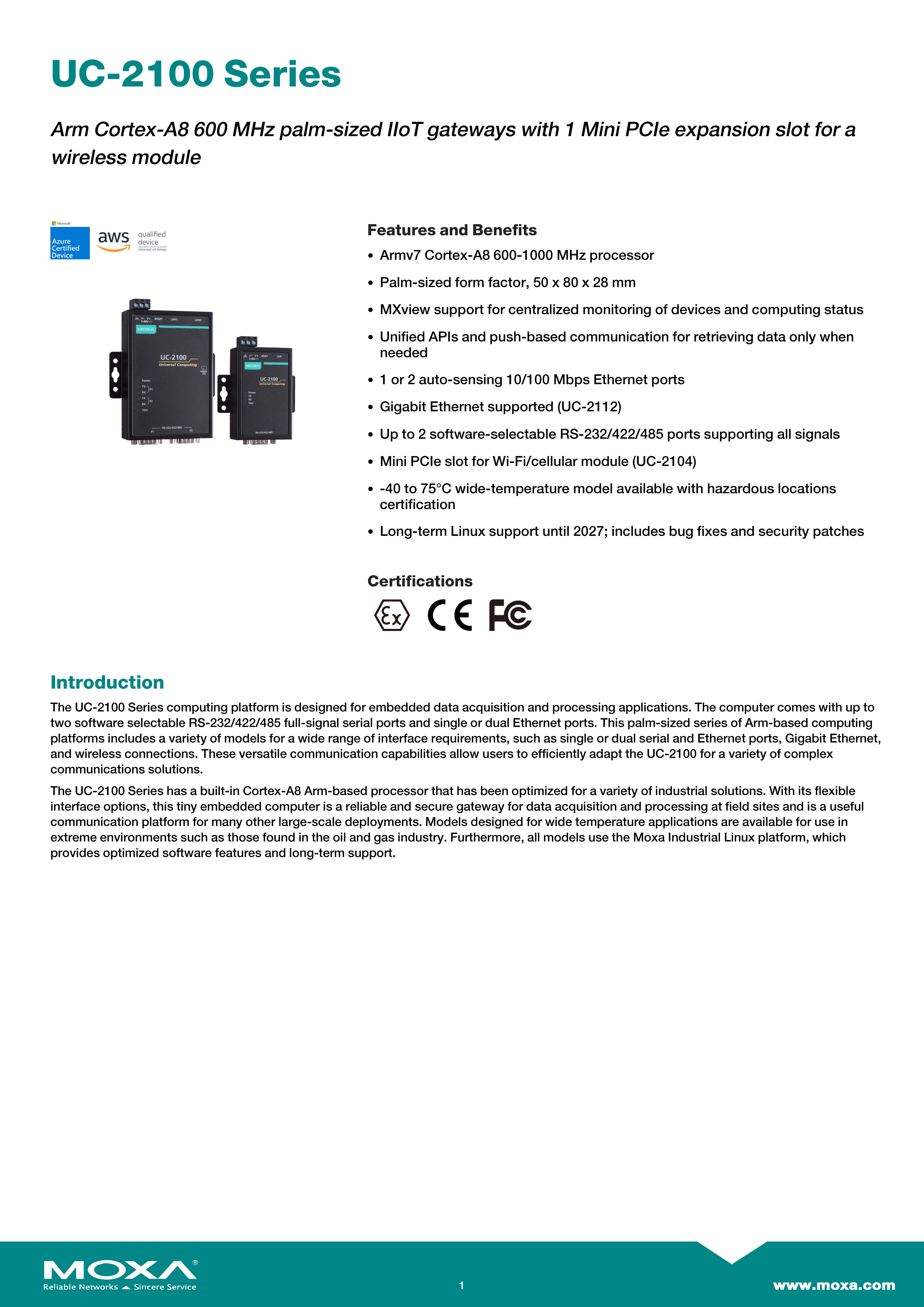สินค้ายี่ห้อ MOXA รุ่น UC-2112-LX รายละเอียดสินค้า Arm-Based Computers คอมพิวเตอร์อุตสาหกรรมขนาดกะทัดรัดแบบไร้พัดลมที่ใช้สถาปัตยกรรม ARM ✅ ขอราคาพิเศษสำหรับงานโครงการติดต่อ Mobile : 063-879-9917Line ID : @aimonline