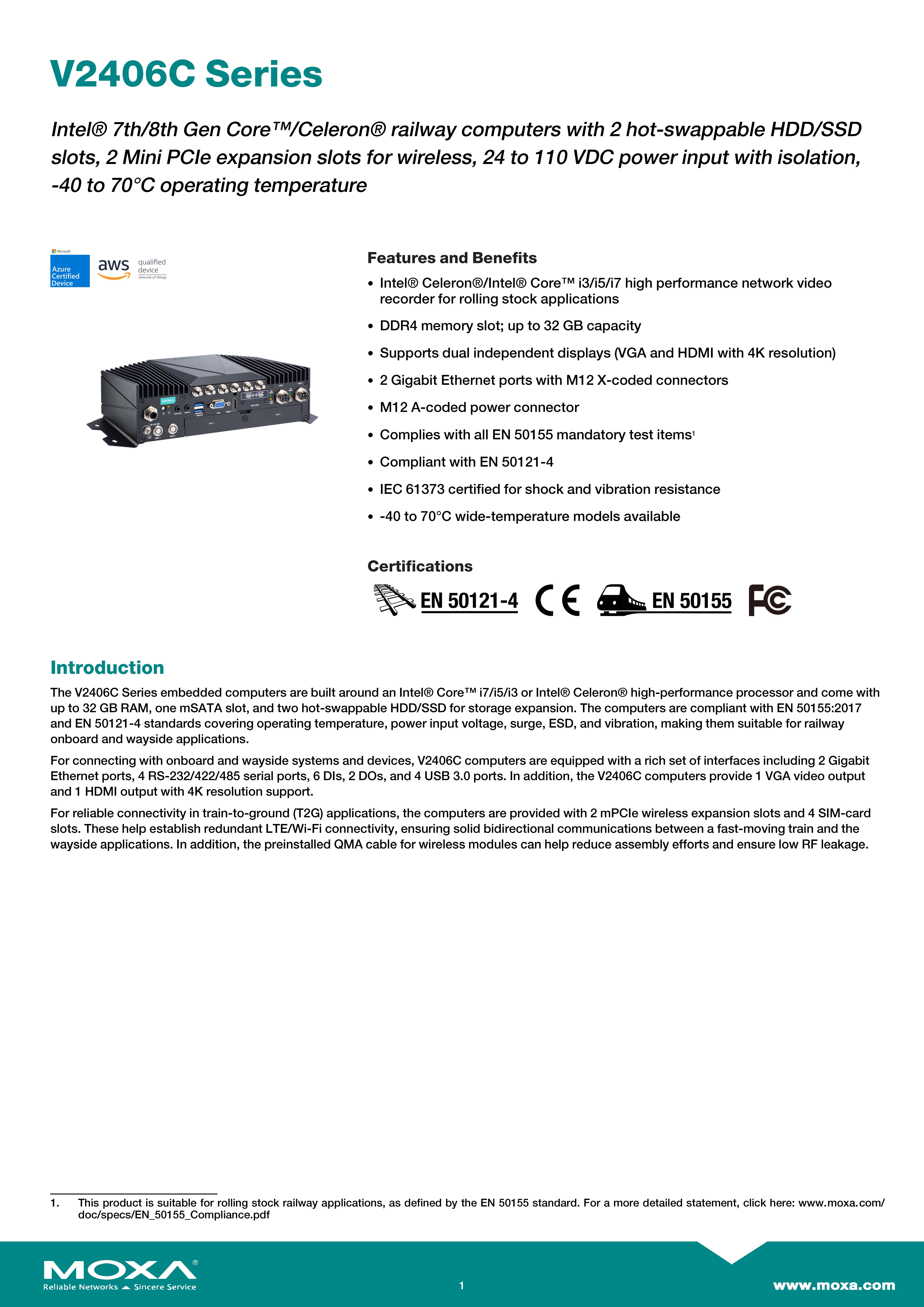 สินค้ายี่ห้อ MOXA รุ่น V2406C-WL7-T รายละเอียดสินค้า Industrial Embedded Computer (คอมพิวเตอร์เกรดอุตสาหกรรมสำหรับยานพาหนะ/รถไฟ) ✅ ขอราคาพิเศษสำหรับงานโครงการติดต่อ Mobile : 063-879-9917Line ID : @aimonline