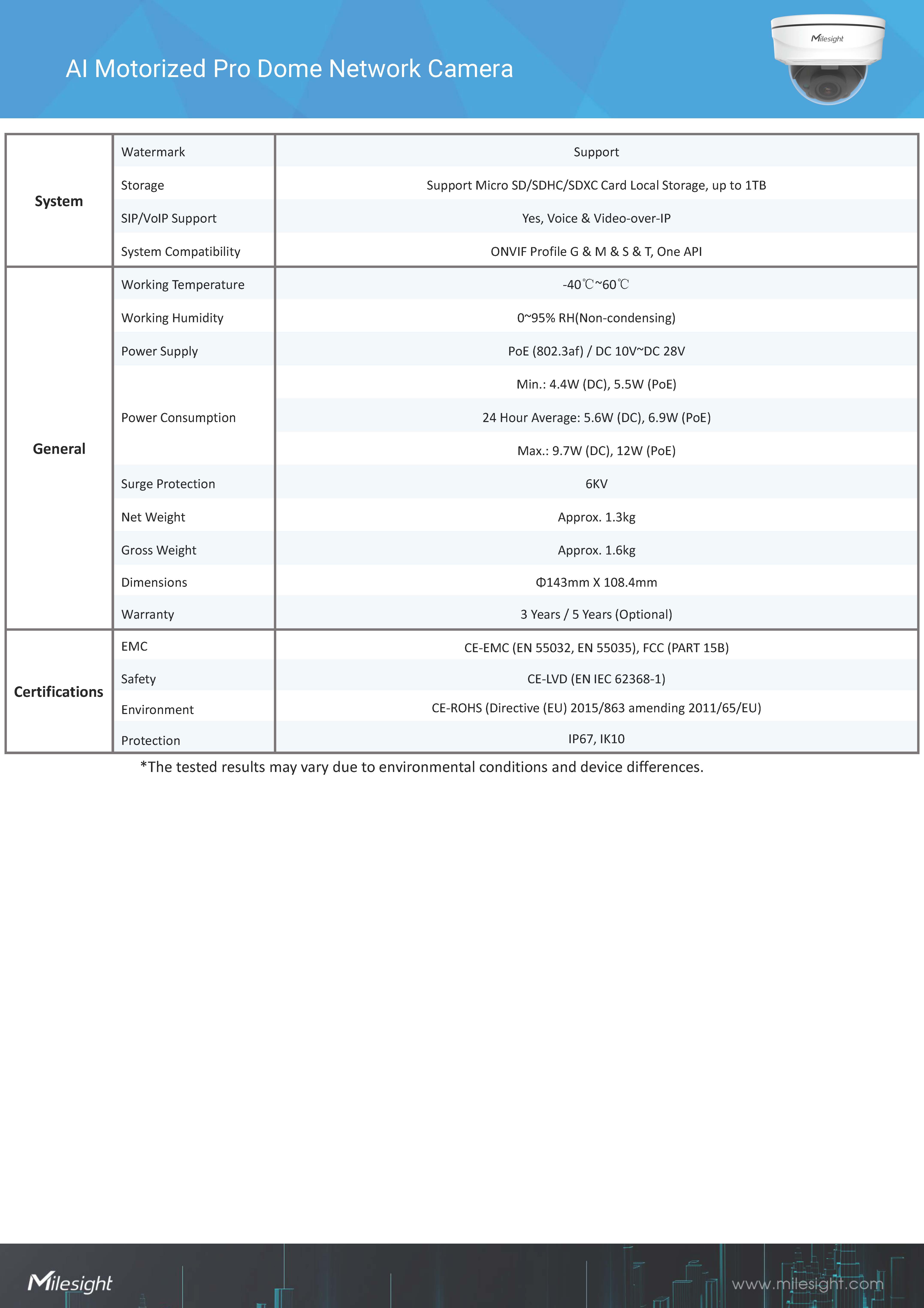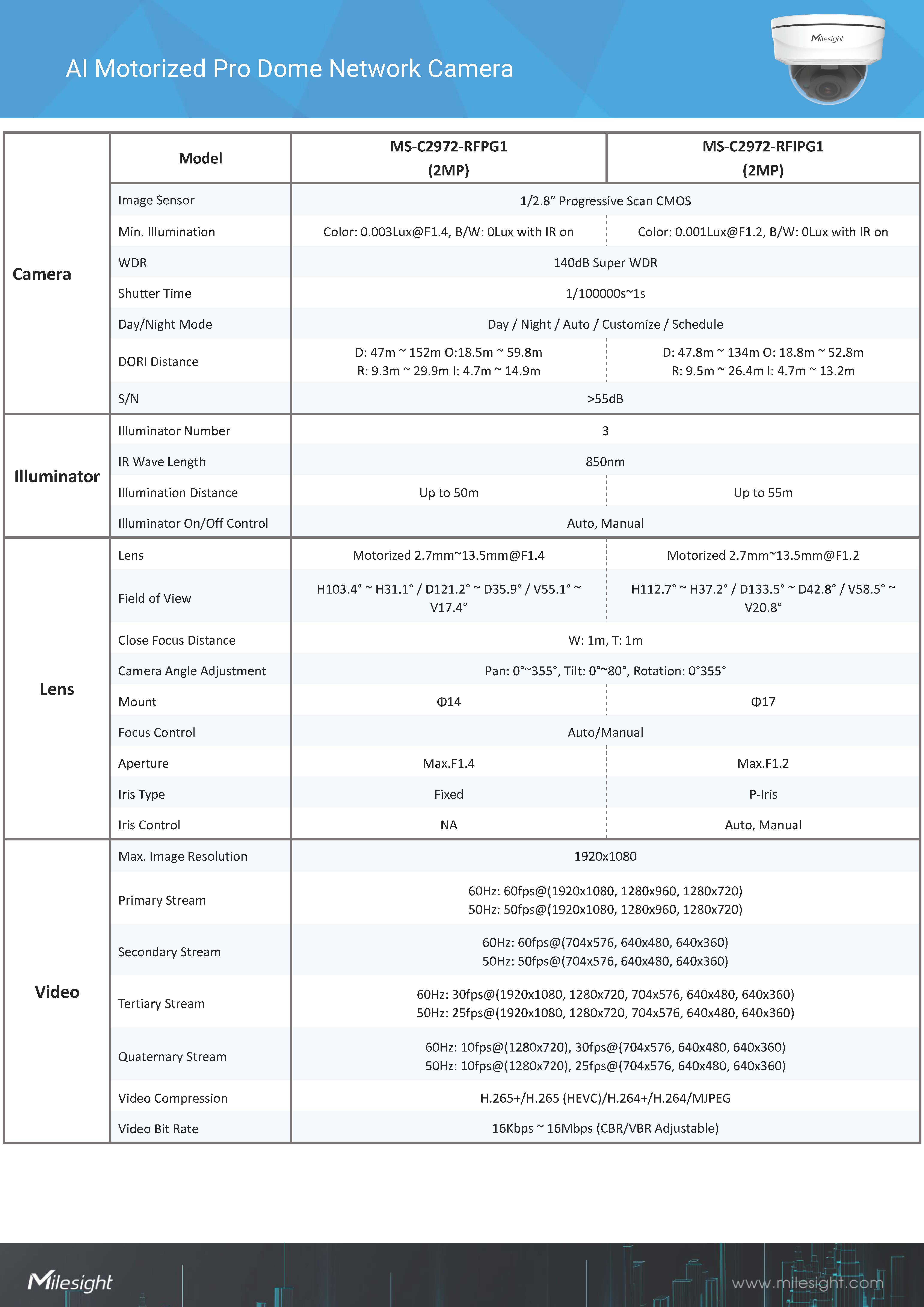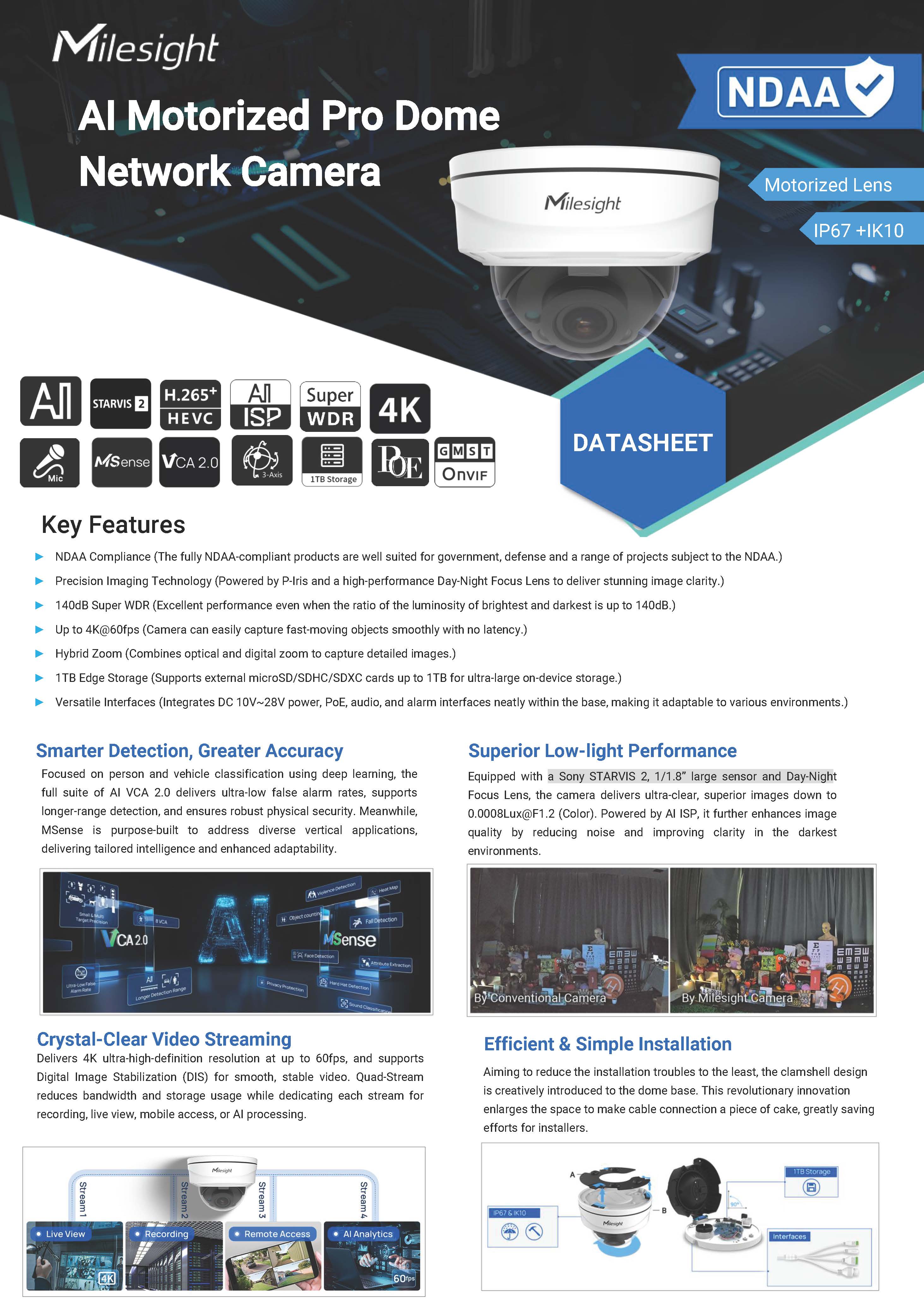 สินค้ายี่ห้อ Milesight รุ่น MS-C2972-RFPG1 รายละเอียดสินค้า กล้องโดม AI ความละเอียด 2MP เลนส์ Motorized ปรับระยะได้ ดีไซน์กันกระแทก (Vandal-proof IK10) และกันน้ำ IP67 มาพร้อม Super WDR 140dB และ Starlight ให้ภาพชัดทุกสภาพแสง รองรับการวิเคราะห์ AI แยกคนและรถแม่นยำ✅ ขอราคาพิเศษสำหรับงานโครงการติดต่อ Mobile : 063-879-9917Line ID : @aimonline