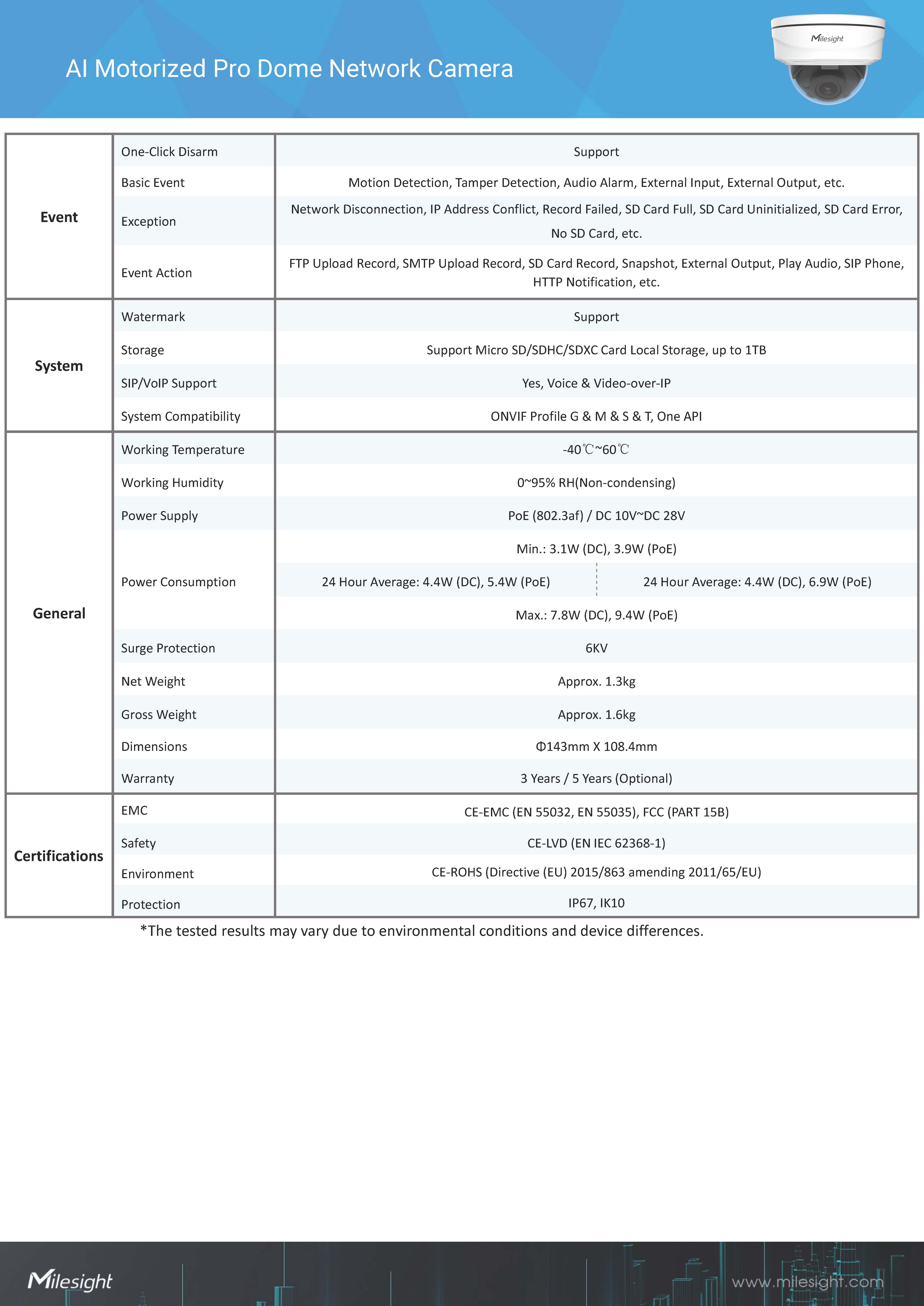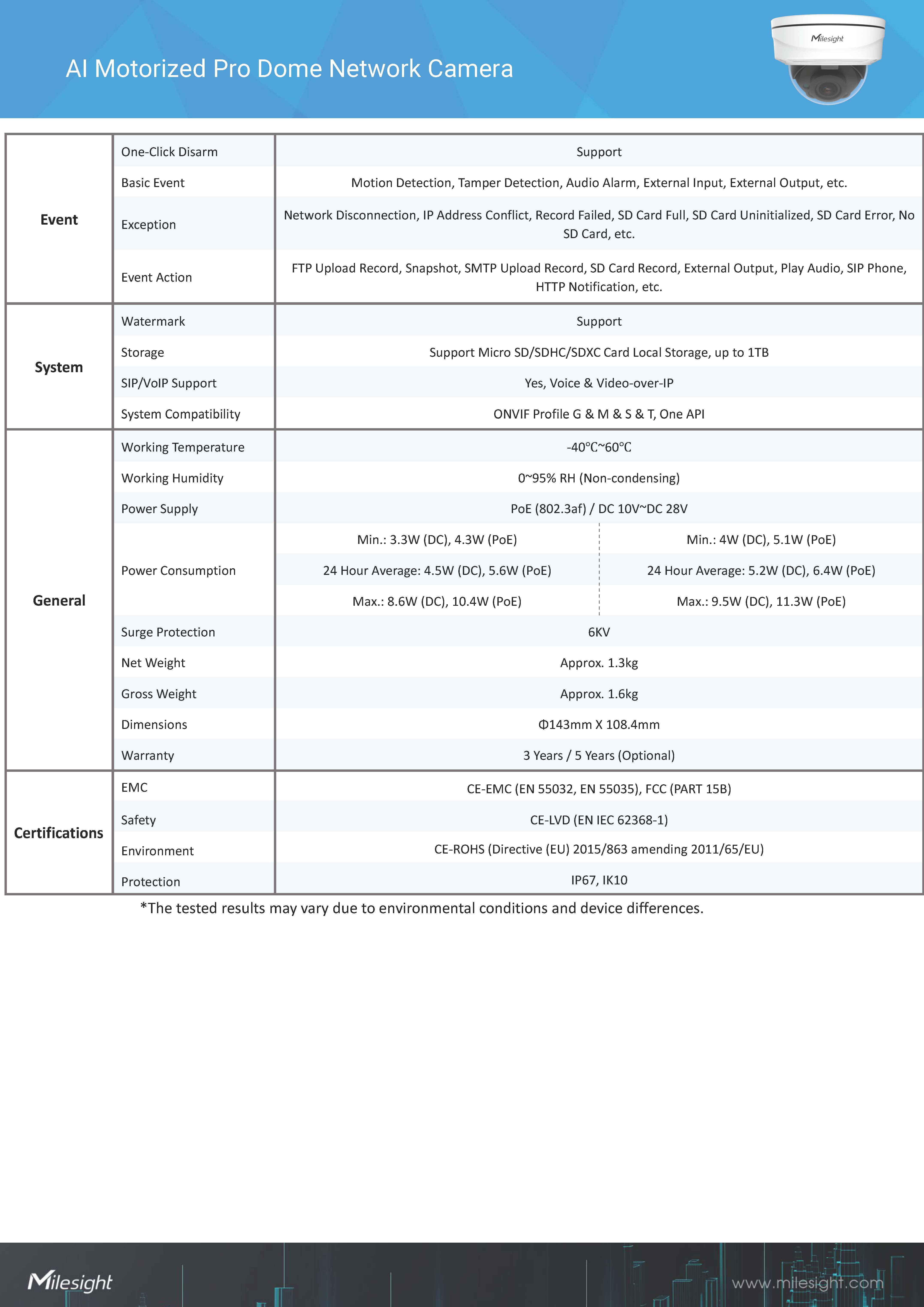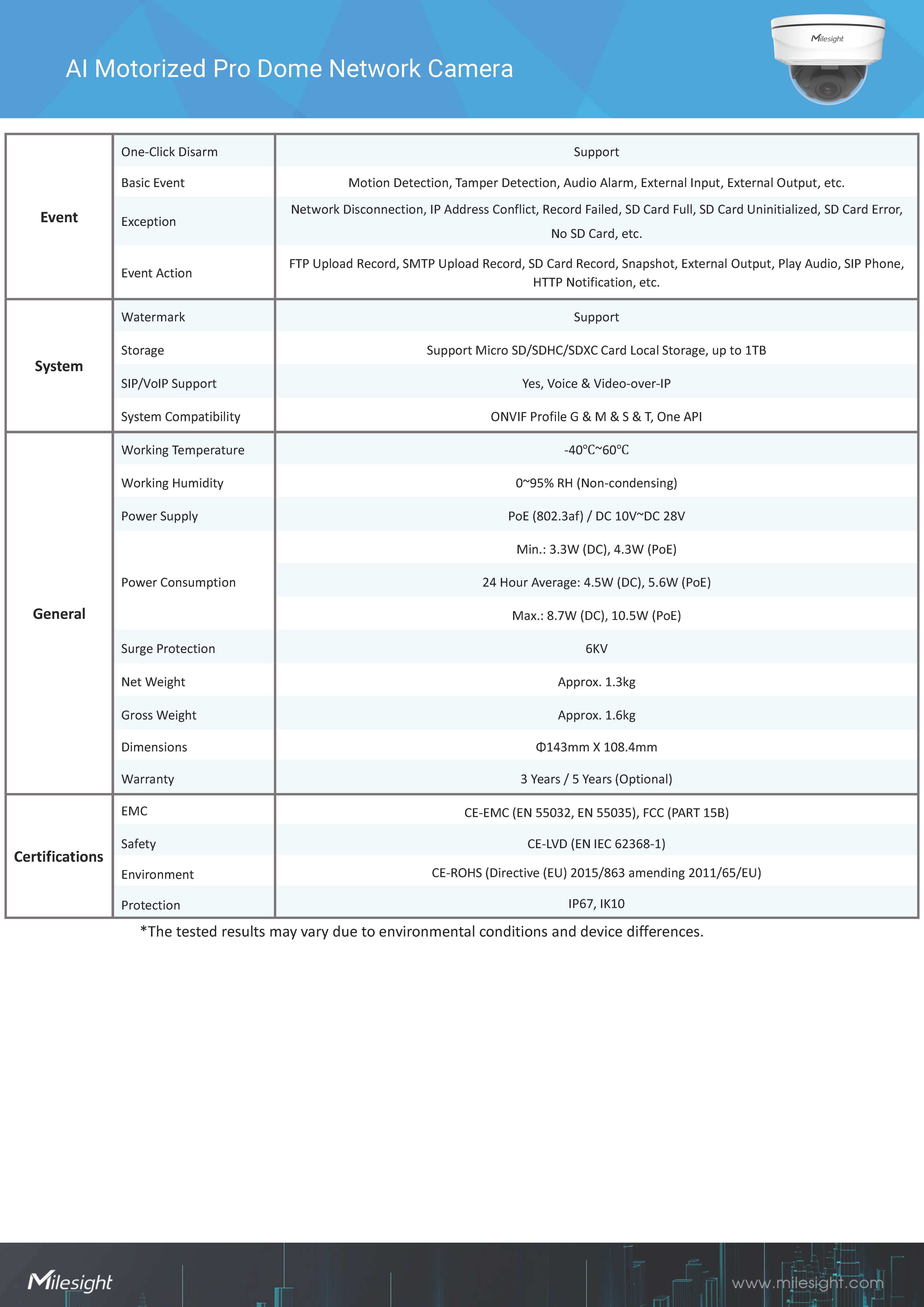 สินค้ายี่ห้อ Milesight รุ่น MS-C2972-RFPG1 รายละเอียดสินค้า กล้องโดม AI ความละเอียด 2MP เลนส์ Motorized ปรับระยะได้ ดีไซน์กันกระแทก (Vandal-proof IK10) และกันน้ำ IP67 มาพร้อม Super WDR 140dB และ Starlight ให้ภาพชัดทุกสภาพแสง รองรับการวิเคราะห์ AI แยกคนและรถแม่นยำ✅ ขอราคาพิเศษสำหรับงานโครงการติดต่อ Mobile : 063-879-9917Line ID : @aimonline