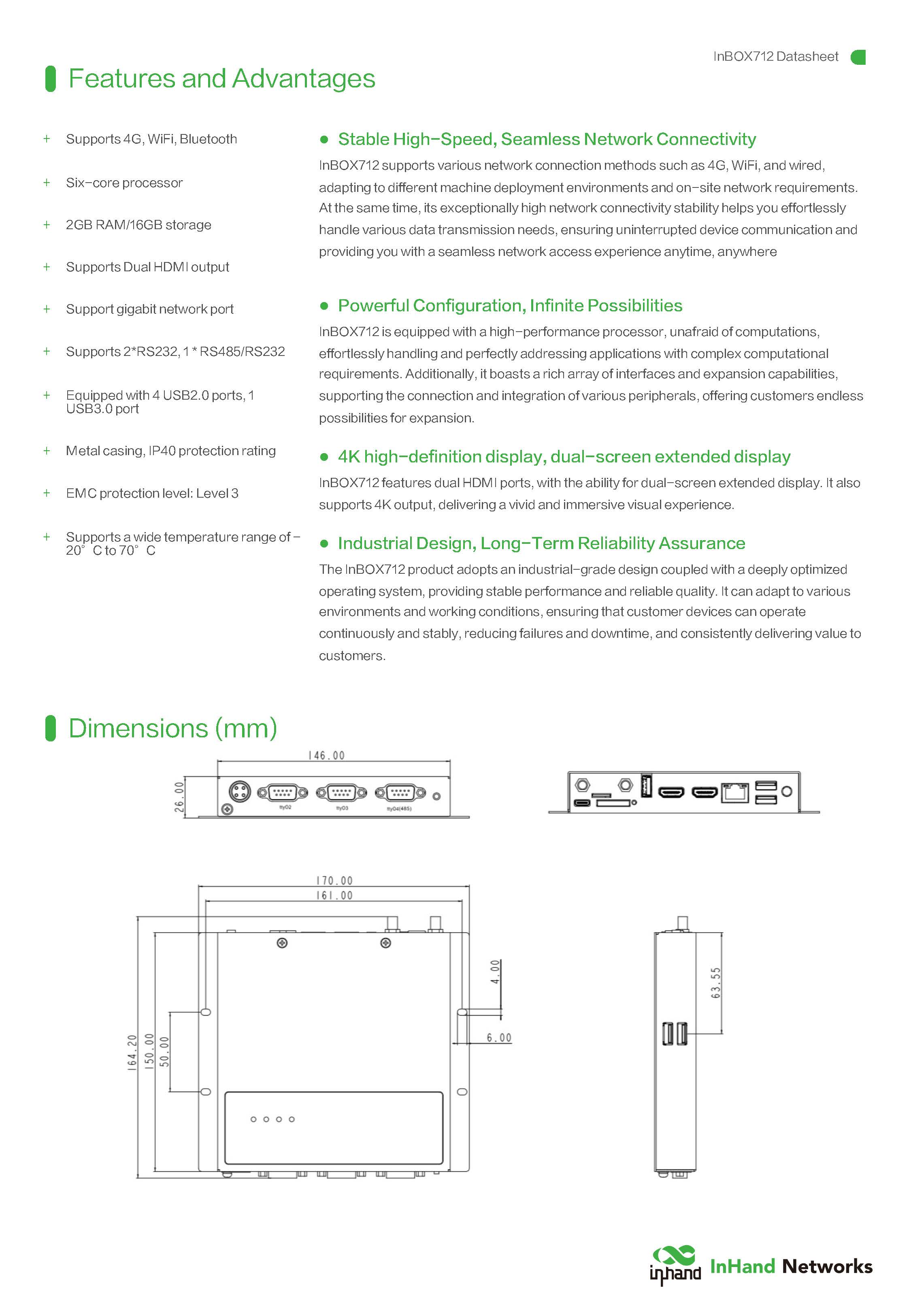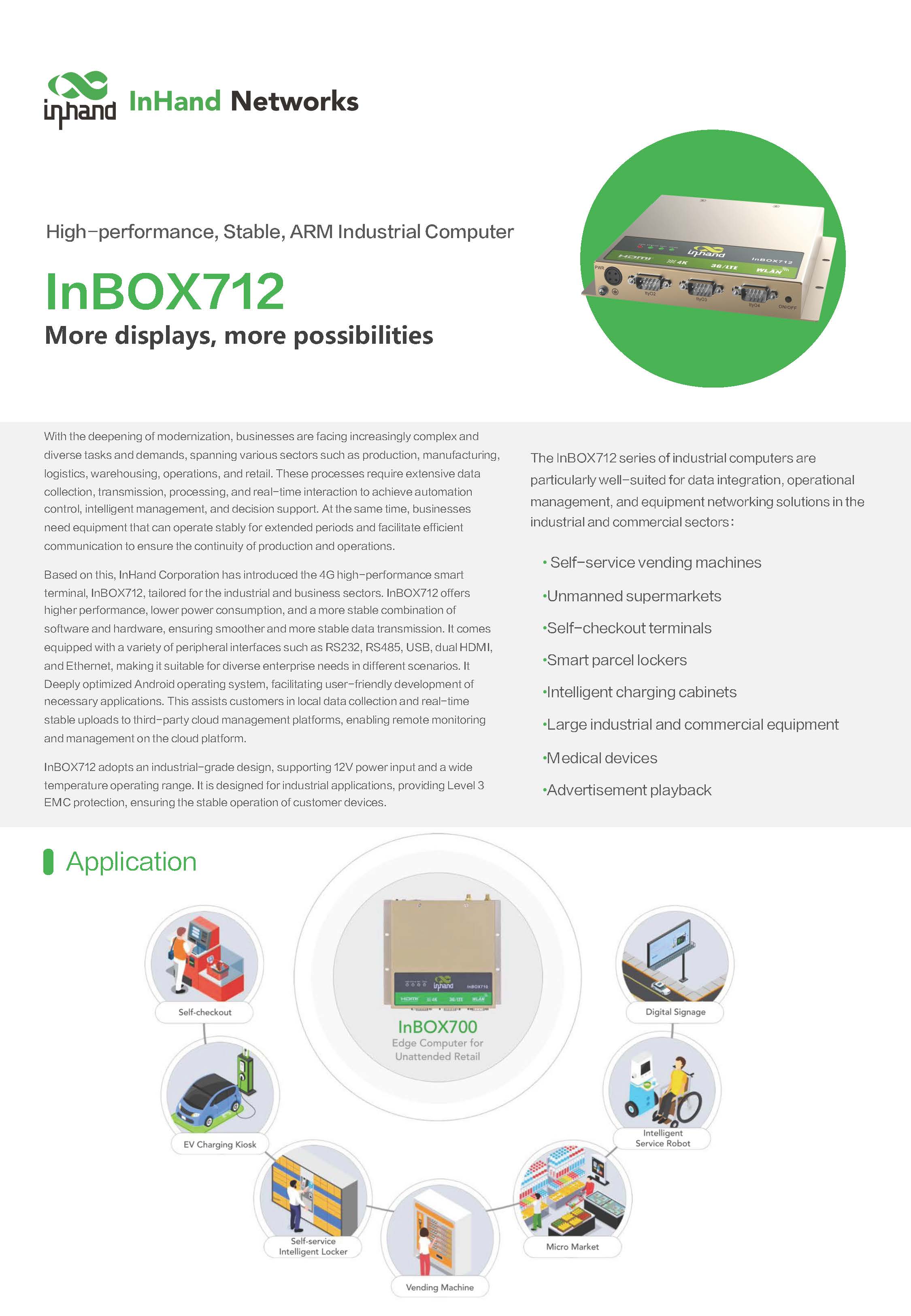 สินค้ายี่ห้อ INHAND รุ่น INBOX712 Industrial Edge Computer ประสิทธิภาพสูง (CPU RK3399) รองรับ 4G LTE และการแสดงผล 2 หน้าจออิสระ (Dual HDMI 4K) ระบบปฏิบัติการ Android/Linux พร้อมพอร์ต USB/RS232 ครบครัน เหมาะสำหรับตู้ Vending Machine, Kiosk และงาน Digital Signage ✅ ขอราคาพิเศษสำหรับงานโครงการติดต่อ Mobile : 063-879-9917Line ID : @aimonline