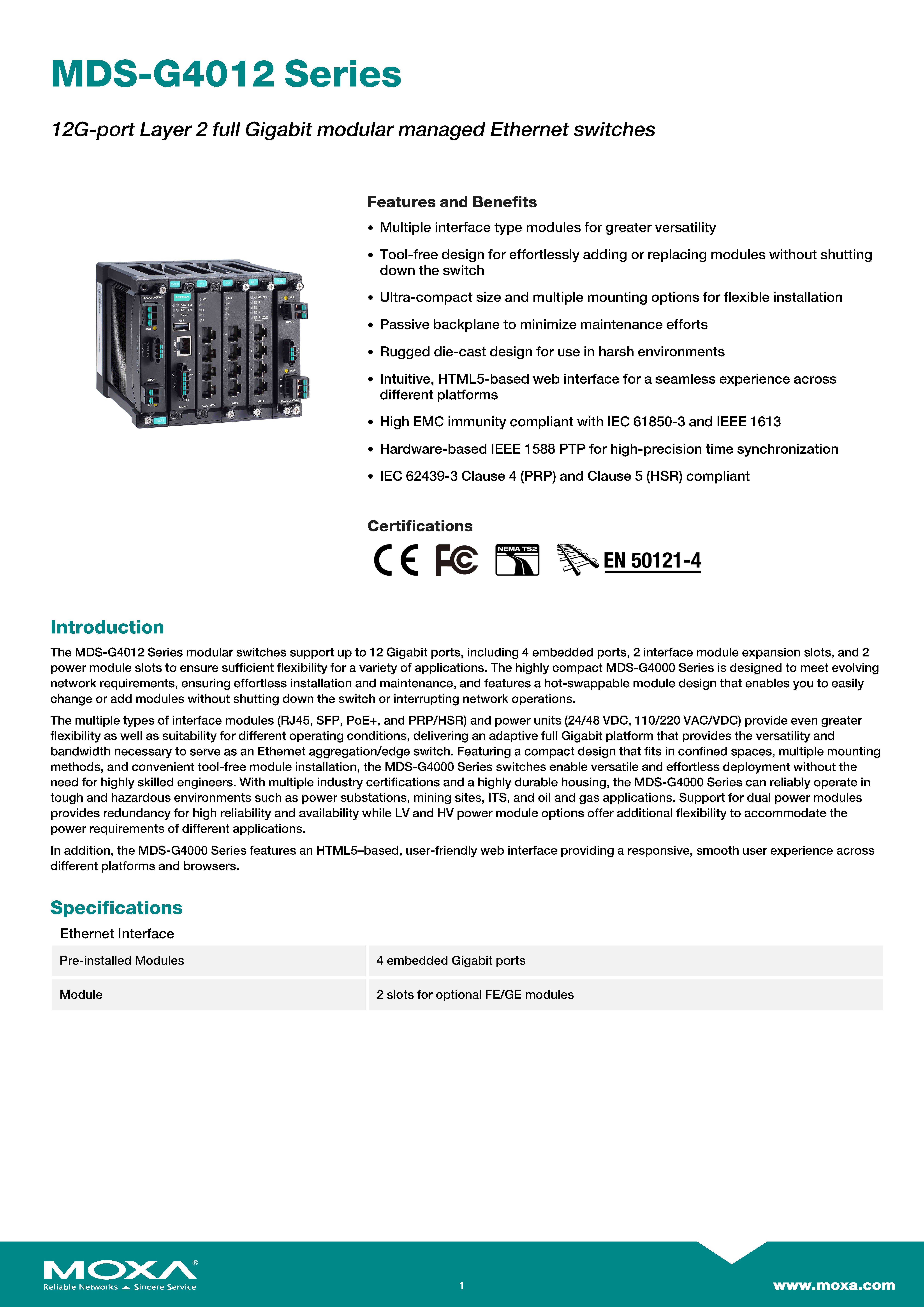สินค้ายี่ห้อ MOXA รุ่น MDS-G4012 รายละเอียดสินค้า Industrial Modular Managed Switch ที่รองรับสูงสุด 12 พอร์ต Gigabit และ 4 พอร์ต 10GbE (SFP+) ในขนาดกะทัดรัด พร้อมฟีเจอร์ถอดเปลี่ยนโมดูลได้ทันที (Hot-swappable) เพื่อความยืดหยุ่นในการเชื่อมต่อระบบเครือข่ายอุตสาหกรรมที่ต้องการแบนด์วิดท์สูงและความเสถียรระดับสูงสุด ✅ ขอราคาพิเศษสำหรับงานโครงการติดต่อ Mobile : 063-879-9917 Line ID @aimonline