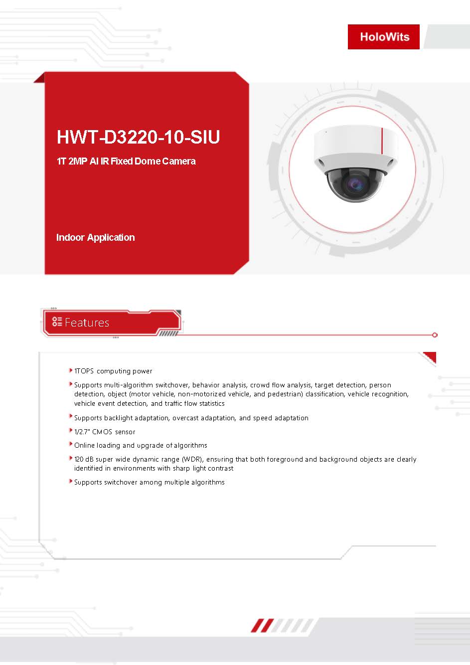 สินค้ายี่ห้อ HOLOWITS รุ่น HWT-D3220-10-SIU รายละเอียดสินค้า กล้องวงจรปิด AI อัจฉริยะ (Software-Defined Camera) ความละเอียด 2 ล้านพิกเซล ที่มาพร้อมหน่วยประมวลผล Deep Learning (2 TOPS) ช่วยวิเคราะห์พฤติกรรมและคัดกรองการแจ้งเตือนได้อย่างแม่นยำ ทนทานด้วยมาตรฐาน IP67 และระยะอินฟราเรด 30 เมตร ✅ ขอราคาพิเศษสำหรับงานโครงการติดต่อฝ่ายขาย Mobile : 063-879-9917 Line ID @aimonline