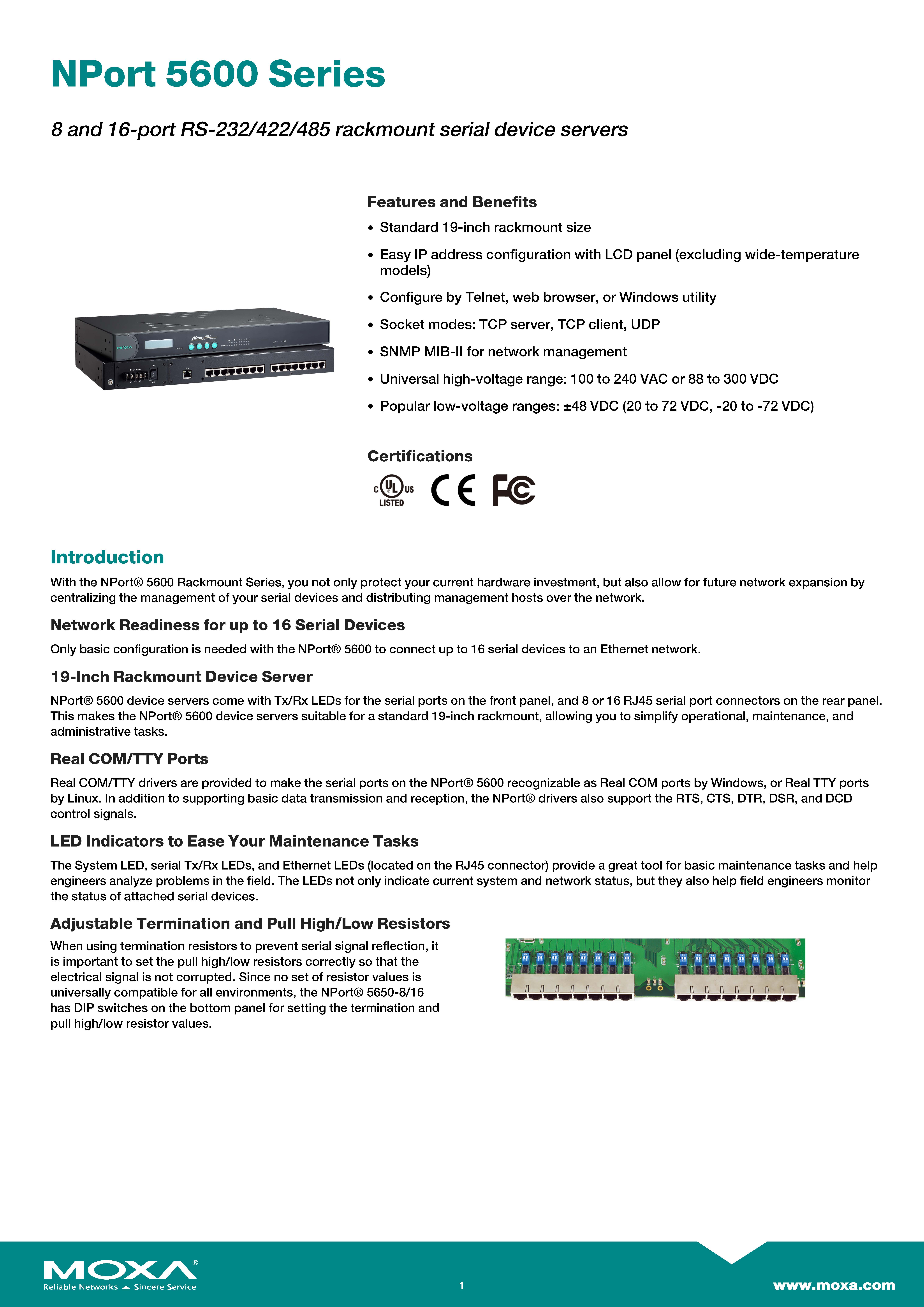 สินค้ายี่ห้อ MOXA รุ่น NPort 5630-8 รายละเอียดสินค้า อุปกรณ์แปลงสัญญาณ Serial เป็น Ethernet (8-port RS-422/485 Device Server) แบบติดตั้งในตู้ Rack ขนาด 1U ✅ ขอราคาพิเศษสำหรับงานโครงการติดต่อ Mobile : 063-879-9917 Line ID @aimonline
