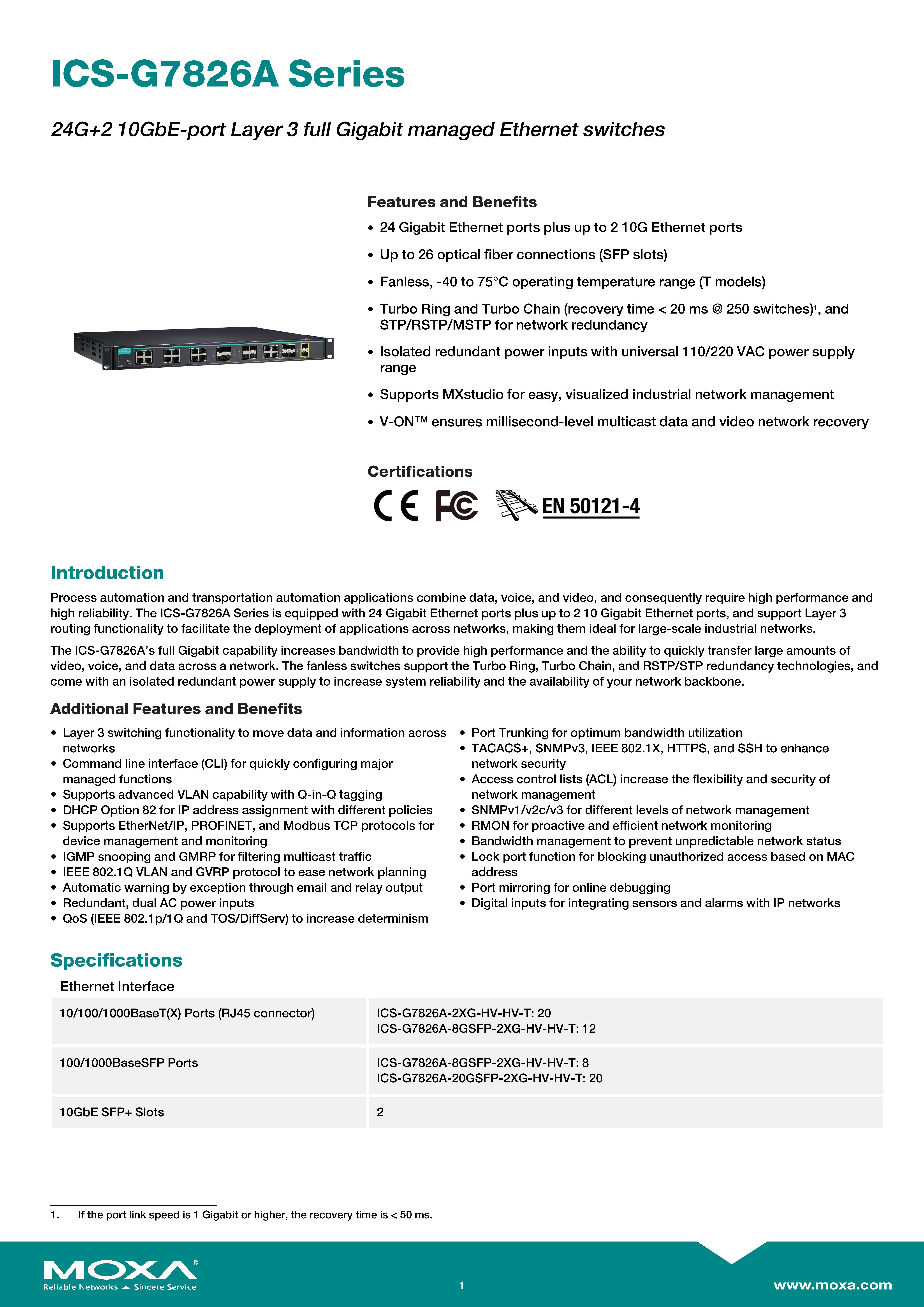 สินค้ายี่ห้อ MOXA รุ่น ICS-G7826A-2XG-HV-HV-T รายละเอียดสินค้า Industrial Layer 3 Core Switch ประสิทธิภาพสูงที่รองรับการจัดการเครือข่ายขนาดใหญ่ด้วยพอร์ต Gigabit 24 ช่องและ 10GbE SFP+ 2 ช่อง มาพร้อมระบบจ่ายไฟสำรองแบบ High Voltage คู่ (Dual HV) และทนทานต่ออุณหภูมิสุดขั้ว (-40 ถึง 75°C) เพื่อความเสถียรสูงสุดในระบบอัตโนมัติและโครงสร้างพื้นฐานสำคัญ ✅ ขอราคาพิเศษสำหรับงานโครงการติดต่อ Mobile : 063-879-9917 Line ID @aimonline