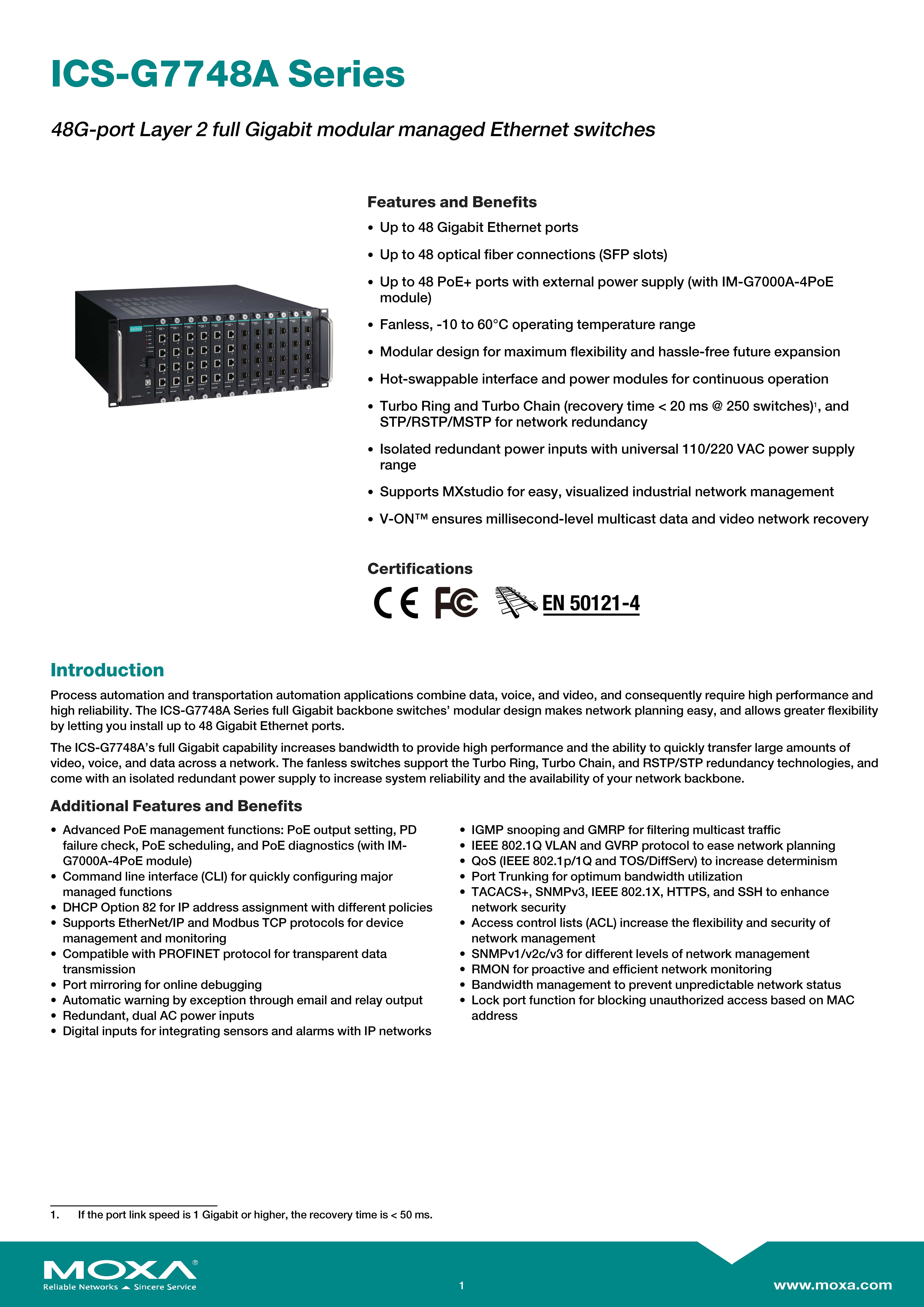 สินค้ายี่ห้อ MOXA รุ่น ICS-G7748A-HV-HV รายละเอียดสินค้า Industrial Layer 2 Core Switch แบบจัดการได้ (Managed) ที่มาพร้อมความจุพอร์ต Gigabit 48 ช่องสำหรับรองรับอุปกรณ์เครือข่ายจำนวนมาก พร้อมระบบจ่ายไฟสำรองแบบ High Voltage คู่ (Dual HV) และดีไซน์ทนทานต่อสภาพแวดล้อมเพื่อความเสถียรสูงสุดของระบบอัตโนมัติและโครงสร้างพื้นฐาน ✅ ขอราคาพิเศษสำหรับงานโครงการติดต่อ Mobile : 063-879-9917 Line ID @aimonline