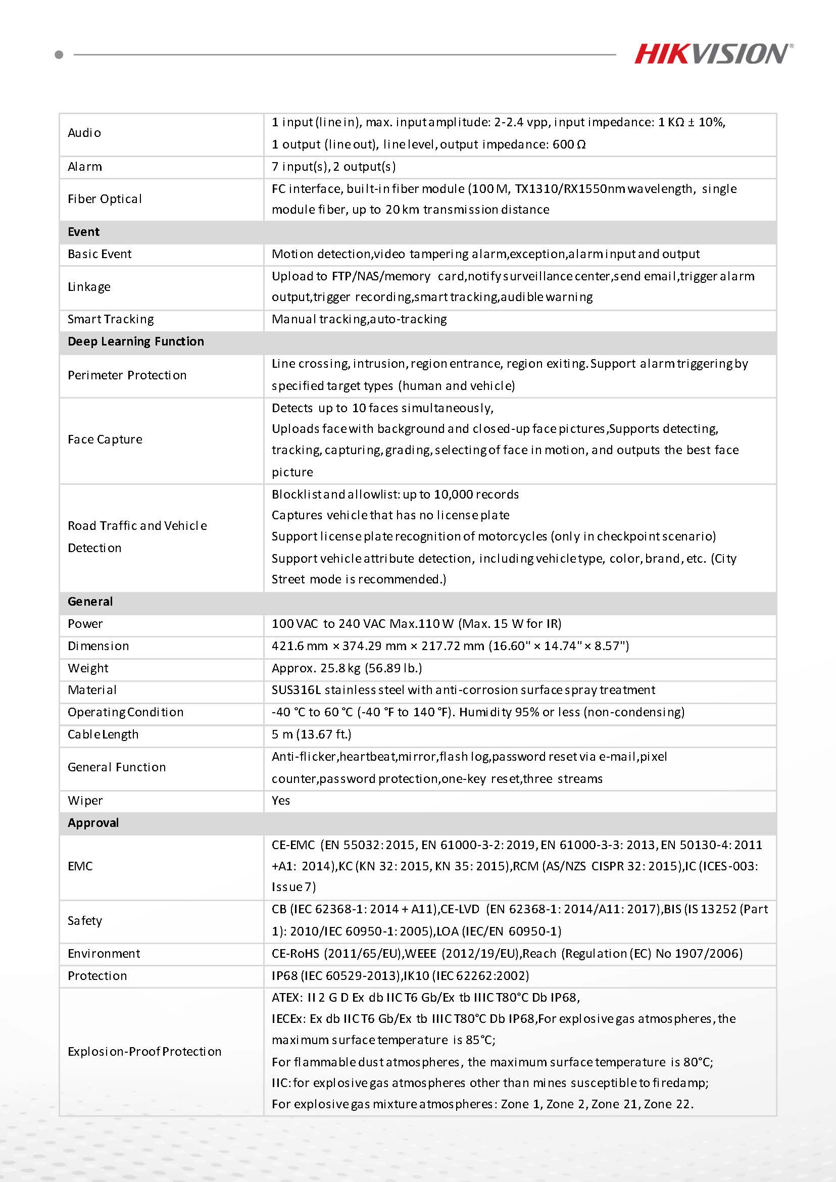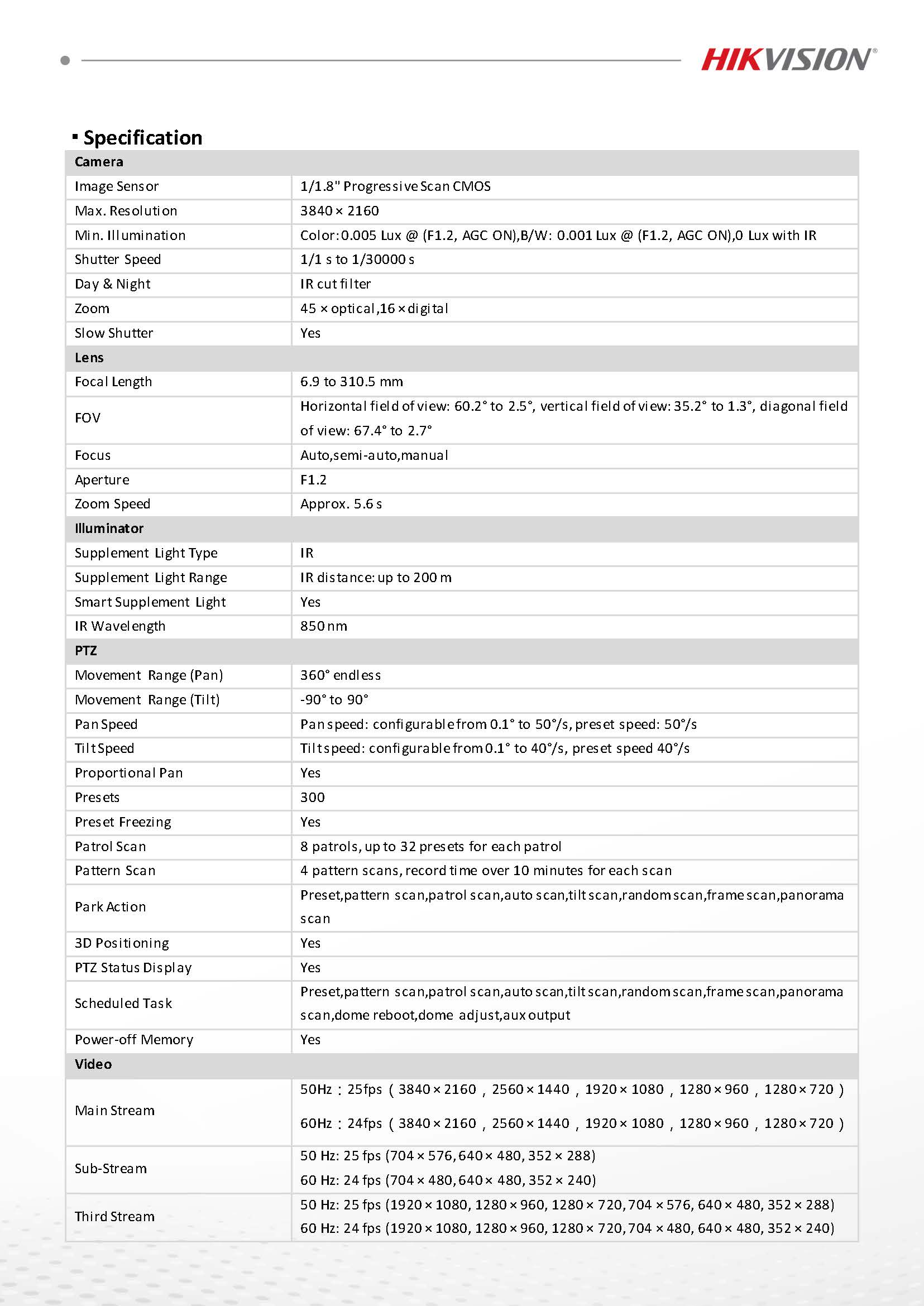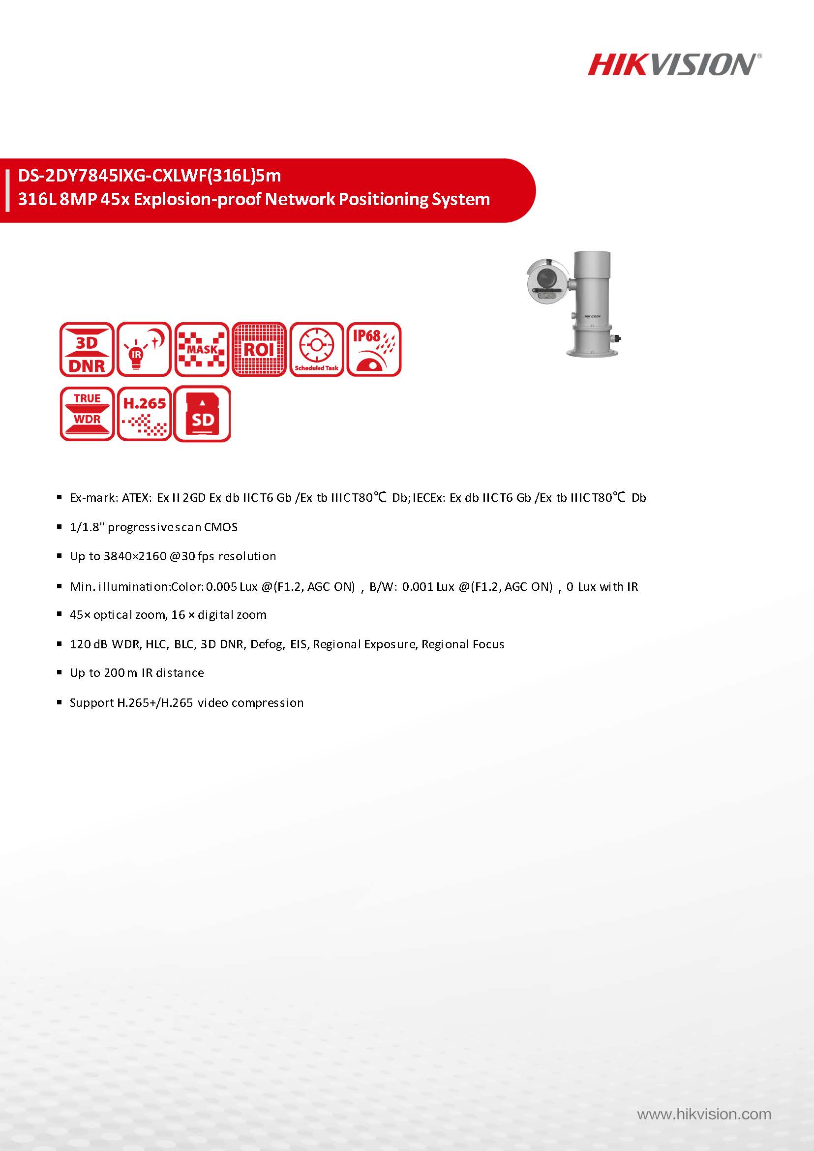 สินค้ายี่ห้อ HIKVISION รุ่น DS-2DY7845IXG-CXLWF(316L) กล้องวงจรปิด PTZ เครือข่ายแบบป้องกันการกัดกร่อน (Anti-Corrosion Network PTZ Camera) ความละเอียดคมชัดสูงสุดระดับ 4K (8 ล้านพิกเซล) ที่ยกระดับการเฝ้าระวังระยะไกลด้วยพลังซูมออปติคอลถึง 45 เท่า มาพร้อมตัวเรือนสเตนเลสสตีล 316L สุดแกร่งที่ทนทานต่อสารเคมีและสภาพแวดล้อมทางทะเล ผสานเทคโนโลยีจับภาพในที่แสงน้อยและที่ปัดน้ำฝน (Wiper) ในตัว ✅ ขอราคาพิเศษสำหรับงานโครงการติดต่อ Mobile : 063-879-9917 Line ID @aimonline