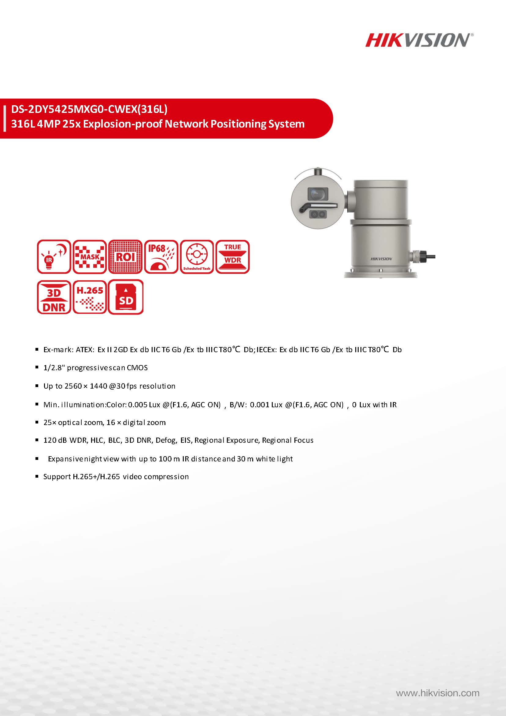สินค้ายี่ห้อ HIKVISION รุ่น DS-2DY5425MXG0-CWEX(316L) รายละเอียดสินค้า กล้องวงจรปิดสปีดโดมเครือข่ายเกรดป้องกันการระเบิด (4MP Explosion-Proof Network PTZ Camera) จาก Hikvision ความละเอียด 4 ล้านพิกเซล พร้อมเลนส์ซูมออปติคอล 25 เท่า โดดเด่นด้วยตัวเรือนสแตนเลสสตีล 316L (Stainless Steel 316L) ที่ทนทานต่อการกัดกร่อนขั้นสูงสุด ผ่านมาตรฐานความปลอดภัยระดับสากล (ATEX/IECEx) ออกแบบมาเพื่อการเฝ้าระวังและรักษาความปลอดภัยในพื้นที่เสี่ยงอันตราย เช่น อุตสาหกรรมปิโตรเคมี แท่นขุดเจาะน้ำมัน และสภาพแวดล้อมทางทะเลได้อย่างสมบูรณ์แบบ ✅ ขอราคาพิเศษสำหรับงานโครงการติดต่อ Mobile : 063-879-9917 Line ID @aimonline