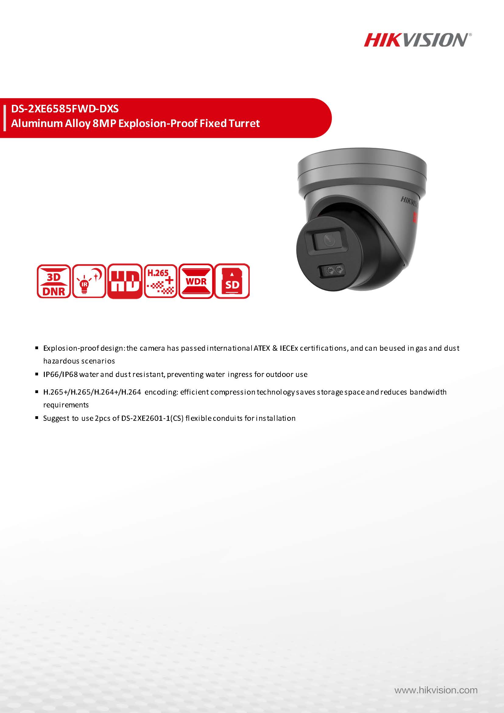 สินค้ายี่ห้อ HIKVISION รุ่น DS-2XE6585FWD-DXS รายละเอียดสินค้า กล้องวงจรปิดเกรดป้องกันการระเบิดความละเอียดสูงระดับ 4K (8MP Ultra HD Explosion-Proof Fixed Turret Camera) จาก Hikvision โดดเด่นด้วยภาพคมชัดสูงสุด 8 ล้านพิกเซล ตัวเรือนผลิตจากอะลูมิเนียมอัลลอยที่ทนทานและน้ำหนักเบา ผ่านการรับรองมาตรฐานความปลอดภัยระดับสากล ATEX และ IECEx พร้อมมาตรฐานกันน้ำกันฝุ่น IP68 ออกแบบมาเพื่อยกระดับการเฝ้าระวังขั้นสูงสุดที่ต้องการเก็บทุกรายละเอียดในพื้นที่อุตสาหกรรมที่เสี่ยงต่อการติดไฟหรือระเบิด ✅ ขอราคาพิเศษสำหรับงานโครงการติดต่อ Mobile : 063-879-9917 Line ID @aimonline