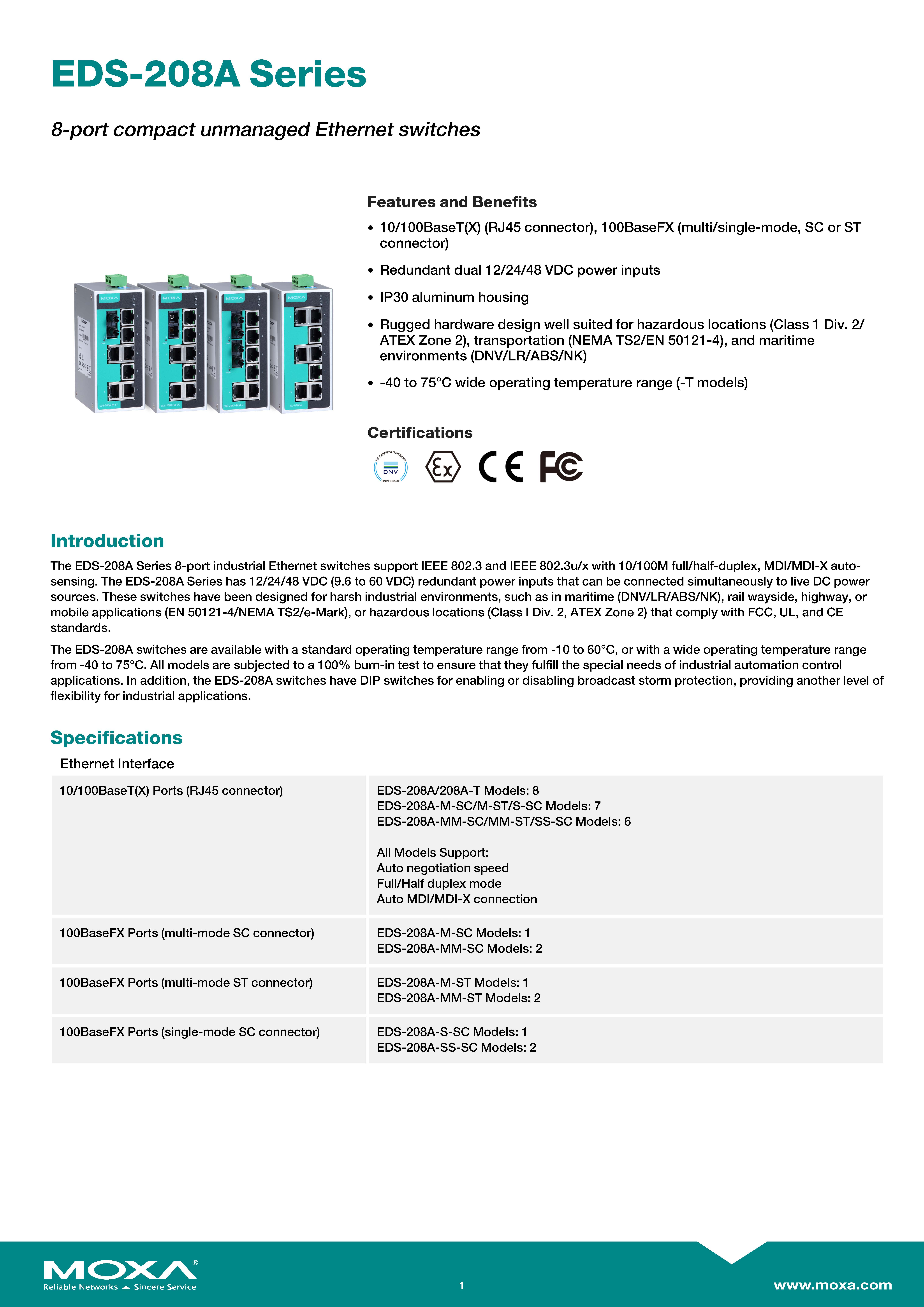 MOXA Unmanaged Switches 8-port compact unmanaged Ethernet switches รุ่น EDS-208A-SS-SC ขอราคาพิเศษสำหรับงานโครงการติดต่อฝ่ายขาย Line ID : @aimonline ฝ่ายขายโทร: 063-879-9917 ( สินค้ายังไม่รวมภาษีมูลค่าเพิ่ม, ค่าขนส่ง , สินค้าสั่งต่างประเทศราคาอาจมีการเปลี่ยนแปลงตามอัตราแลกเปลี่ยน โดยไม่แจ้งให้ทราบล่วงหน้า) เช็คสต๊อกสินค้าก่อนสั่งซื้อ #W00S00I00D231118RAM