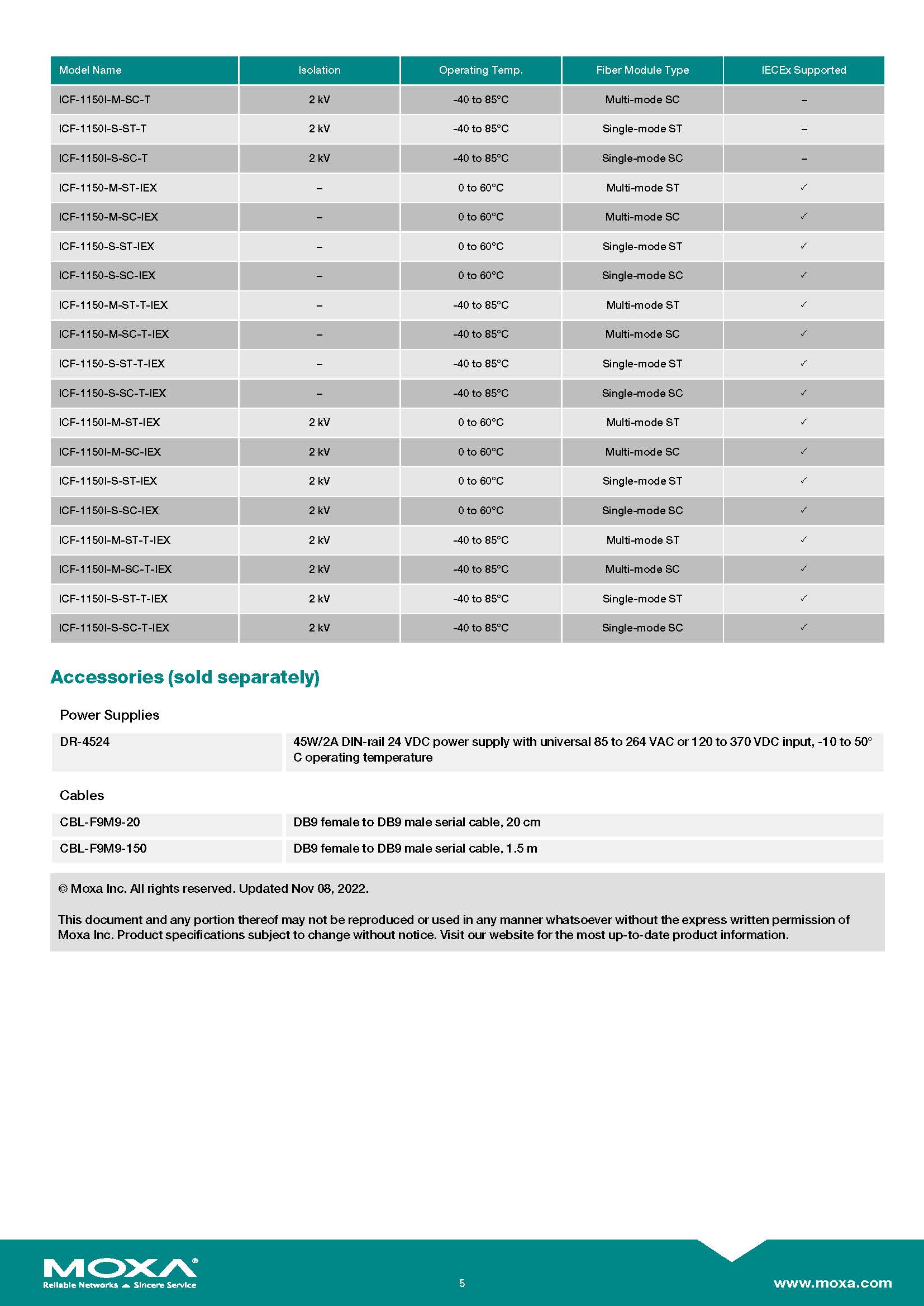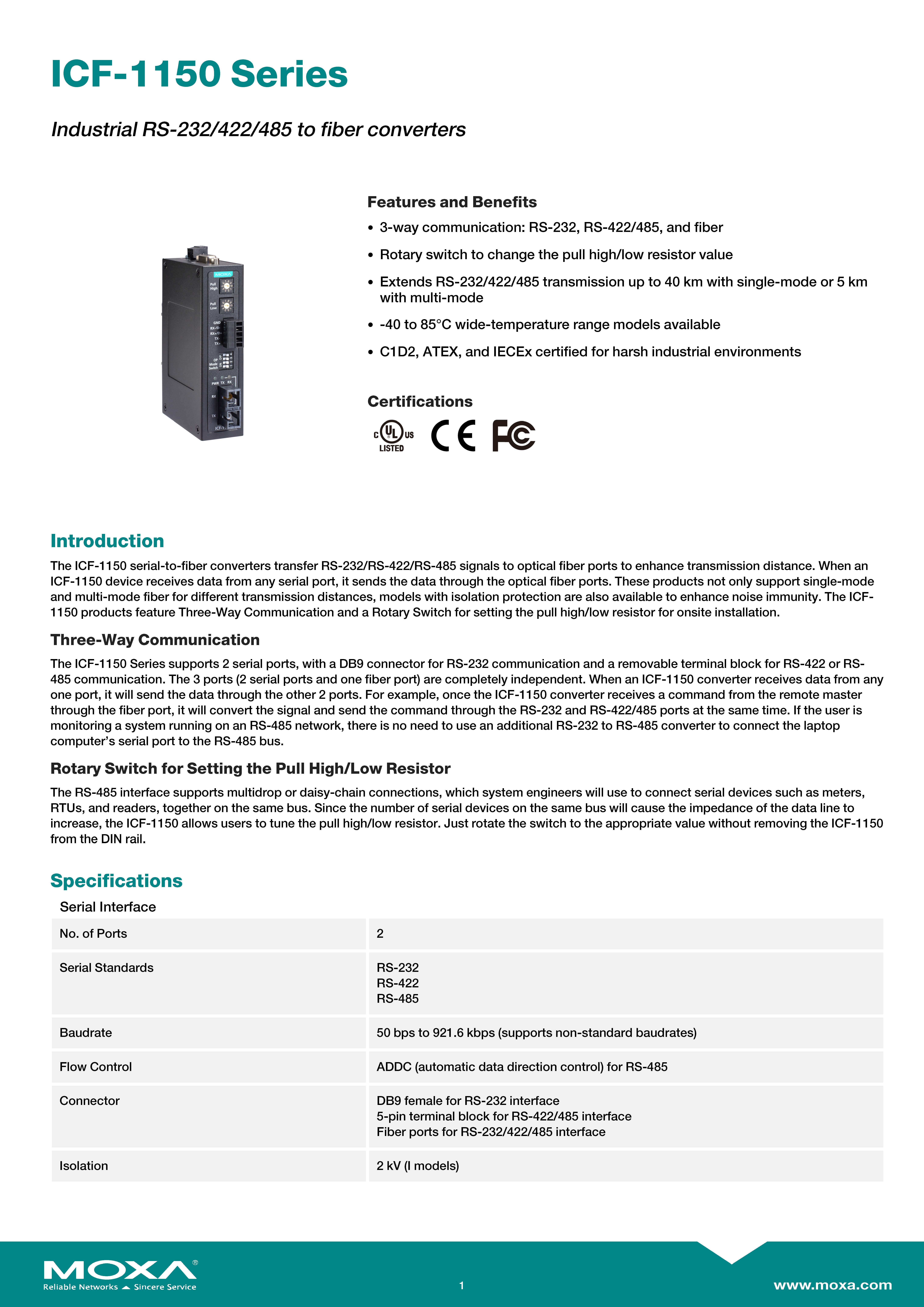 MOXA Serial Converters Industrial RS-232/422/485 to fiber converters รุ่น ICF-1150-S-STขอราคาพิเศษสำหรับงานโครงการติดต่อฝ่ายขาย Line ID : @aimonline ฝ่ายขายโทร: 063-879-9917 ( สินค้ายังไม่รวมภาษีมูลค่าเพิ่ม, ค่าขนส่ง , สินค้าสั่งต่างประเทศราคาอาจมีการเปลี่ยนแปลงตามอัตราแลกเปลี่ยน โดยไม่แจ้งให้ทราบล่วงหน้า) เช็คสต๊อกสินค้าก่อนสั่งซื้อ #W00S00I00D231118RAM