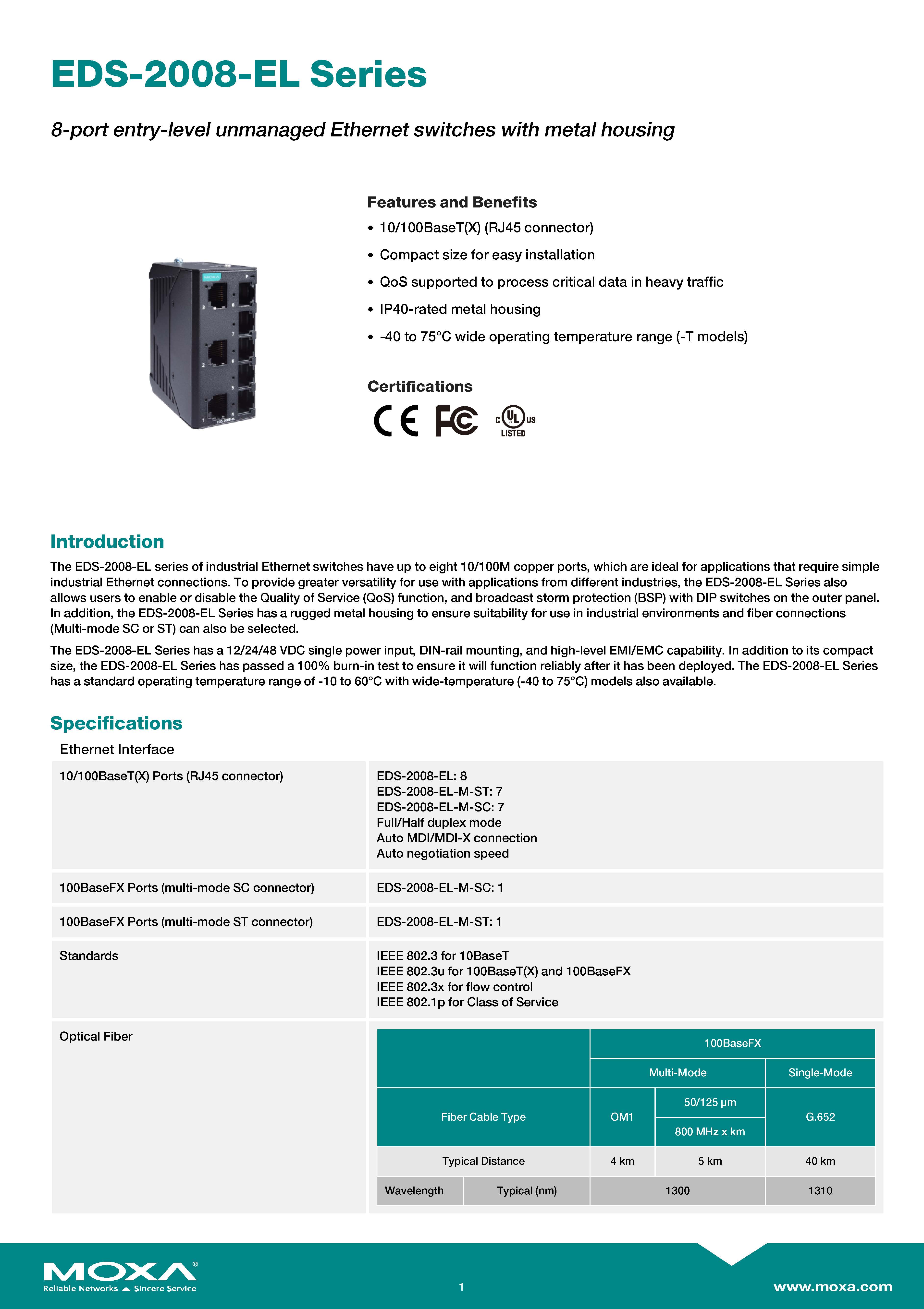 MOXA Unmanaged Switches 8-port entry-level unmanaged Ethernet switches with metal housing รุ่น EDS-2008-EL ขอราคาพิเศษสำหรับงานโครงการติดต่อฝ่ายขาย Line ID : @aimonline ฝ่ายขายโทร: 063-879-9917 ( สินค้ายังไม่รวมภาษีมูลค่าเพิ่ม, ค่าขนส่ง , สินค้าสั่งต่างประเทศราคาอาจมีการเปลี่ยนแปลงตามอัตราแลกเปลี่ยน โดยไม่แจ้งให้ทราบล่วงหน้า) เช็คสต๊อกสินค้าก่อนสั่งซื้อ #W00S00I00D231118RAM