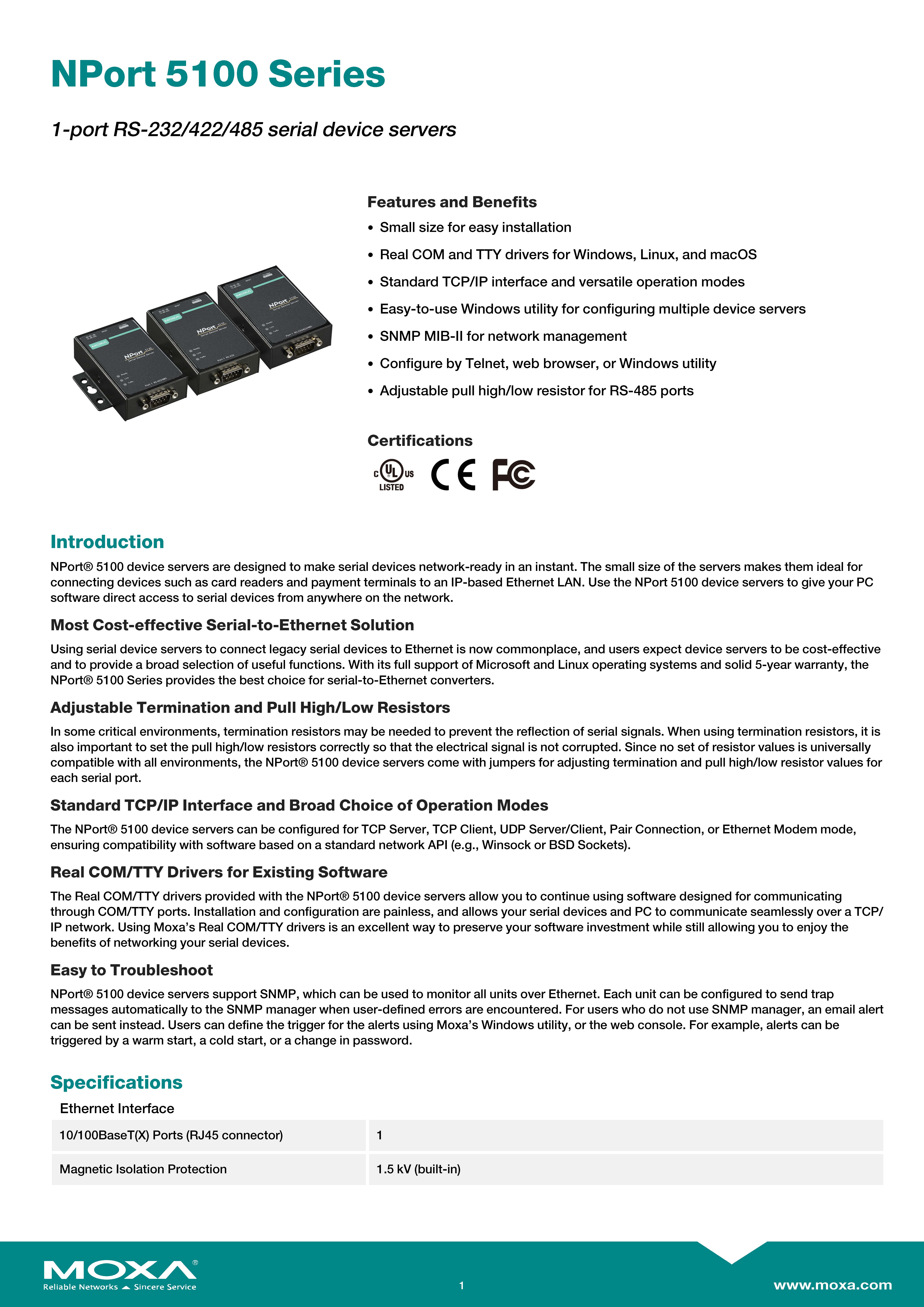 MOXA NPort 1-port 1-port RS-232/422/485 serial device servers รุ่น NPORT-5130 ขอราคาพิเศษสำหรับงานโครงการติดต่อฝ่ายขาย Line ID : @aimonline ฝ่ายขายโทร: 063-879-9917 ( สินค้ายังไม่รวมภาษีมูลค่าเพิ่ม, ค่าขนส่ง , สินค้าสั่งต่างประเทศราคาอาจมีการเปลี่ยนแปลงตามอัตราแลกเปลี่ยน โดยไม่แจ้งให้ทราบล่วงหน้า) เช็คสต๊อกสินค้าก่อนสั่งซื้อ #W00S00I00D231118RAM