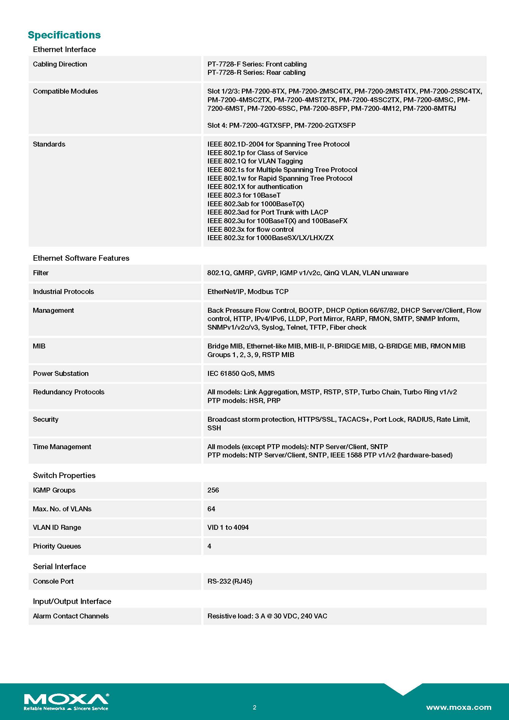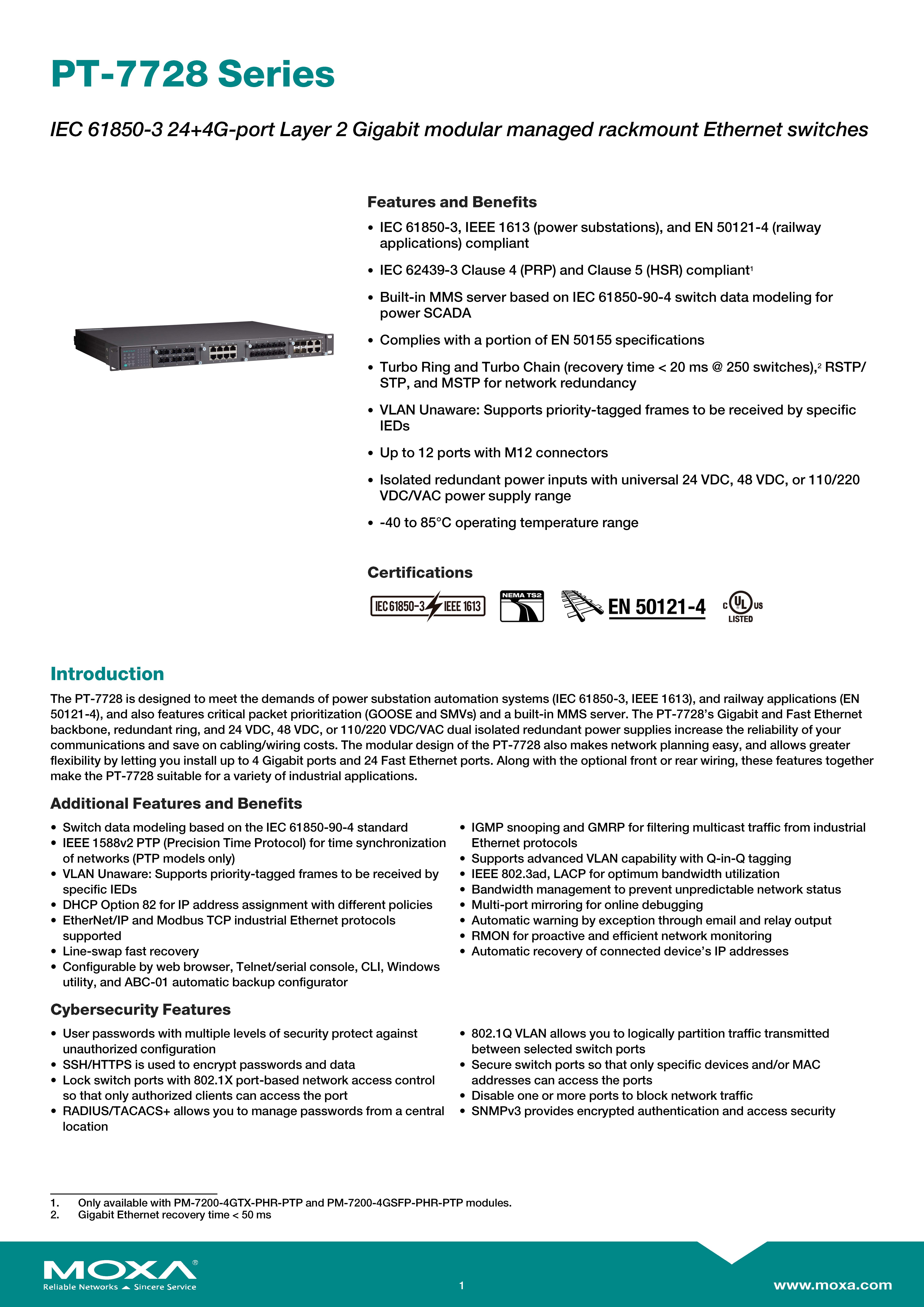 MOXA IEC 61850-3 24+4G-port Layer 2 Gigabit modular managed rackmount Ethernet switches รุ่น PT-7728-PTPRHVขอราคาพิเศษสำหรับงานโครงการติดต่อฝ่ายขาย Line ID : @aimonline ฝ่ายขายโทร: 063-879-9917 ( สินค้ายังไม่รวมภาษีมูลค่าเพิ่ม, ค่าขนส่ง , สินค้าสั่งต่างประเทศราคาอาจมีการเปลี่ยนแปลงตามอัตราแลกเปลี่ยน โดยไม่แจ้งให้ทราบล่วงหน้า) เช็คสต๊อกสินค้าก่อนสั่งซื้อ #W00S00I00D231118RAM