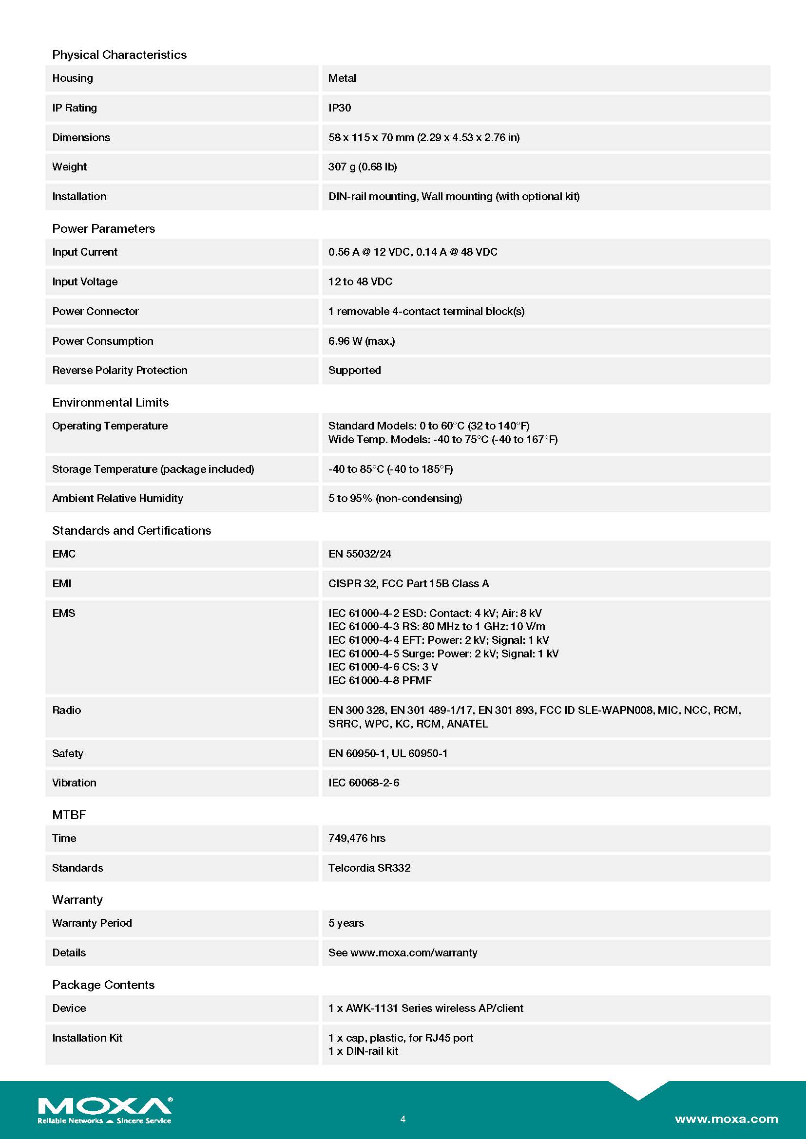 MOXA WLAN AP/Bridge/Client Entry-level industrial IEEE 802.11a/b/g/n wireless AP/client รุ่น AWK-1131A-JP ขอราคาพิเศษสำหรับงานโครงการติดต่อฝ่ายขาย Line ID : @aimonline ฝ่ายขายโทร: 063-879-9917 ( สินค้ายังไม่รวมภาษีมูลค่าเพิ่ม, ค่าขนส่ง , สินค้าสั่งต่างประเทศราคาอาจมีการเปลี่ยนแปลงตามอัตราแลกเปลี่ยน โดยไม่แจ้งให้ทราบล่วงหน้า) เช็คสต๊อกสินค้าก่อนสั่งซื้อ #W00S00I00D231118RAM