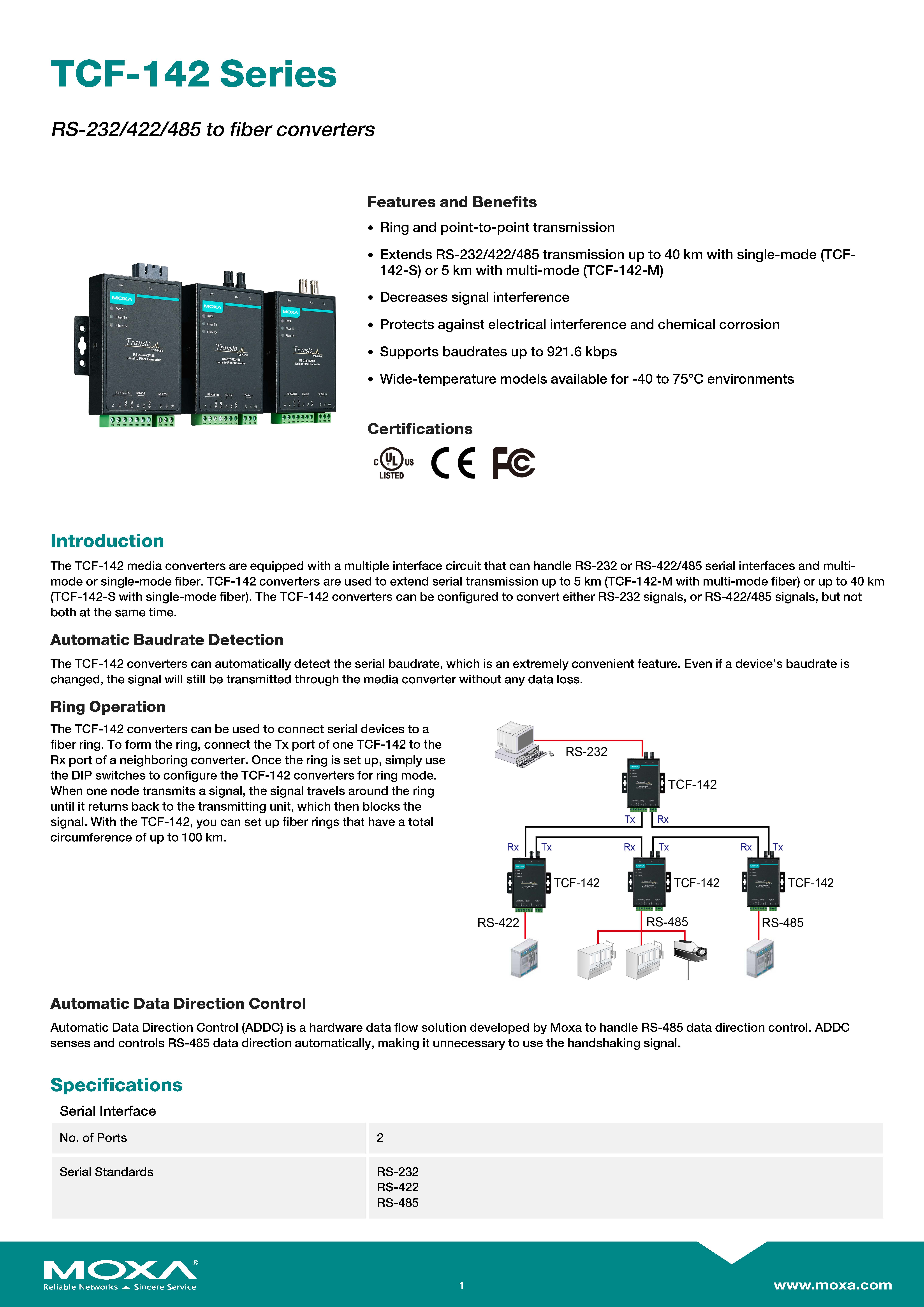 MOXA / Serial-to-Fiber Converters รุ่น MXA-TCF-142-S-SC ขอราคาพิเศษสำหรับงานโครงการติดต่อฝ่ายขาย Line ID : @aimonline ฝ่ายขายโทร: 063-879-9917 ( สินค้ายังไม่รวมภาษีมูลค่าเพิ่ม, ค่าขนส่ง , สินค้าสั่งต่างประเทศราคาอาจมีการเปลี่ยนแปลงตามอัตราแลกเปลี่ยน โดยไม่แจ้งให้ทราบล่วงหน้า) เช็คสต๊อกสินค้าก่อนสั่งซื้อ #W00S00I00D231118RAM