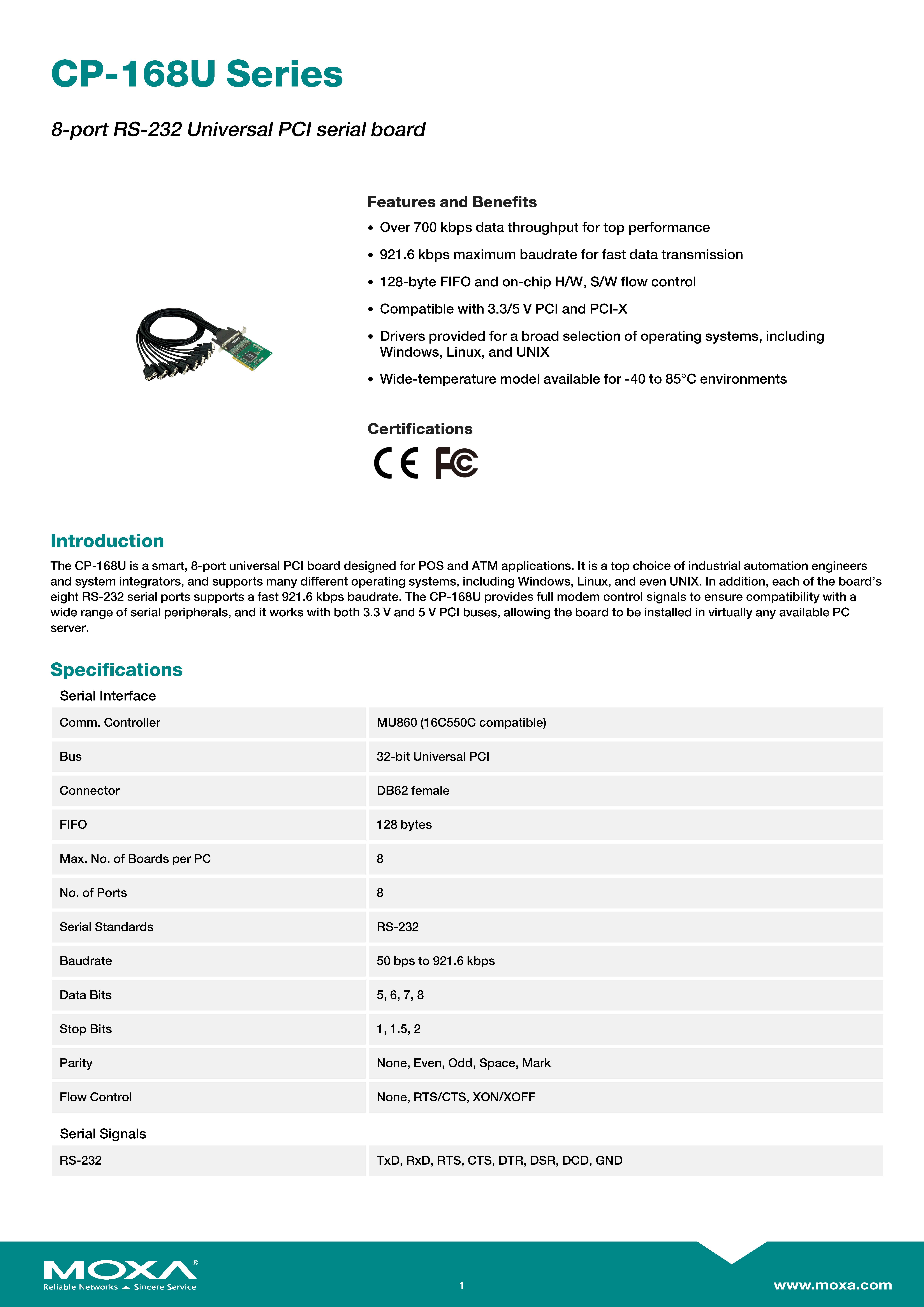 PCI Serial Cards 8-port RS-232 Universal PCI serial board รุ่น CP-168U ขอราคาพิเศษสำหรับงานโครงการติดต่อฝ่ายขาย Line ID : @aimonline ฝ่ายขายโทร: 063-879-9917 ( สินค้ายังไม่รวมภาษีมูลค่าเพิ่ม, ค่าขนส่ง , สินค้าสั่งต่างประเทศราคาอาจมีการเปลี่ยนแปลงตามอัตราแลกเปลี่ยน โดยไม่แจ้งให้ทราบล่วงหน้า) เช็คสต๊อกสินค้าก่อนสั่งซื้อ #W00S00I00D231118RAM