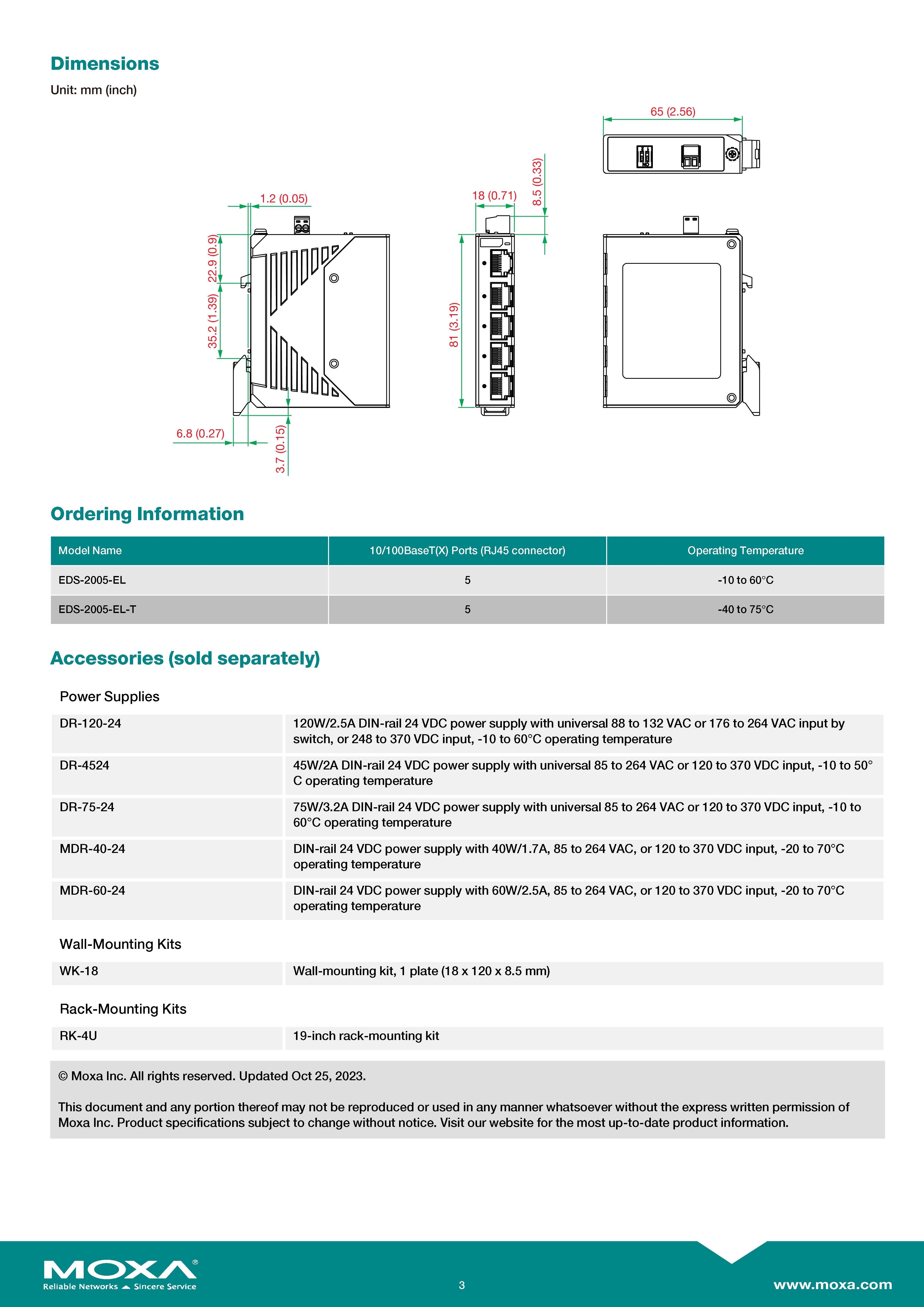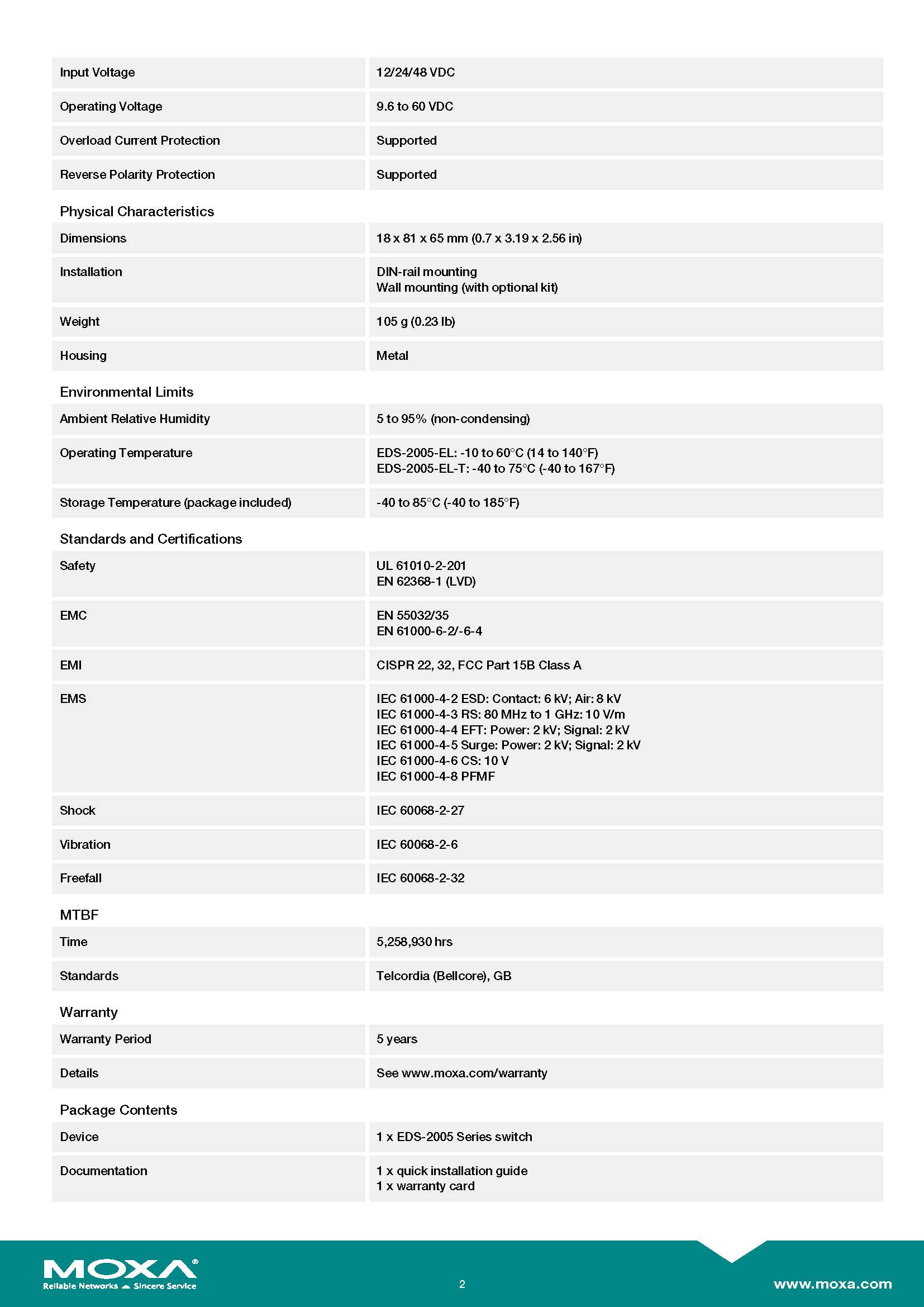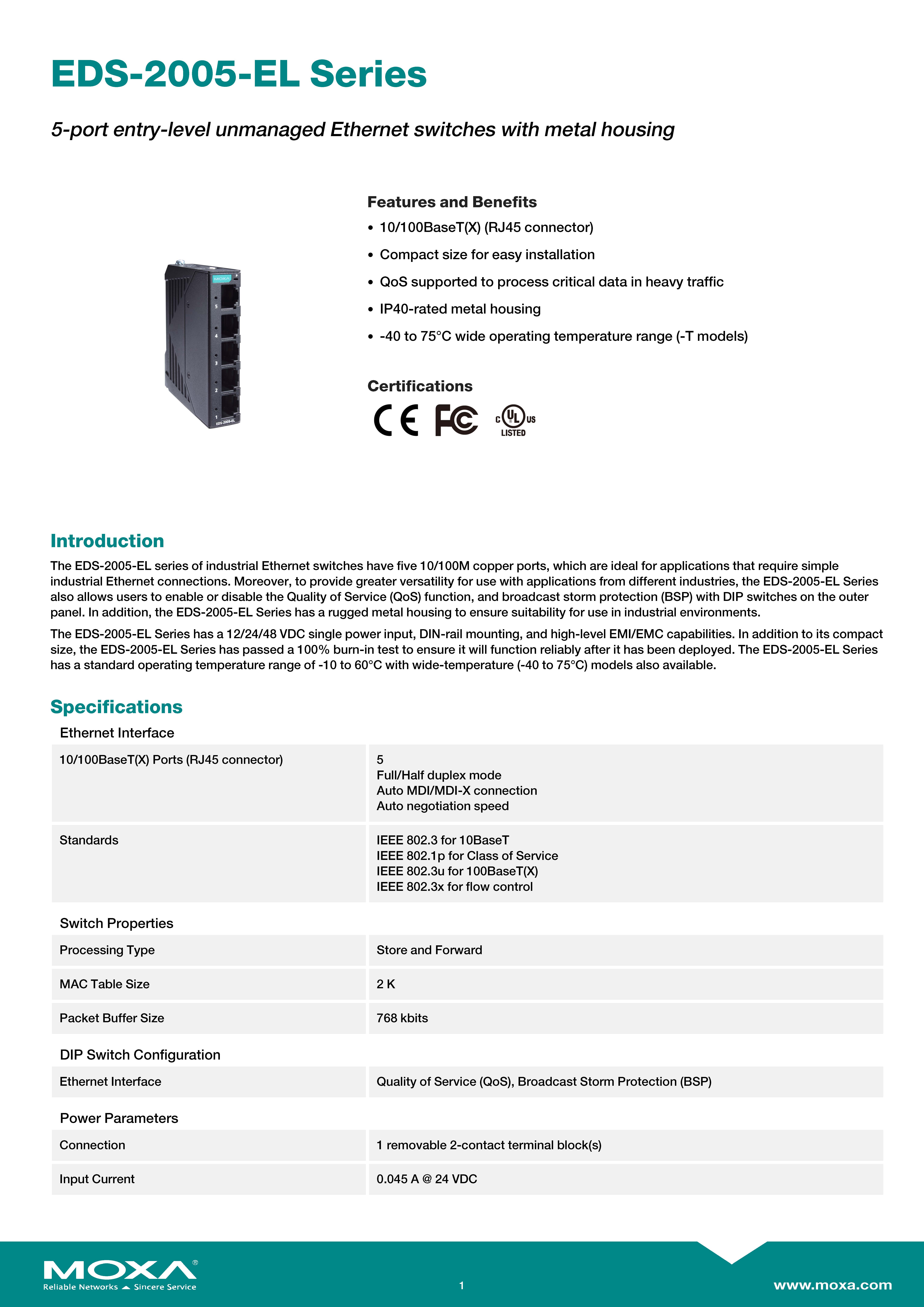 MOXA Unmanaged Switches 5-port entry-level unmanaged Ethernet switches with metal housingรุ่น EDS-2005-EL ขอราคาพิเศษสำหรับงานโครงการติดต่อฝ่ายขาย Line ID : @aimonline ฝ่ายขายโทร: 063-879-9917 ( สินค้ายังไม่รวมภาษีมูลค่าเพิ่ม, ค่าขนส่ง , สินค้าสั่งต่างประเทศราคาอาจมีการเปลี่ยนแปลงตามอัตราแลกเปลี่ยน โดยไม่แจ้งให้ทราบล่วงหน้า) เช็คสต๊อกสินค้าก่อนสั่งซื้อ #W00S00I00D231118RAM