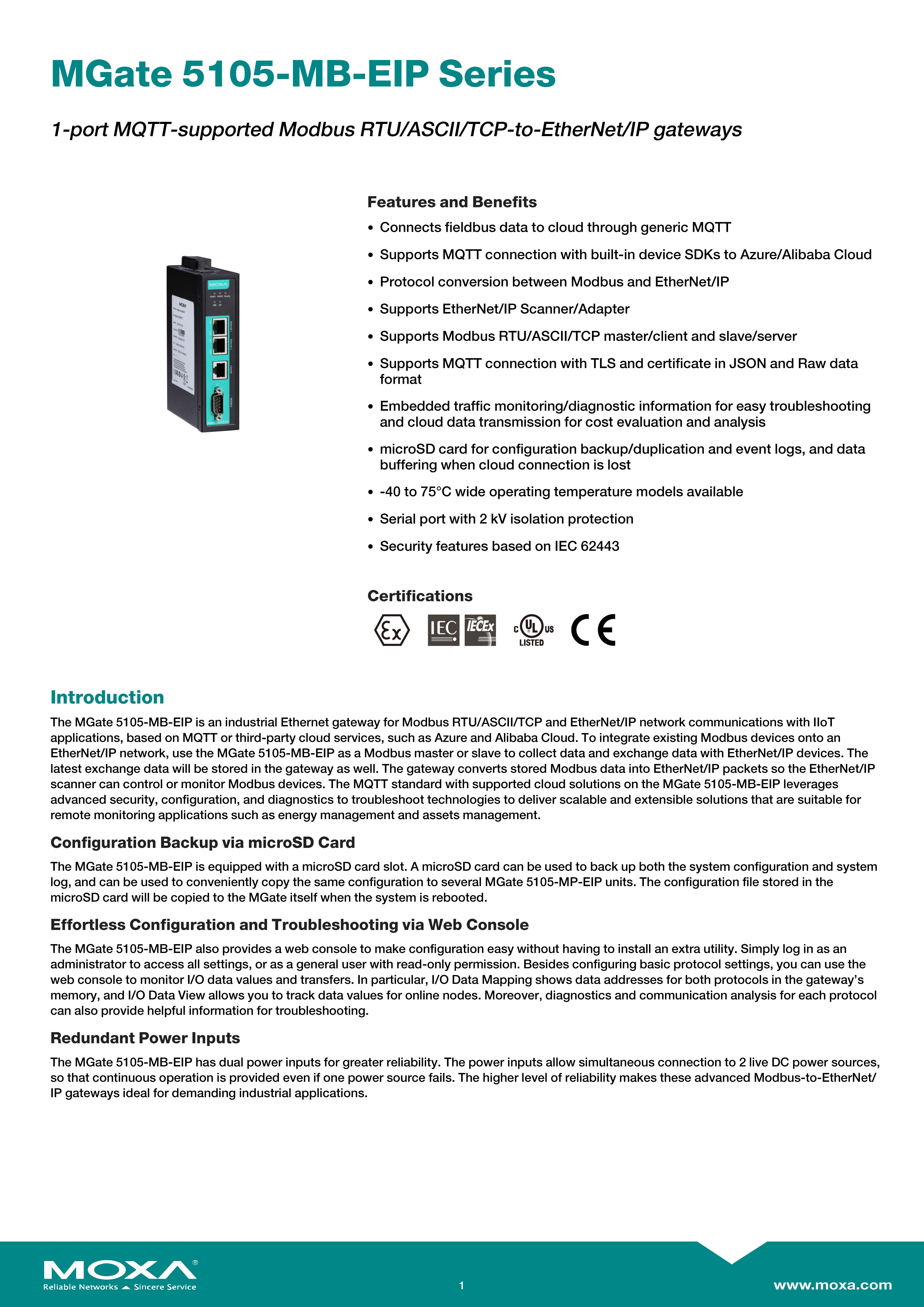 1-port Modbus RTU to EtherNet/IP gateway, ModelMGate 5105-MB-EIPขอราคาพิเศษสำหรับงานโครงการ ติดต่อฝ่ายขาย Line ID : @aimonline ฝ่ายขายโทร: 063-879-9917 ( สินค้ายังไม่รวมภาษีมูลค่าเพิ่ม, ค่าขนส่ง ) เช็คสต๊อกล่าสุดสินค้าก่อนสั่งซื้อ ราคายังไม่รวมค่าติดตั้ง #NP24