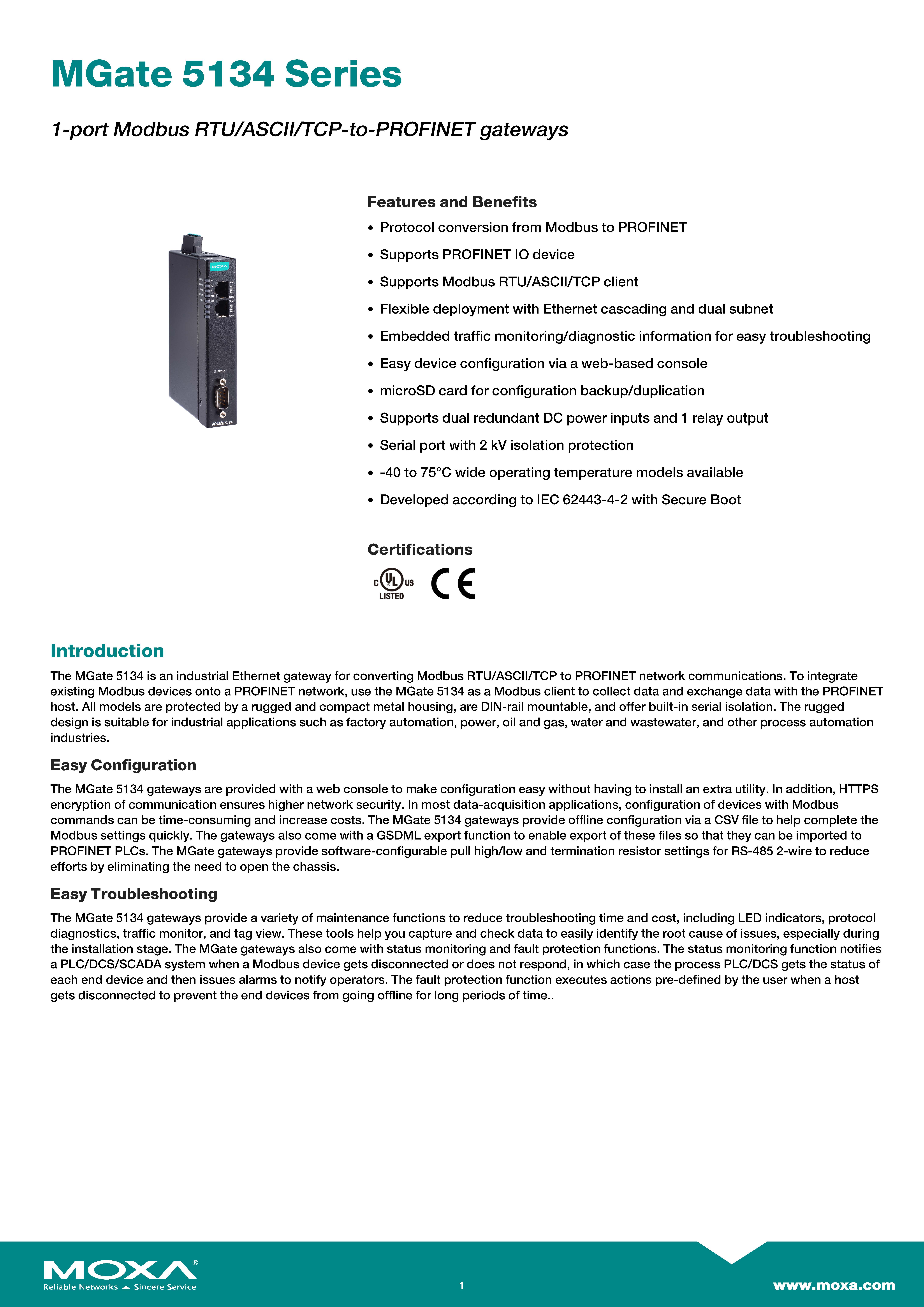 MOXA 1-port Modbus RTU/ASCII/TCP-to-PROFINET gateways Model MGate5134 ขอราคาพิเศษสำหรับงานโครงการ ติดต่อฝ่ายขาย Line ID : @aimonline ฝ่ายขายโทร: 063-879-9917 ( สินค้ายังไม่รวมภาษีมูลค่าเพิ่ม, ค่าขนส่ง ) เช็คสต๊อกล่าสุดสินค้าก่อนสั่งซื้อ ราคายังไม่รวมค่าติดตั้ง #NP24