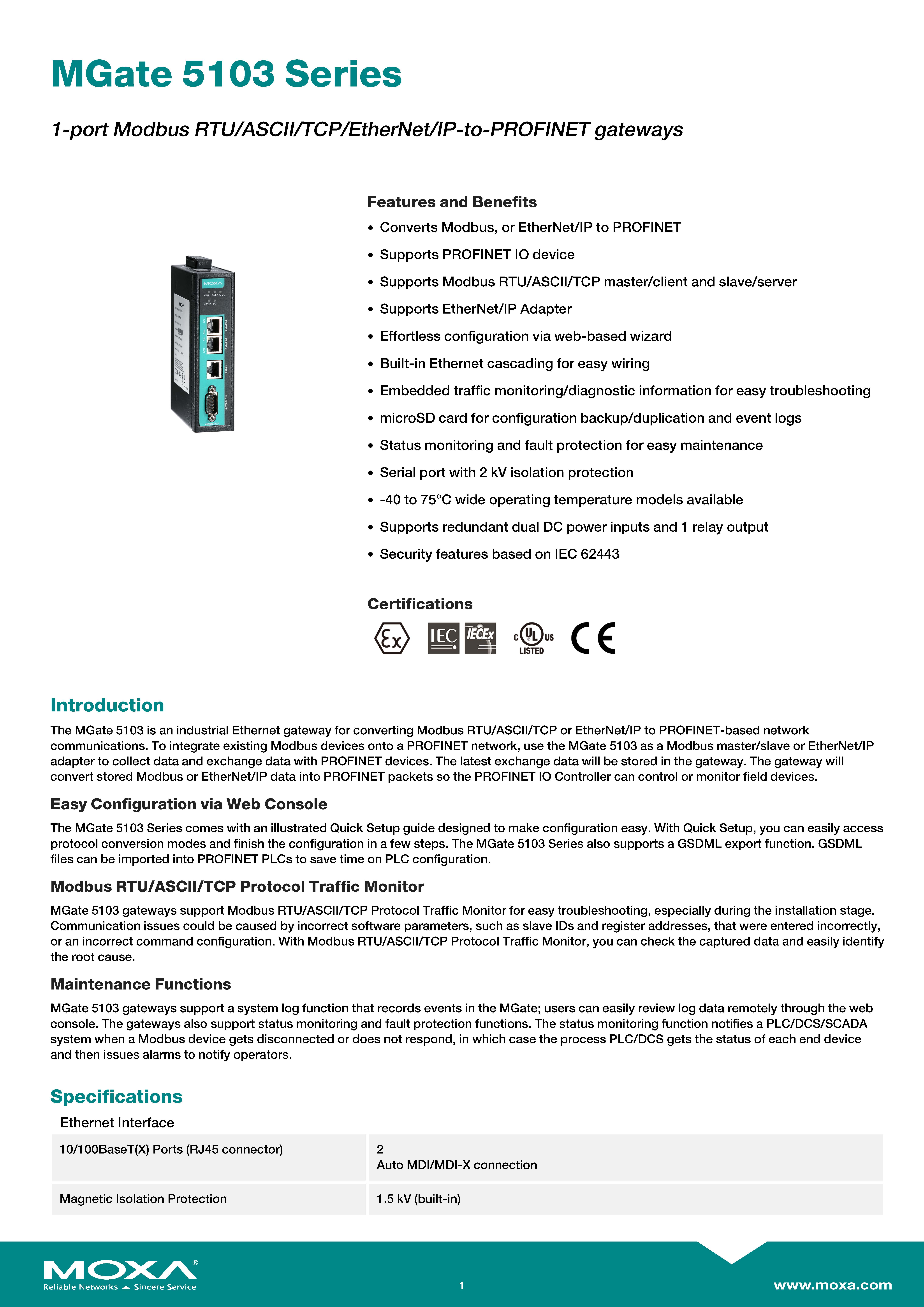 MOXA 1-port Modbus/EtherNet/IP-to-PROFINET gateway Model MGate 5103 ขอราคาพิเศษสำหรับงานโครงการ ติดต่อฝ่ายขาย Line ID : @aimonline ฝ่ายขายโทร: 063-879-9917 ( สินค้ายังไม่รวมภาษีมูลค่าเพิ่ม, ค่าขนส่ง ) เช็คสต๊อกล่าสุดสินค้าก่อนสั่งซื้อ ราคายังไม่รวมค่าติดตั้ง #NP24