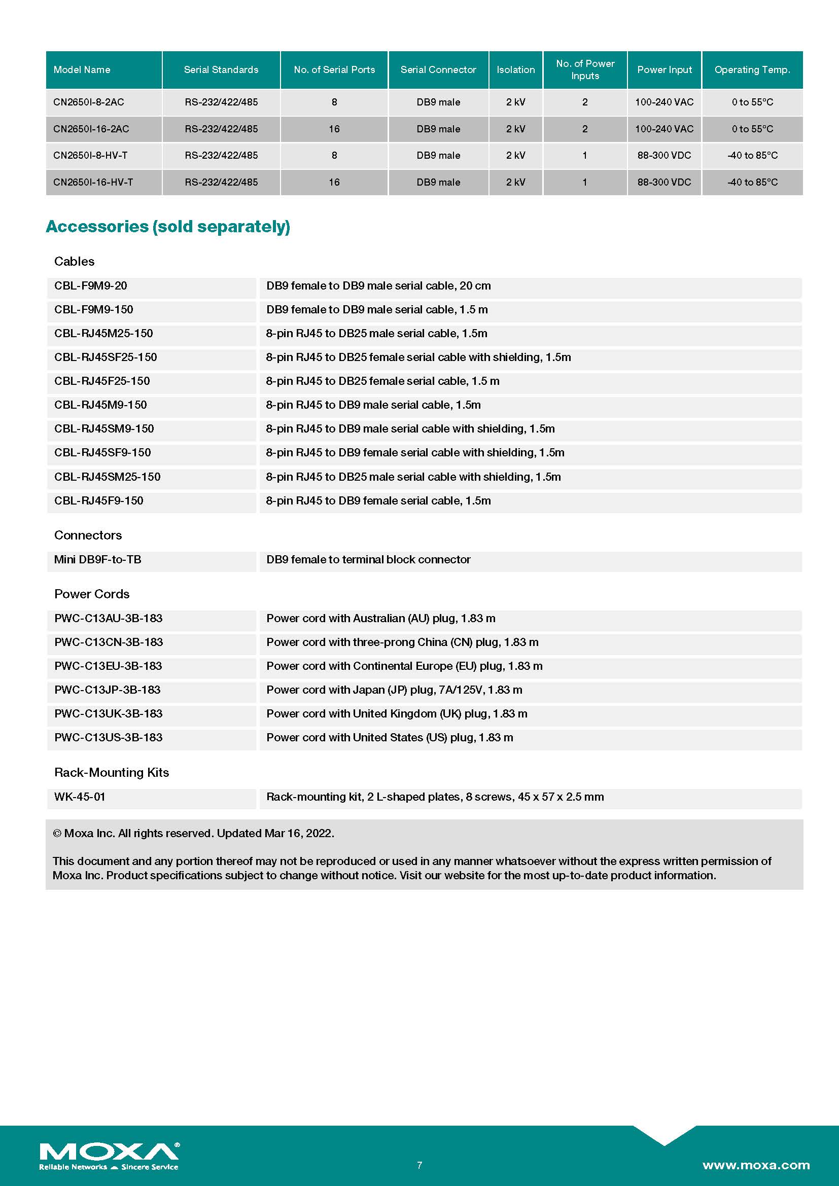 MOXA 16 ports RS-232/422/485 RJ-45 8pin Terminal server Model : CN2650-16-2AC สอบถามข้อมูลเพิ่มเติมติดต่อฝ่ายขาย Line ID : @aimonline ฝ่ายขายโทร: 063-879-9917 ( สินค้ายังไม่รวมภาษีมูลค่าเพิ่ม, ค่าขนส่ง ) เช็คสต๊อกล่าสุดสินค้าก่อนสั่งซื้อ ราคายังไม่รวมค่าติดตั้ง #NP24