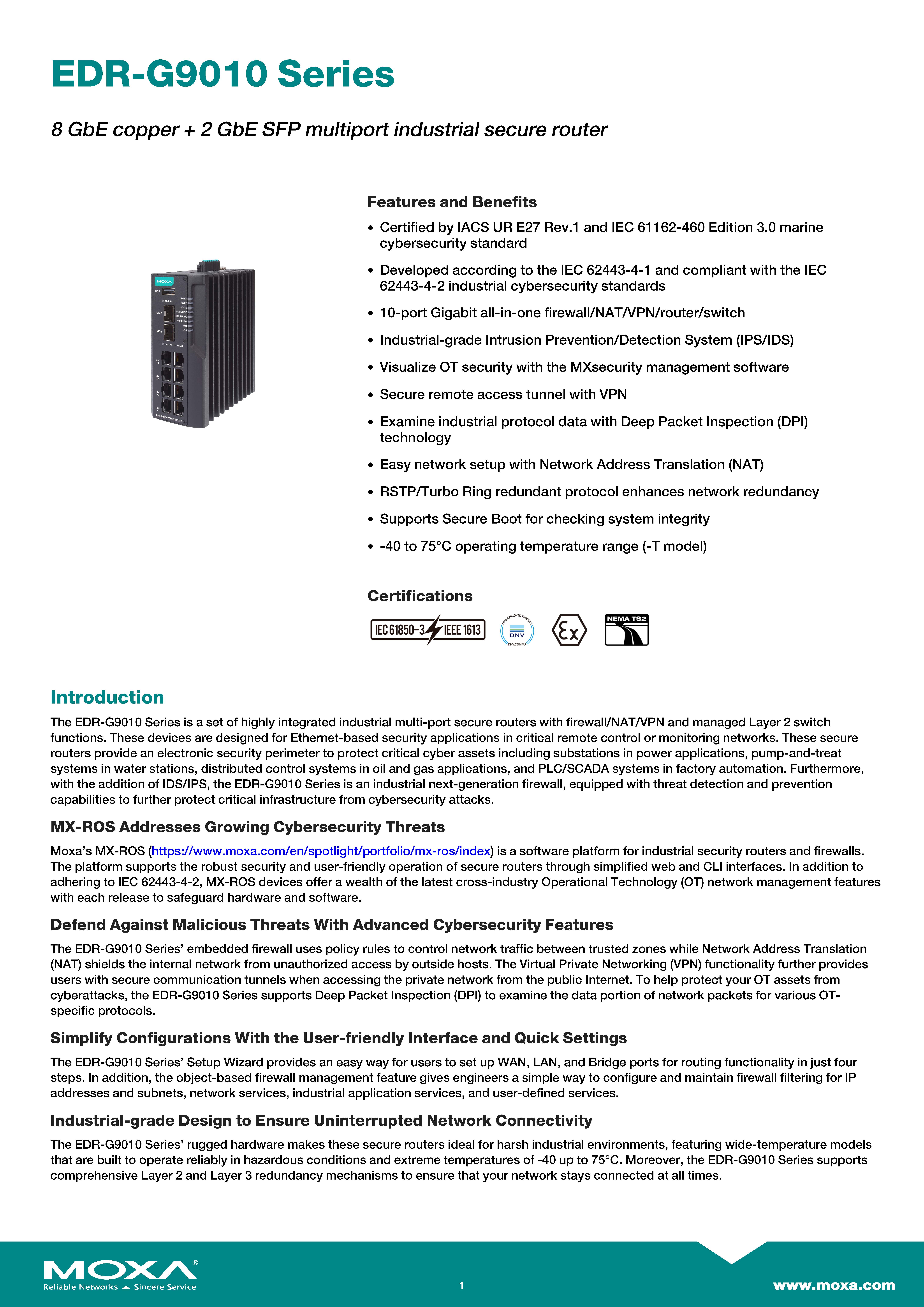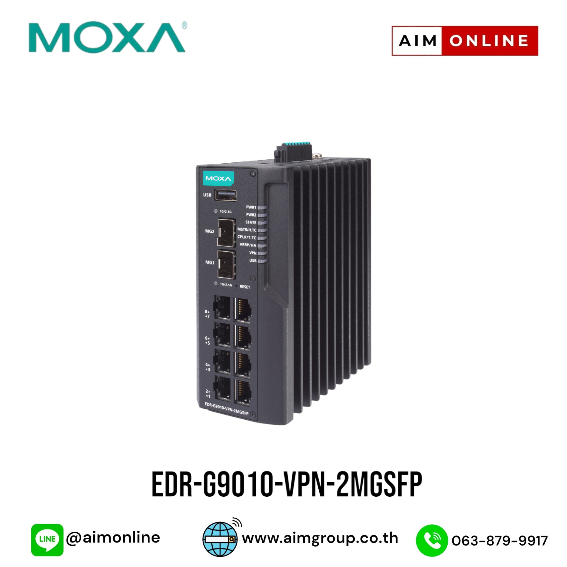 MOXA Industrial Secure Router Switch with 8 10/100/1000BaseT(X) ports, 2 1/2.5GbE SFP slots Model EDR-G9010-VPN-2MGSFP ขอราคาพิเศษสำหรับงานโครงการ ติดต่อฝ่ายขาย Line ID : @aimonline ฝ่ายขายโทร: 063-879-9917 ( สินค้ายังไม่รวมภาษีมูลค่าเพิ่ม, ค่าขนส่ง ) เช็คสต๊อกล่าสุดสินค้าก่อนสั่งซื้อ ราคายังไม่รวมค่าติดตั้ง #NP24