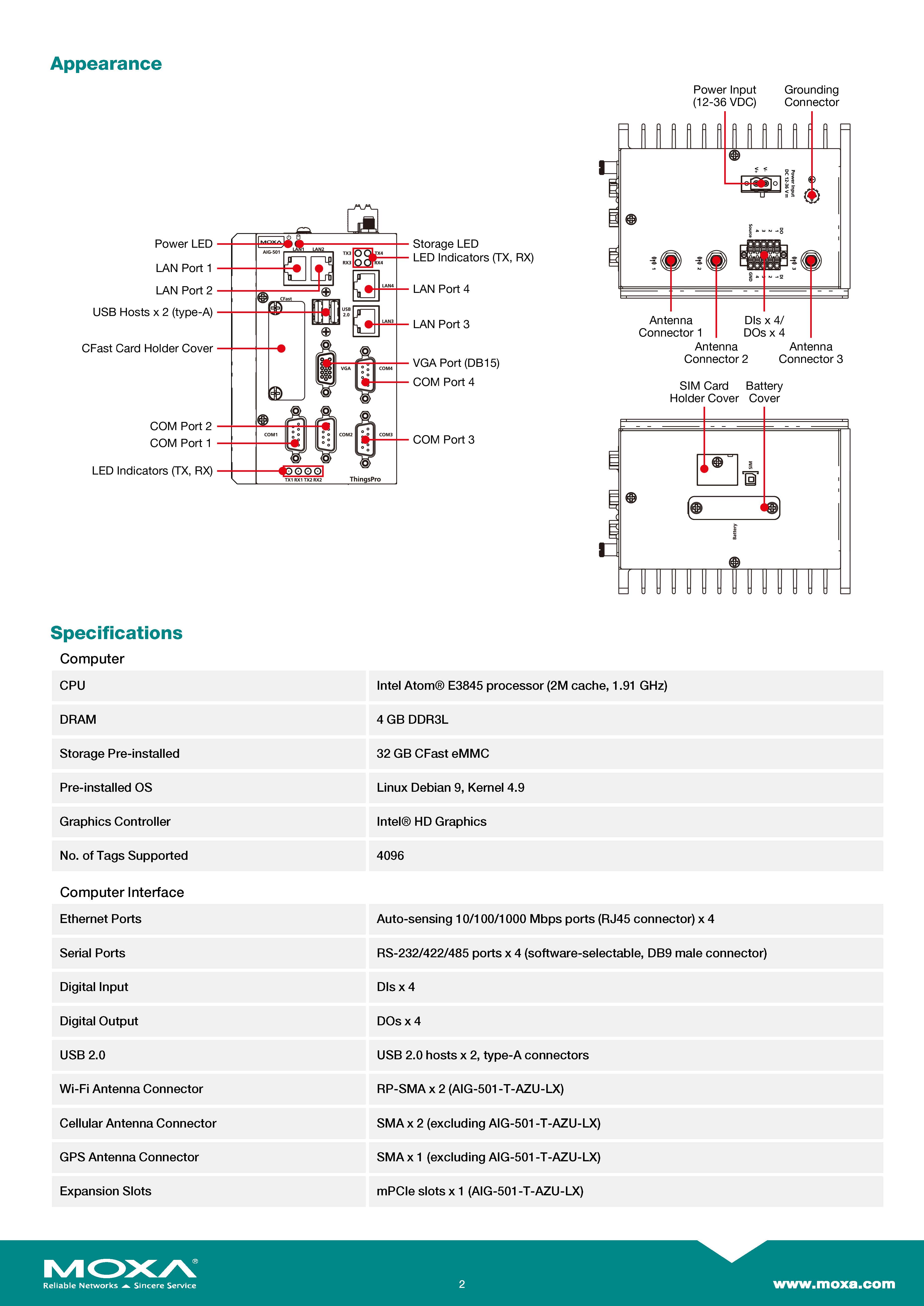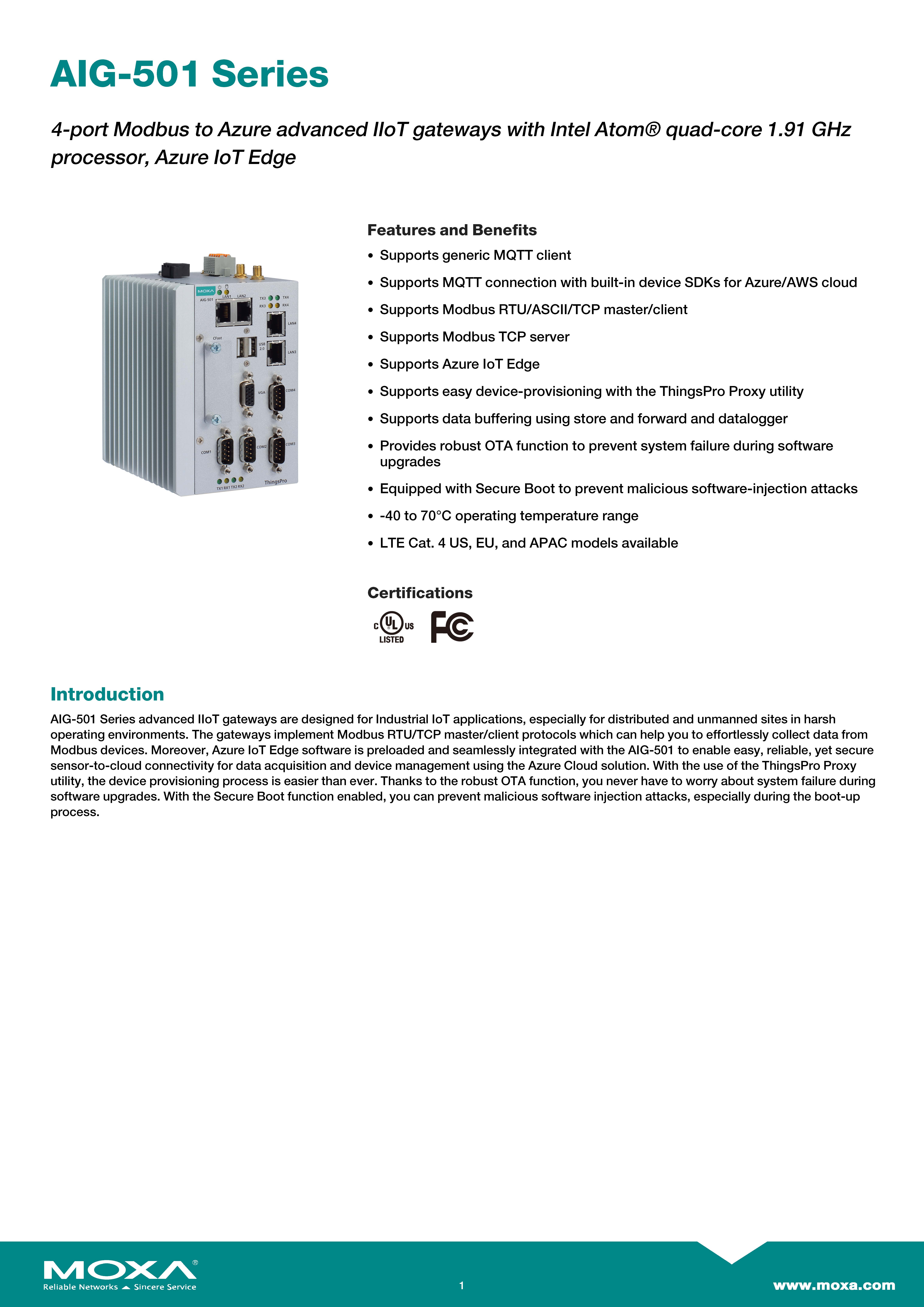 MOXA Advanced IIoT gateway with Intel Atom quad-core 1.91 GHz processor, 1 VGA port, 4 DIs, Model AIG-501-T-AP-AZU-LX ขอราคาพิเศษสำหรับงานโครงการ ติดต่อฝ่ายขาย Line ID : @aimonline ฝ่ายขายโทร: 063-879-9917 ( สินค้ายังไม่รวมภาษีมูลค่าเพิ่ม, ค่าขนส่ง ) เช็คสต๊อกล่าสุดสินค้าก่อนสั่งซื้อ ราคายังไม่รวมค่าติดตั้ง #NP24