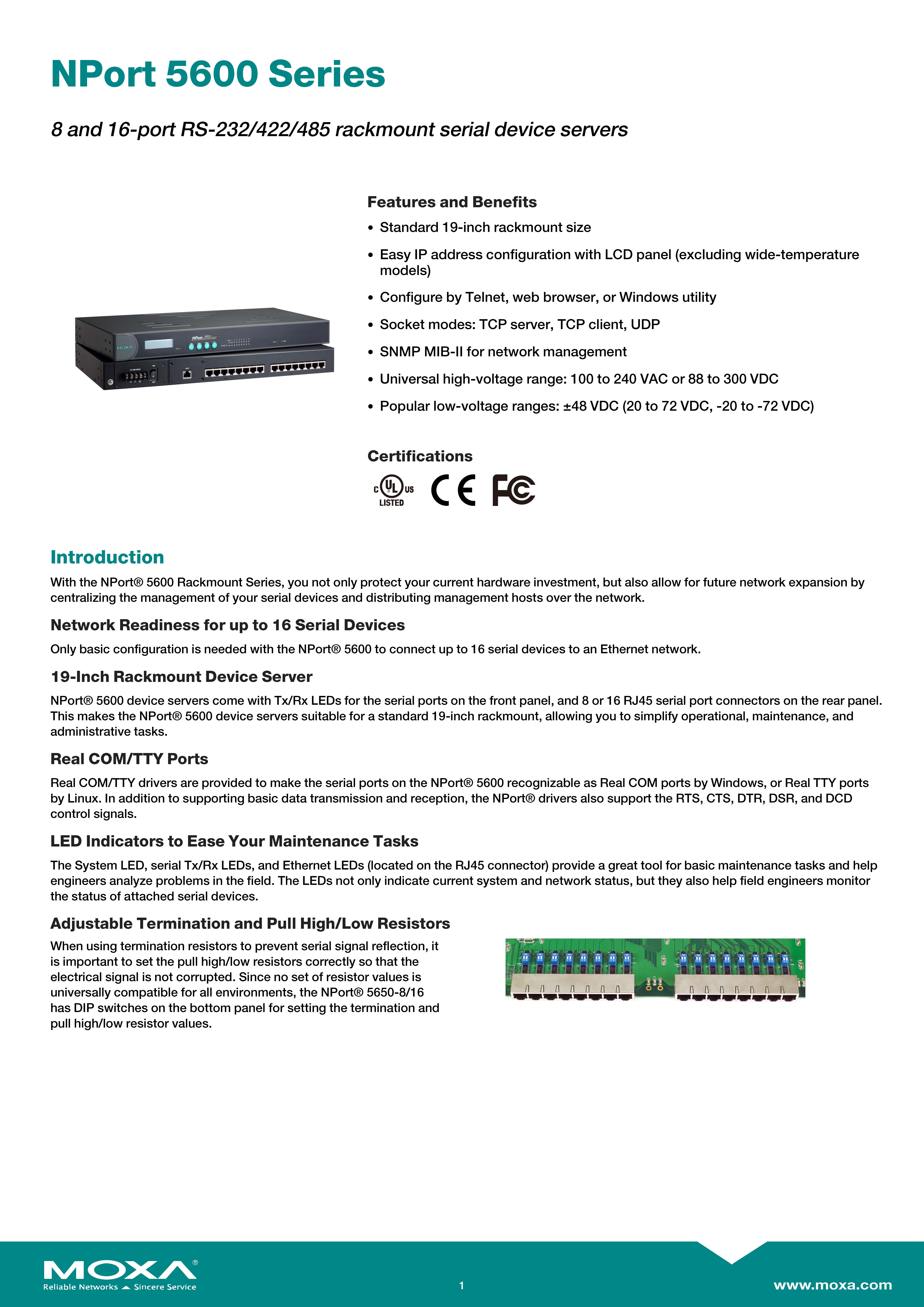 MOXA 8 port device server, 10/100M ethernet, RS-232/422/485 8-pin RJ45, Model NPort 5650-8 ขอราคาพิเศษสำหรับงานโครงการ ติดต่อฝ่ายขาย Line ID : @aimonline ฝ่ายขายโทร: 063-879-9917 ( สินค้ายังไม่รวมภาษีมูลค่าเพิ่ม, ค่าขนส่ง ) เช็คสต๊อกล่าสุดสินค้าก่อนสั่งซื้อ ราคายังไม่รวมค่าติดตั้ง #NP24