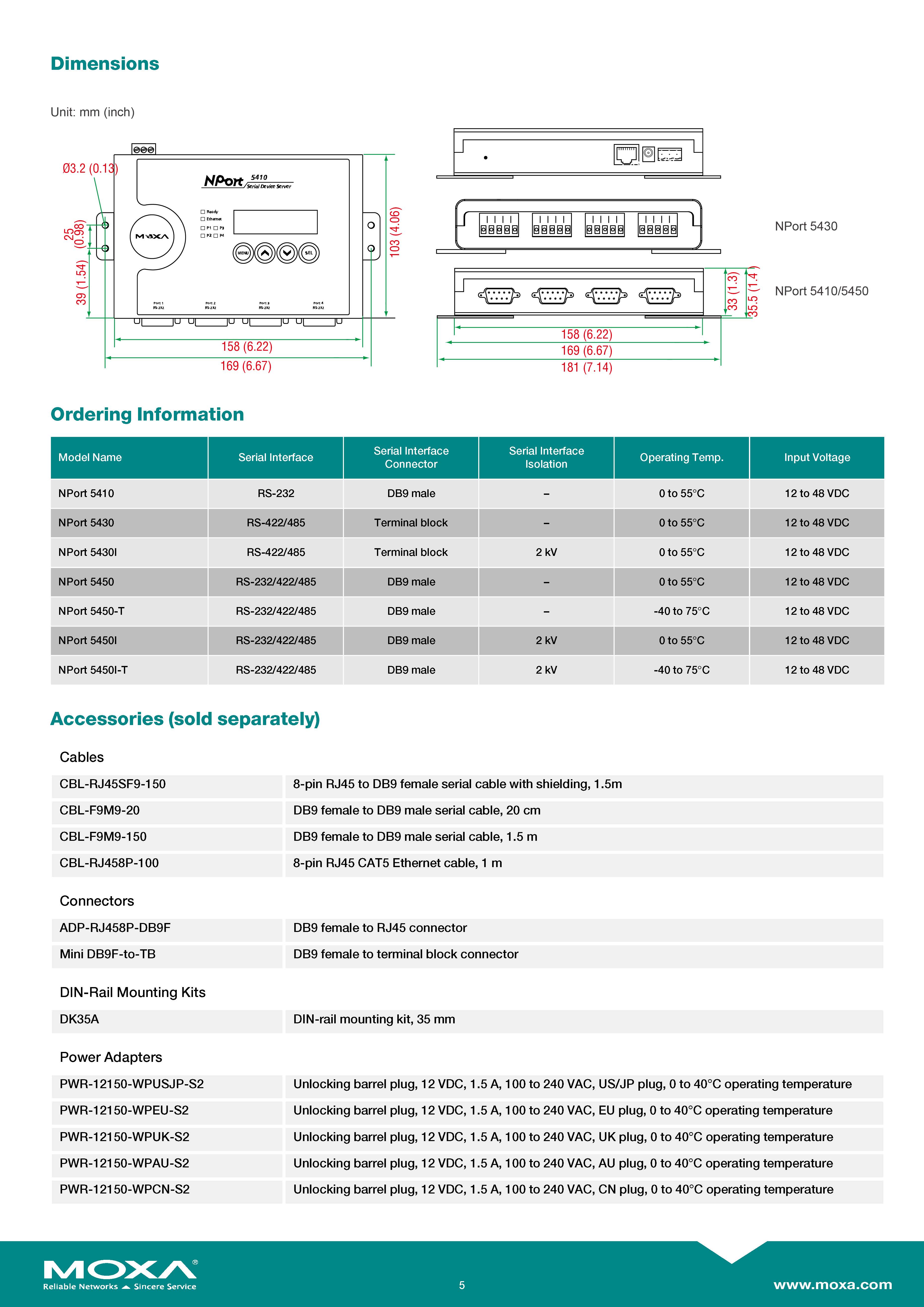 MOXA4-port device server, 10/100M ethernet, RS-232/422/485 DB9 maleModel:NPort 5450ขอราคาพิเศษสำหรับงานโครงการ ติดต่อฝ่ายขาย Line ID : @aimonline ฝ่ายขายโทร: 063-879-9917 ( สินค้ายังไม่รวมภาษีมูลค่าเพิ่ม, ค่าขนส่ง ) เช็คสต๊อกล่าสุดสินค้าก่อนสั่งซื้อ ราคายังไม่รวมค่าติดตั้ง #NP24