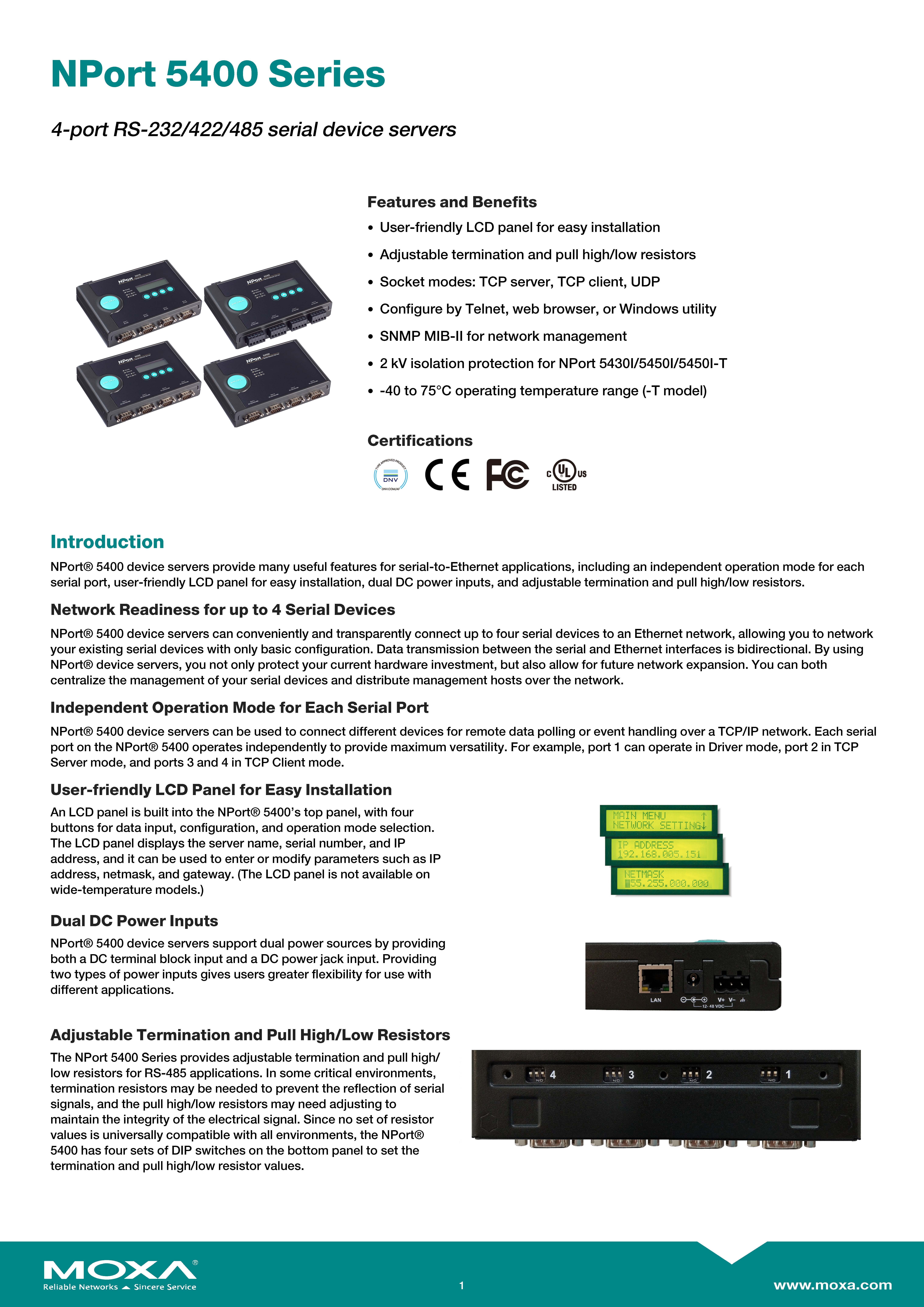 MOXA 4-port device server, 10/100M ethernet, RS-422/485 terminal block, Model NPort 5430 ขอราคาพิเศษสำหรับงานโครงการ ติดต่อฝ่ายขาย Line ID : @aimonline ฝ่ายขายโทร: 063-879-9917 ( สินค้ายังไม่รวมภาษีมูลค่าเพิ่ม, ค่าขนส่ง ) เช็คสต๊อกล่าสุดสินค้าก่อนสั่งซื้อ ราคายังไม่รวมค่าติดตั้ง #NP24