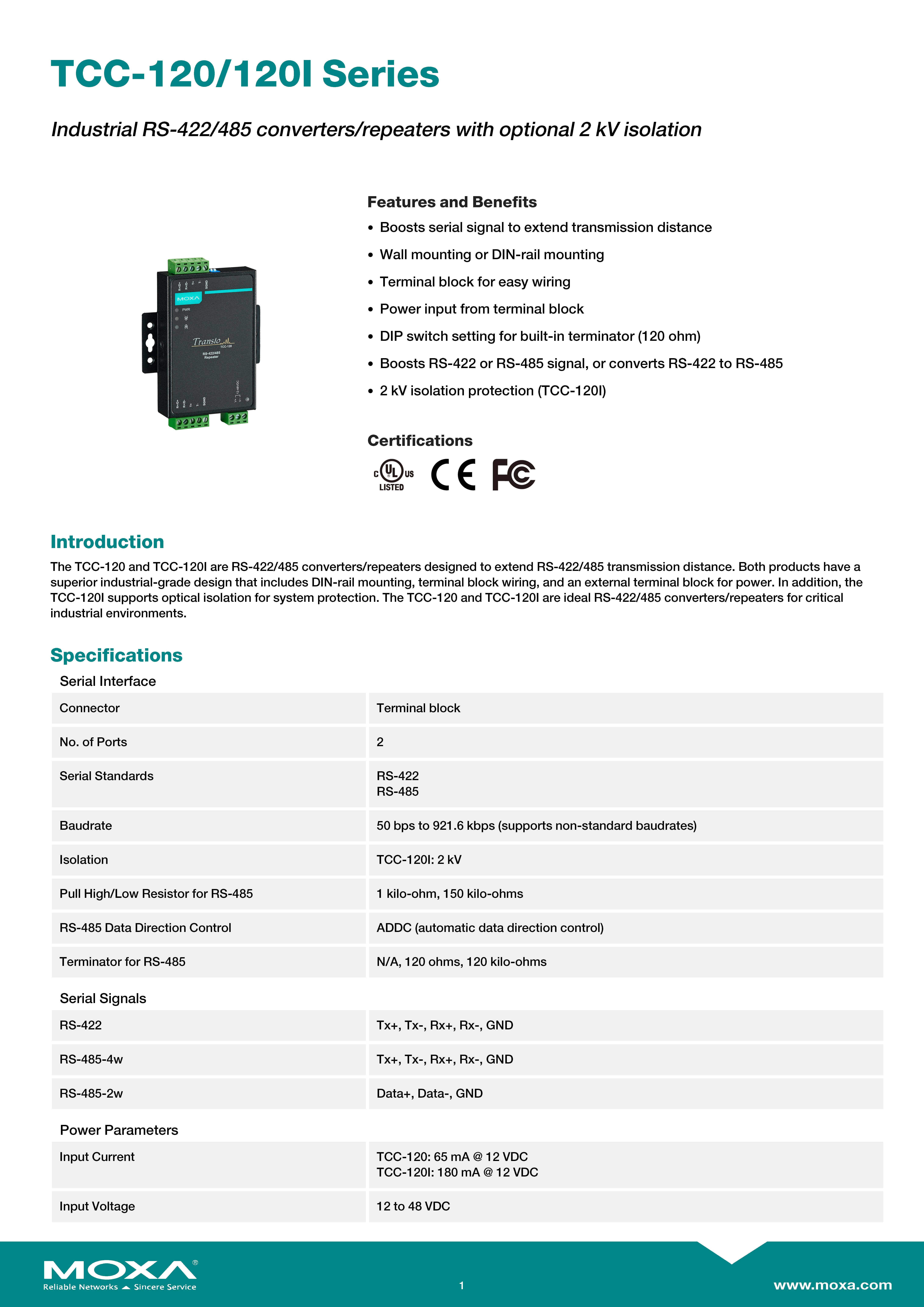 MOXA Serial-to-Serial Converters RS-422/485 converter/repeater Model TCC-120 ขอราคาพิเศษสำหรับงานโครงการ ติดต่อฝ่ายขาย Line ID : @aimonline ฝ่ายขายโทร: 063-879-9917 ( สินค้ายังไม่รวมภาษีมูลค่าเพิ่ม, ค่าขนส่ง ) เช็คสต๊อกล่าสุดสินค้าก่อนสั่งซื้อ ราคายังไม่รวมค่าติดตั้ง #NP24