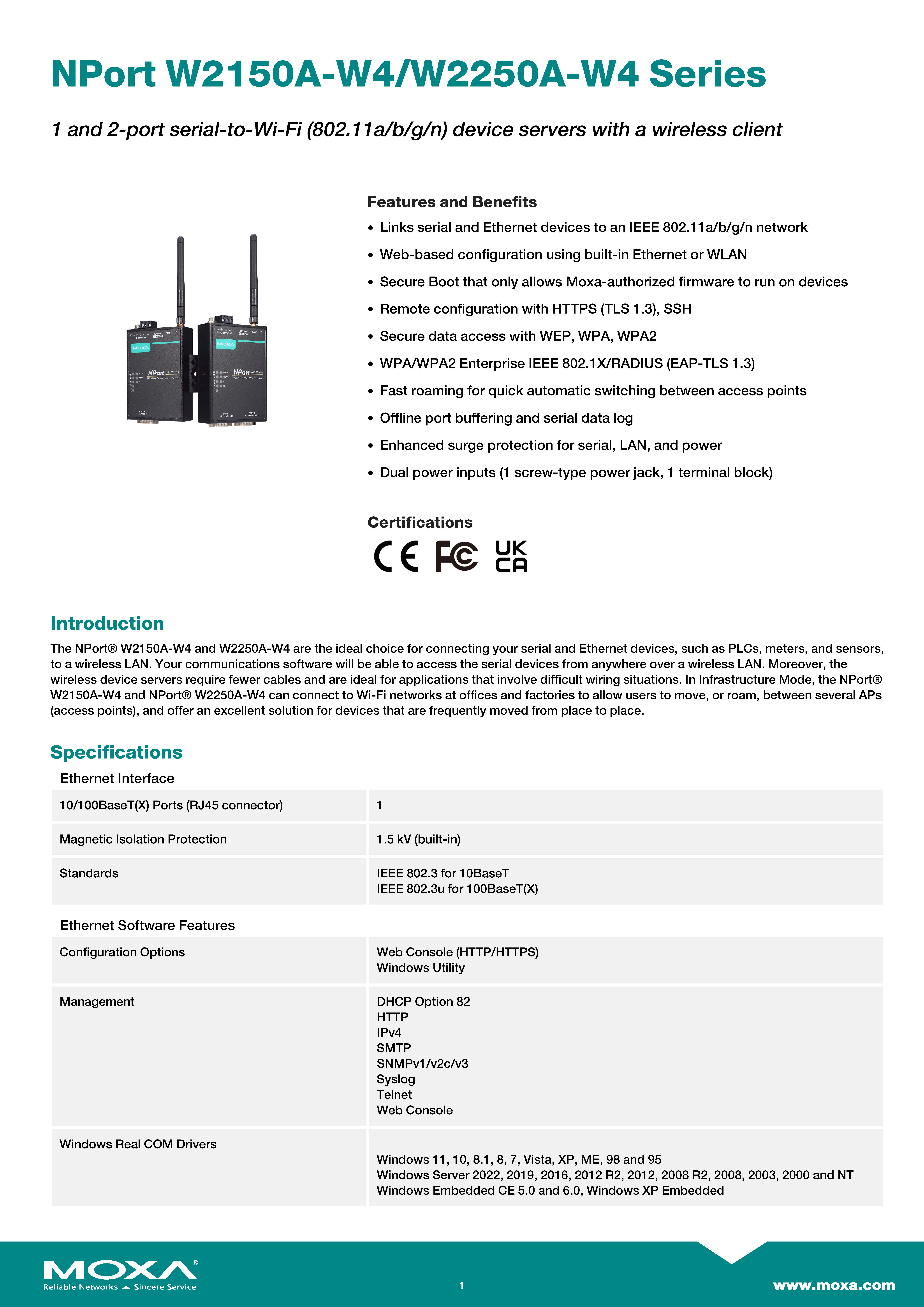 MOXA Wireless Device Servers 1-port RS-232/422/485 wireless device server with 802.11a/b/g/n WLAN CN band Model NPort W2150A-CN ขอราคาพิเศษสำหรับงานโครงการ ติดต่อฝ่ายขาย Line ID : @aimonline ฝ่ายขายโทร: 063-879-9917 ( สินค้ายังไม่รวมภาษีมูลค่าเพิ่ม, ค่าขนส่ง ) เช็คสต๊อกล่าสุดสินค้าก่อนสั่งซื้อ ราคายังไม่รวมค่าติดตั้ง #NP24