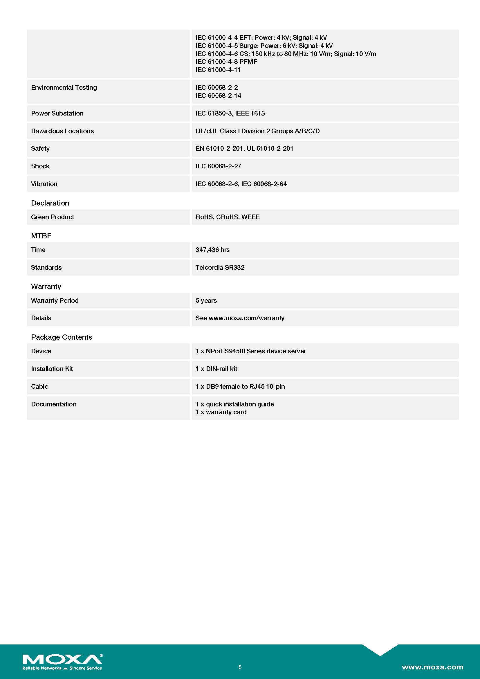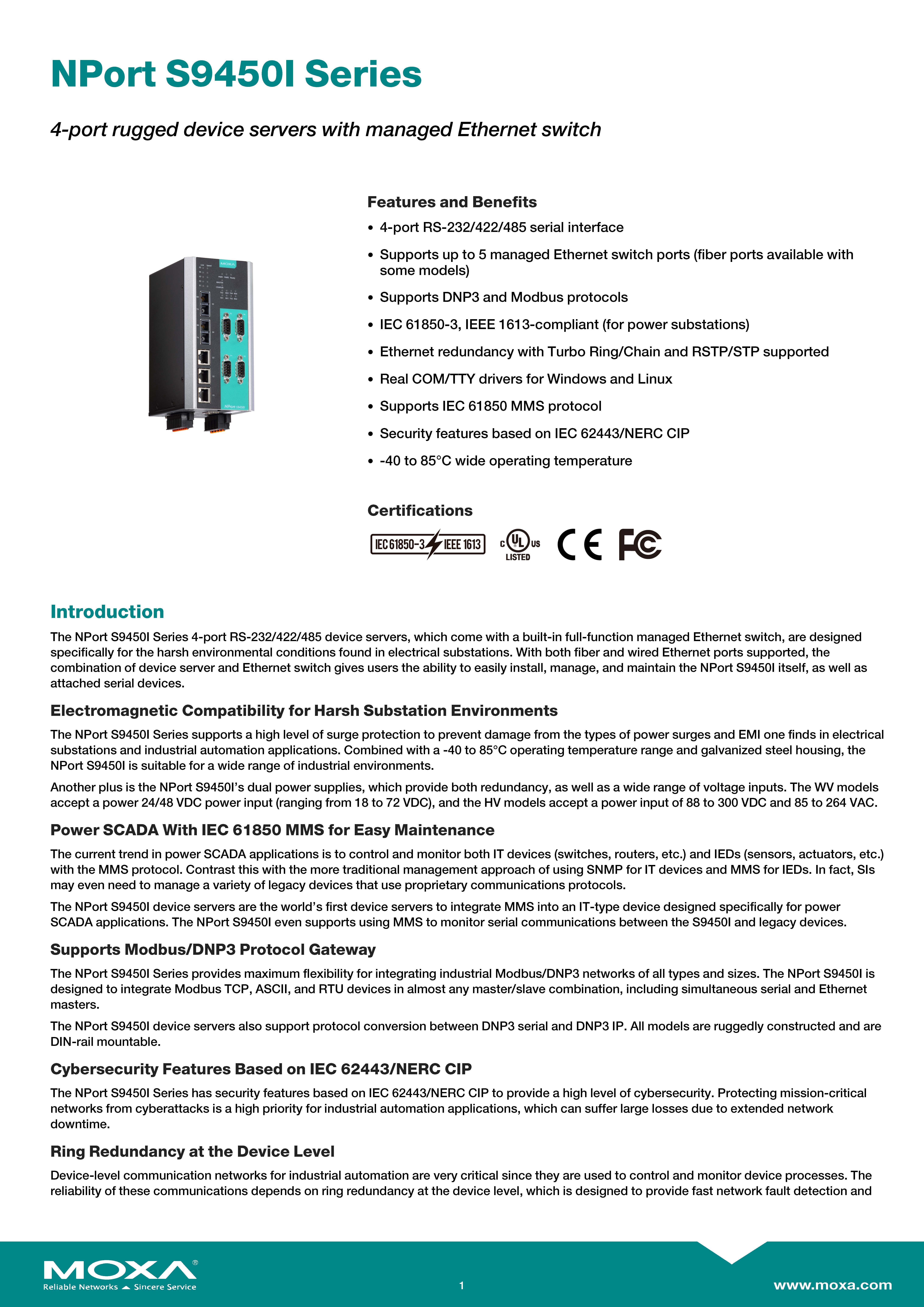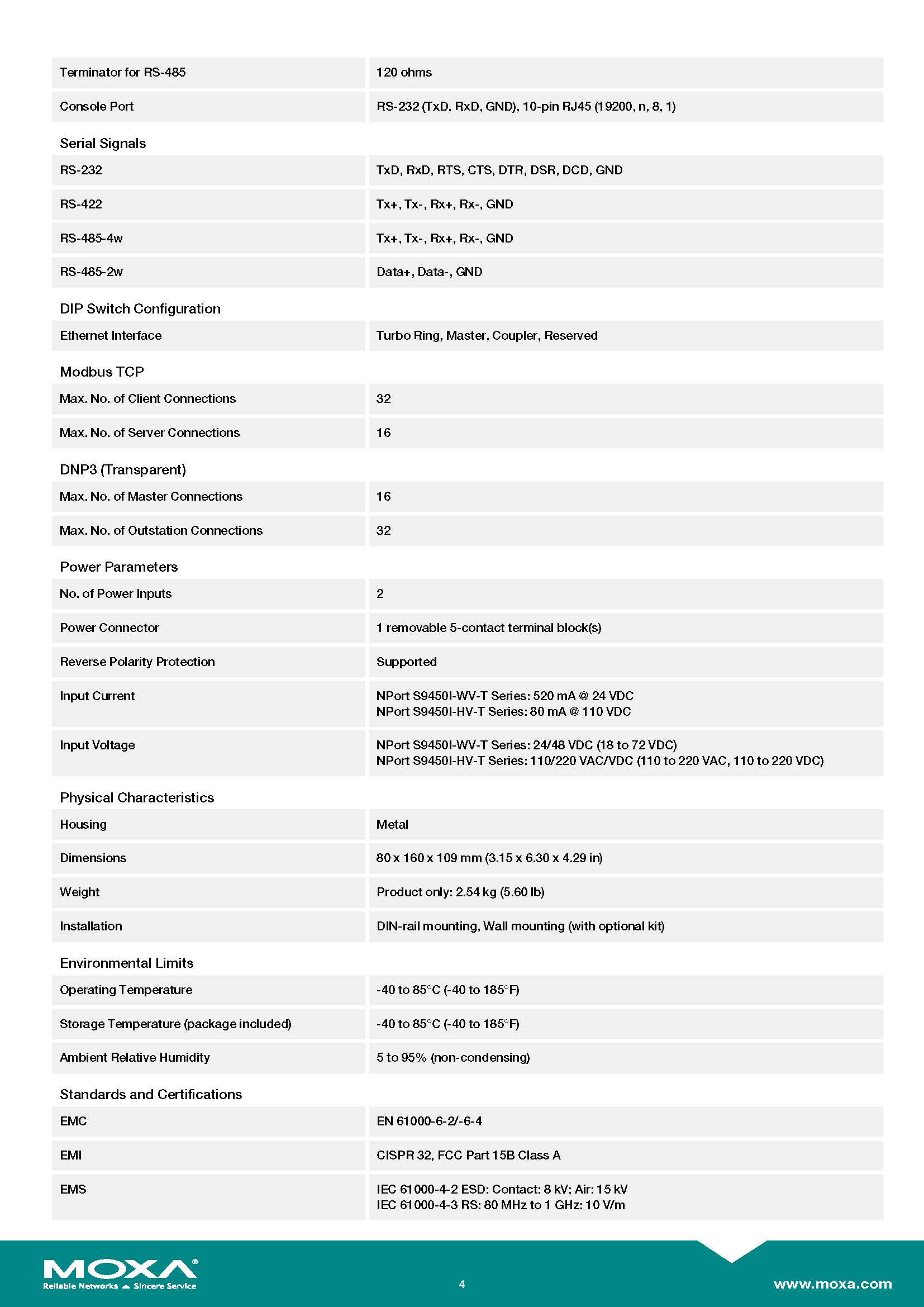 MOXA Combo Device Server 4-port RS-232/422/485 rugged device server, 5 10/100BaseT Model NPort S9450I-HV-T ขอราคาพิเศษสำหรับงานโครงการ ติดต่อฝ่ายขาย Line ID : @aimonline ฝ่ายขายโทร: 063-879-9917 ( สินค้ายังไม่รวมภาษีมูลค่าเพิ่ม, ค่าขนส่ง ) เช็คสต๊อกล่าสุดสินค้าก่อนสั่งซื้อ ราคายังไม่รวมค่าติดตั้ง #NP24