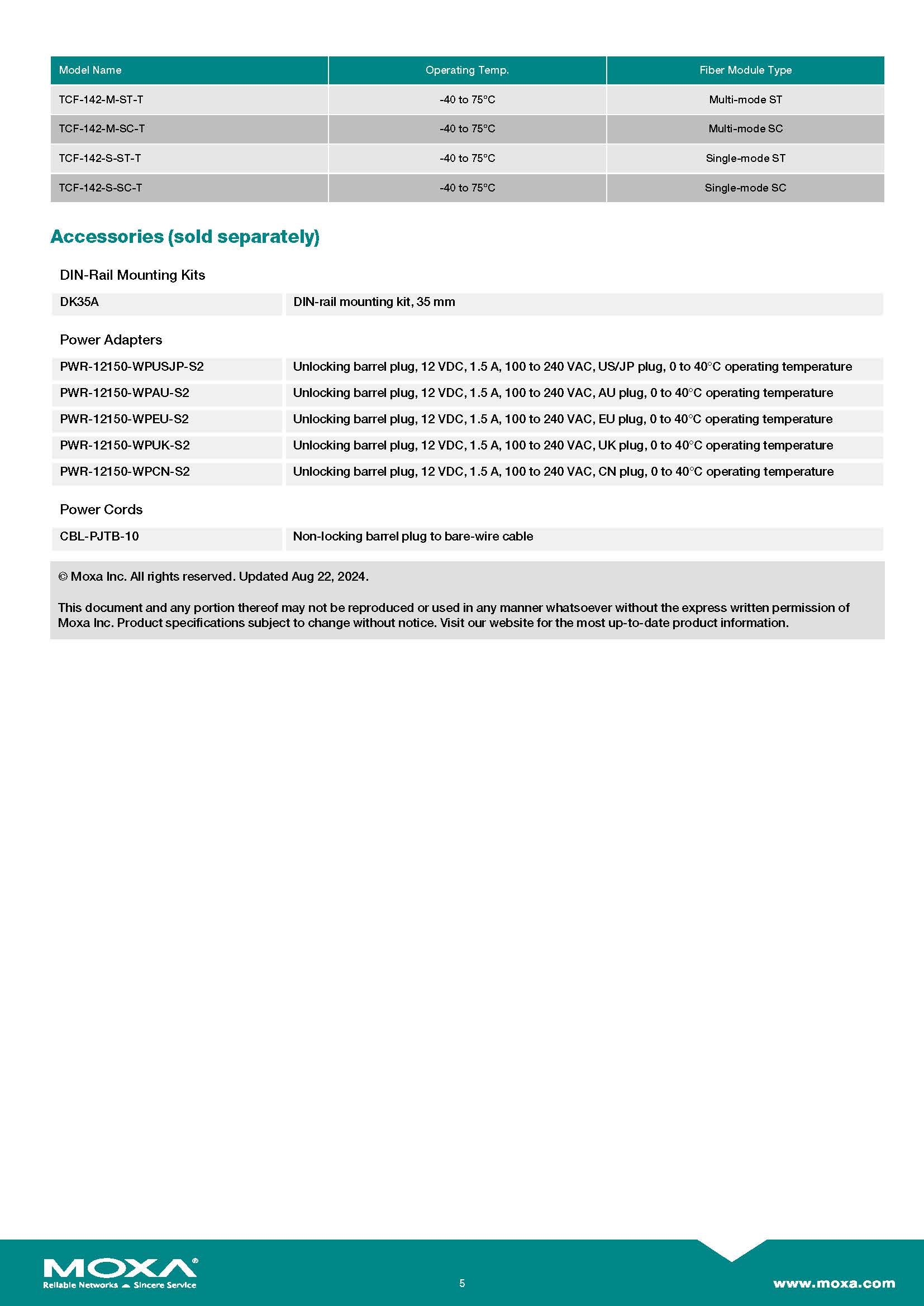 MOXA Ethernet-to-Fiber Media Converters Rack chassis, 2U, single 110 to 240 VAC inputModel:TRC-190-ACขอราคาพิเศษสำหรับงานโครงการ ติดต่อฝ่ายขาย Line ID : @aimonline ฝ่ายขายโทร: 063-879-9917 ( สินค้ายังไม่รวมภาษีมูลค่าเพิ่ม, ค่าขนส่ง ) เช็คสต๊อกล่าสุดสินค้าก่อนสั่งซื้อ ราคายังไม่รวมค่าติดตั้ง #NP24