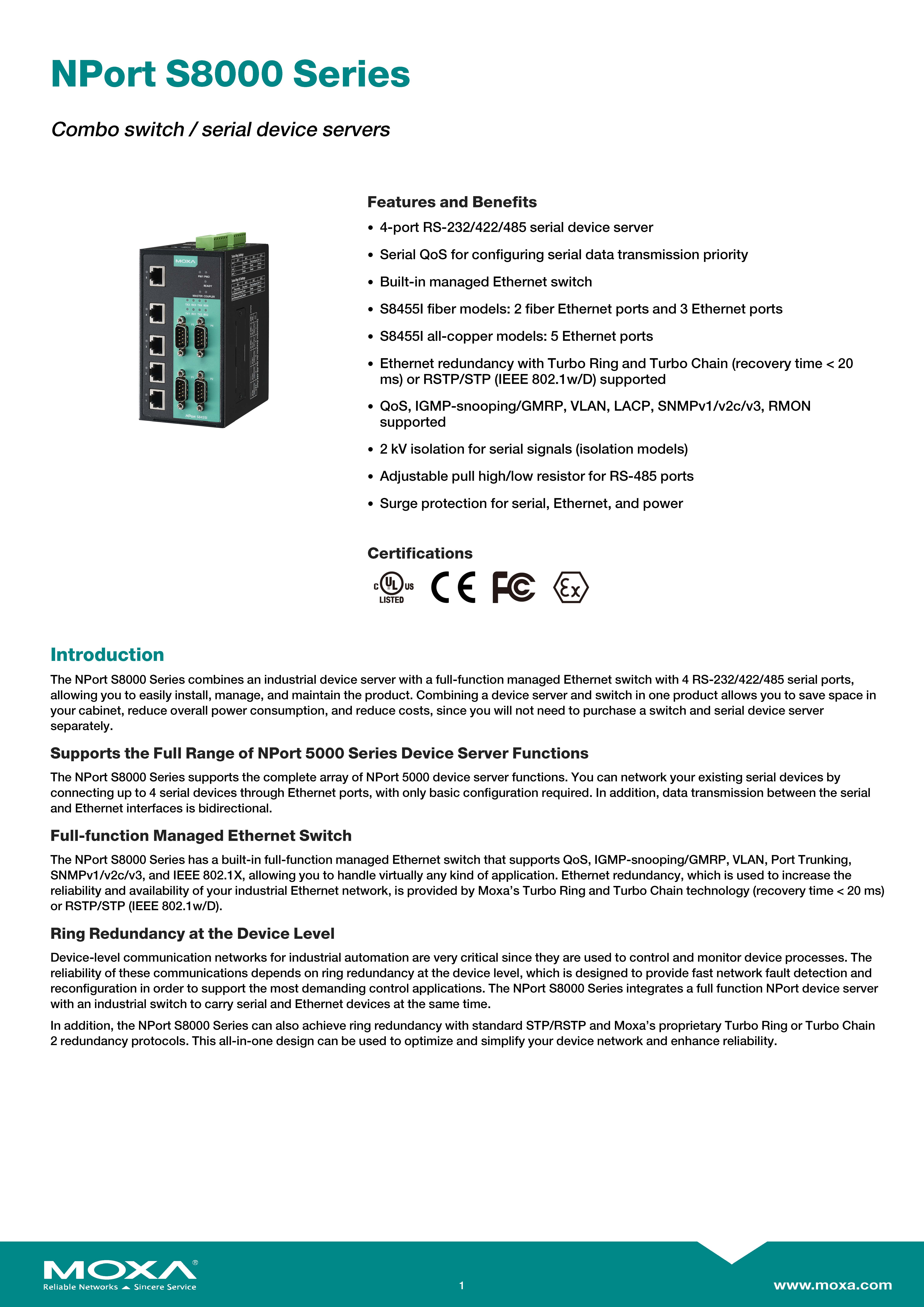 MOXA Combo Device Servers 4 RS-232/422/485 ports, 3 10/100BaseT(X) ports Model:NPort S8455I ขอราคาพิเศษสำหรับงานโครงการ ติดต่อฝ่ายขาย Line ID : @aimonline ฝ่ายขายโทร: 063-879-9917 (สินค้ายังไม่รวมภาษีมูลค่าเพิ่ม,ค่าขนส่ง) เช็คสต๊อกล่าสุดสินค้าก่อนสั่งซื้อ ราคายังไม่รวมค่าติดตั้ง #NP24