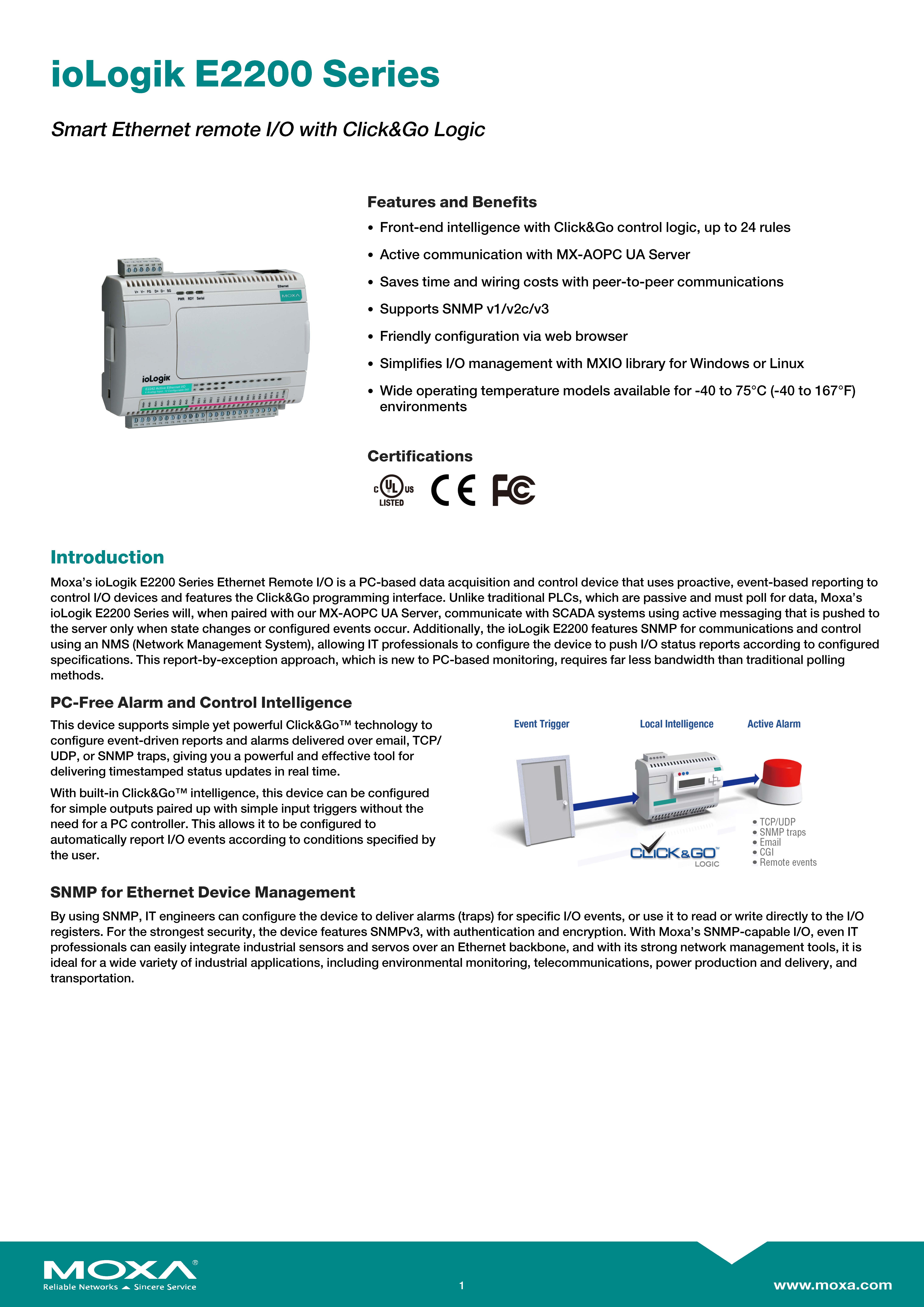 MOXA Universal Controllers & I/Os Model: ioLogik E2262 Universal controller, 8 TCs, 4 DOs, Click&Go, -10 to 60°C operating temperature ขอราคาพิเศษสำหรับงานโครงการ ติดต่อฝ่ายขาย Line ID : @aimonline ฝ่ายขายโทร: 063-879-9917 ( สินค้ายังไม่รวมภาษีมูลค่าเพิ่ม, ค่าขนส่ง ) เช็คสต๊อกล่าสุดสินค้าก่อนสั่งซื้อ ราคายังไม่รวมค่าติดตั้ง
