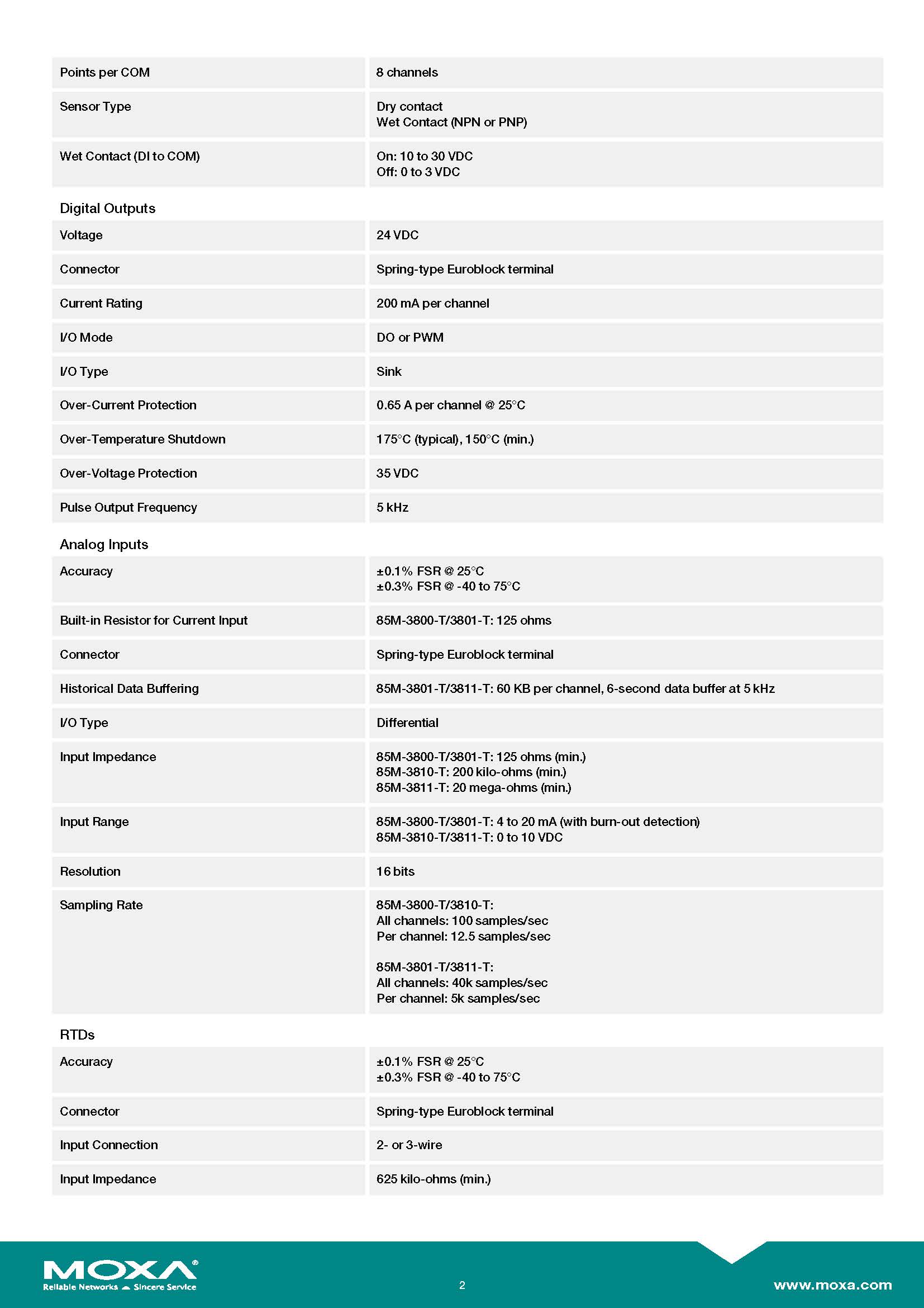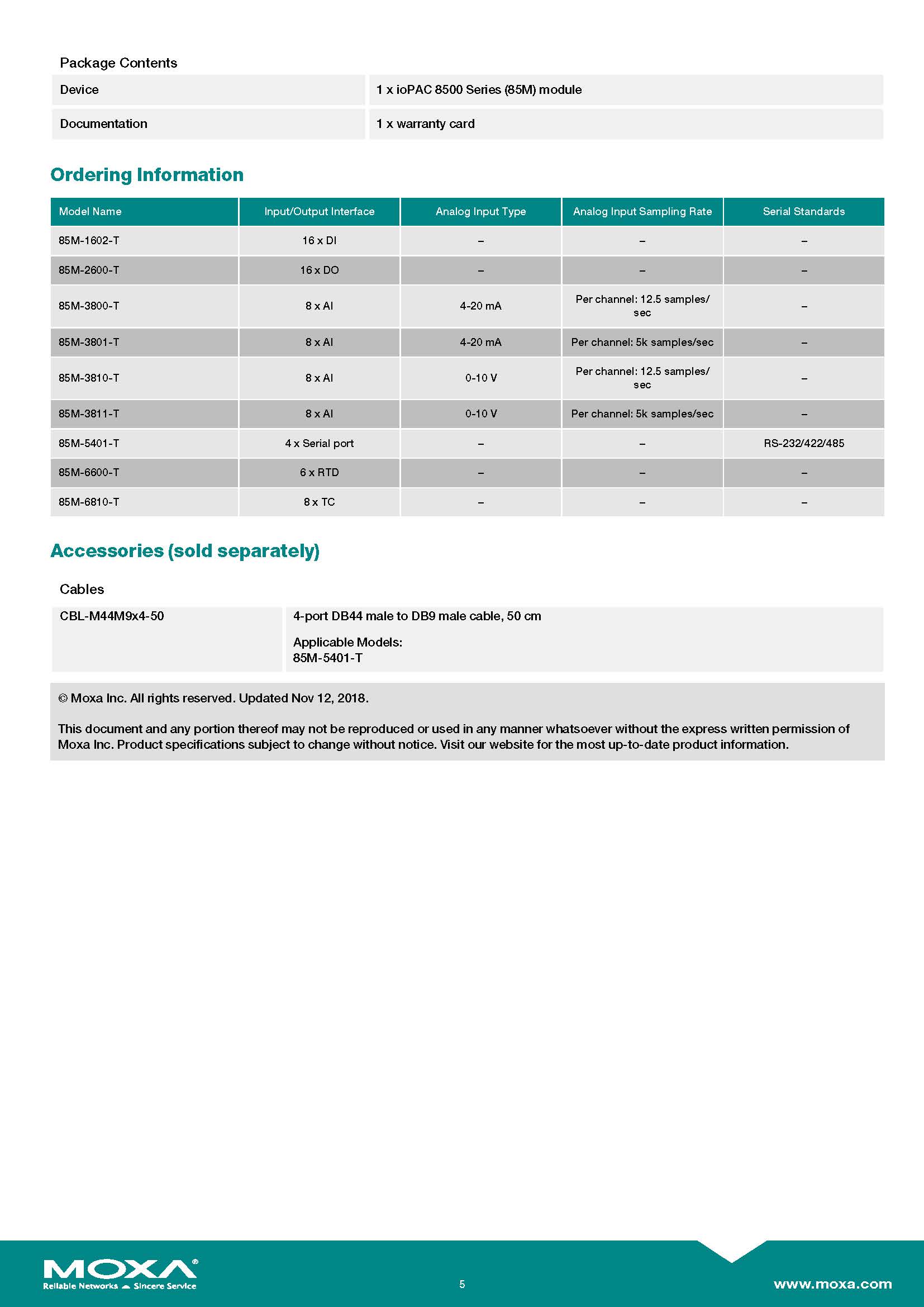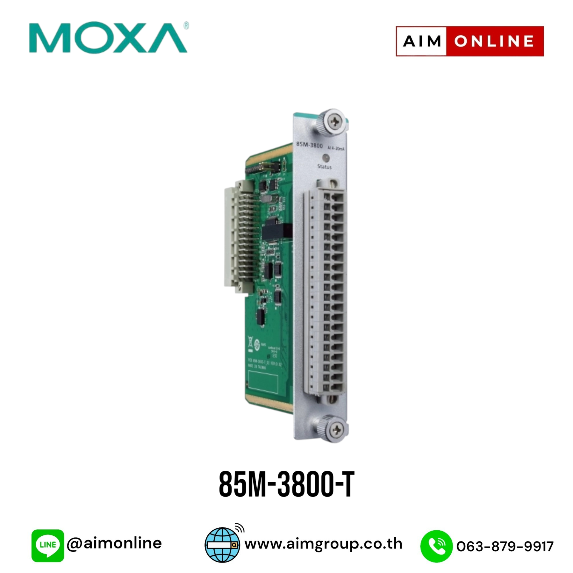MOXA ioPAC 8500 Series (85M) Modules Model : 85M-3800-T Module for the ioPAC 8500/8600 Series, 8 AIs, 4 to 20 mA, -40 to 75°C operating temperature ขอราคาพิเศษสำหรับงานโครงการ ติดต่อฝ่ายขาย Line ID : @aimonline ฝ่ายขายโทร: 063-879-9917 ( สินค้ายังไม่รวมภาษีมูลค่าเพิ่ม, ค่าขนส่ง ) เช็คสต๊อกล่าสุดสินค้าก่อนสั่งซื้อ ราคายังไม่รวมค่าติดตั้ง