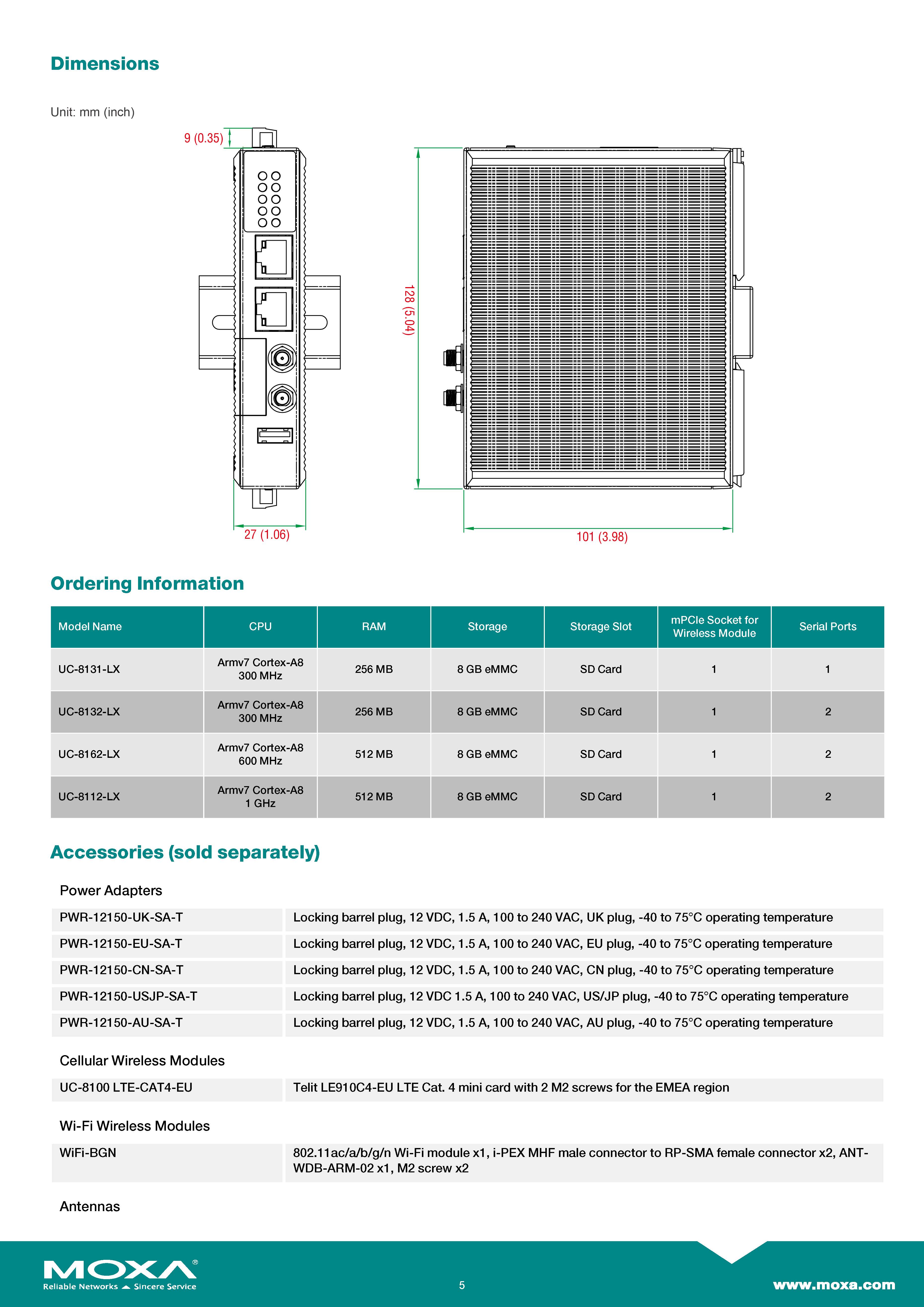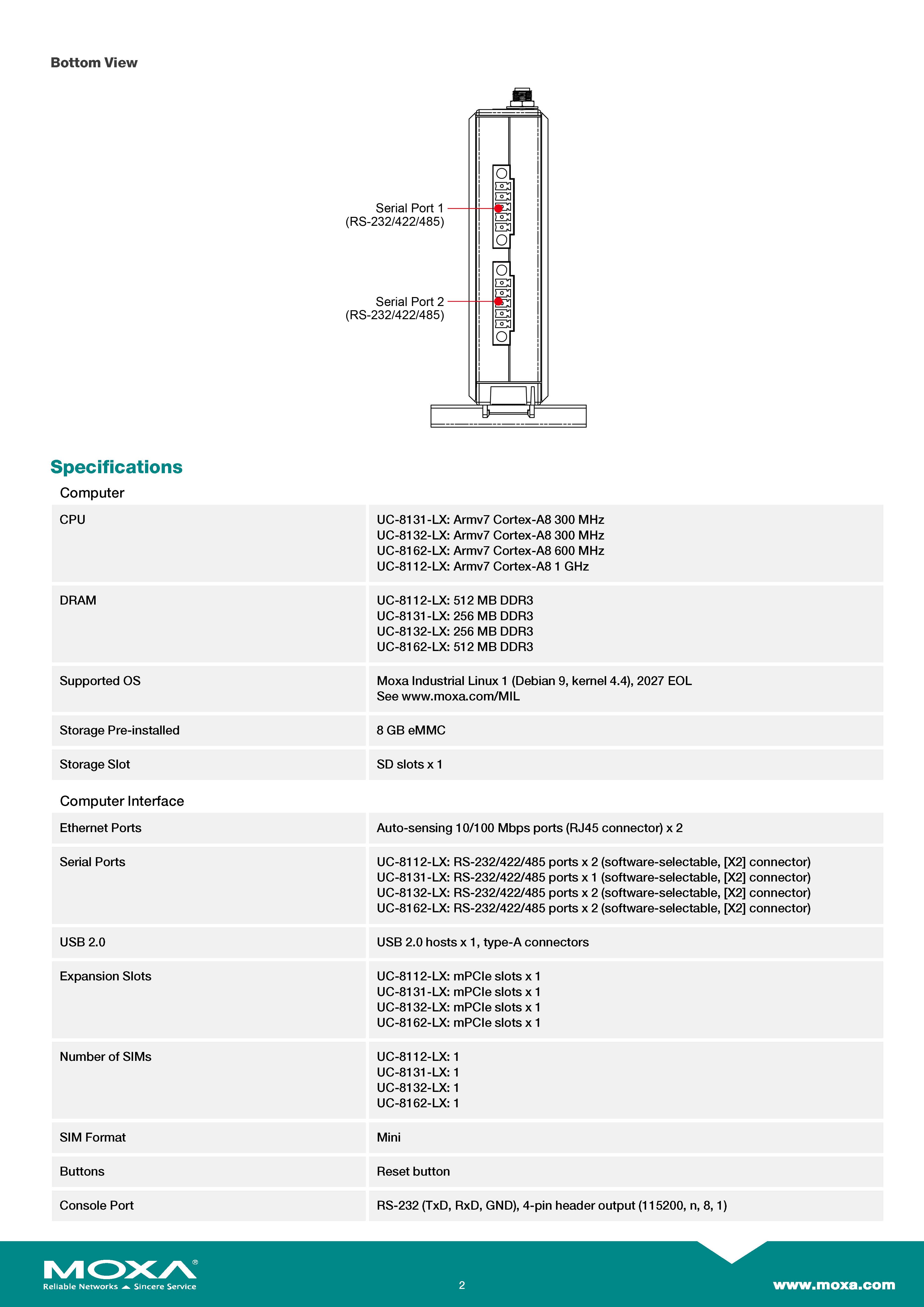MOXA Arm-Based Computers Model: UC-8131-LX Arm-based wireless-enabled DIN-rail industrial computer with 300 MHz CPU, 2 Ethernet, 1 Serial port ขอราคาพิเศษสำหรับงานโครงการ ติดต่อฝ่ายขาย Line ID : @aimonline ฝ่ายขายโทร: 063-879-9917 ( สินค้ายังไม่รวมภาษีมูลค่าเพิ่ม, ค่าขนส่ง ) เช็คสต๊อกล่าสุดสินค้าก่อนสั่งซื้อ ราคายังไม่รวมค่าติดตั้ง