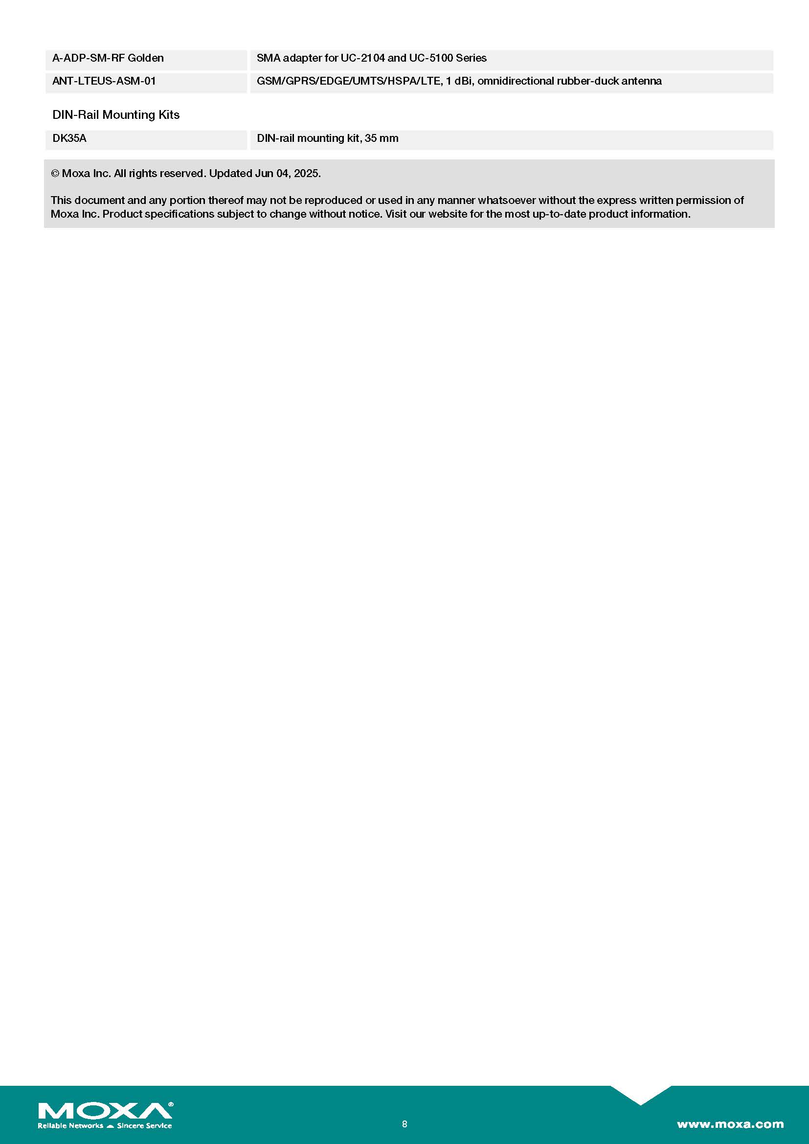 สินค้ายี่ห้อ MOXA รุ่น UC-2104-LX รายละเอียดสินค้า คอมพิวเตอร์ฝังตัวเกรดอุตสาหกรรมขนาดกะทัดรัด (Palm-sized Industrial Embedded Computer / IIoT Gateway) จาก MOXA ขับเคลื่อนด้วยซีพียู Arm Cortex-A8 600 MHz มาพร้อมพอร์ต LAN (10/100 Mbps) 1 ช่อง, ช่องเสียบ Mini PCIe ✅ ขอราคาพิเศษสำหรับงานโครงการติดต่อ Mobile : 063-879-9917 Line ID @aimonline