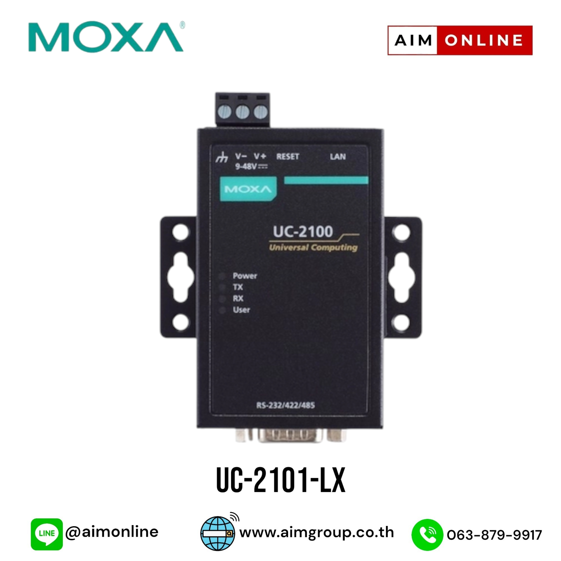 MOXA Arm-Based Computers Model:UC-2101-LX Mini RISC-based embedded computer with 600 MHz processor, 1 serial port and 1 LAN port ขอราคาพิเศษสำหรับงานโครงการ ติดต่อฝ่ายขาย Line ID : @aimonline ฝ่ายขายโทร: 063-879-9917 ( สินค้ายังไม่รวมภาษีมูลค่าเพิ่ม, ค่าขนส่ง ) เช็คสต๊อกล่าสุดสินค้าก่อนสั่งซื้อ ราคายังไม่รวมค่าติดตั้ง