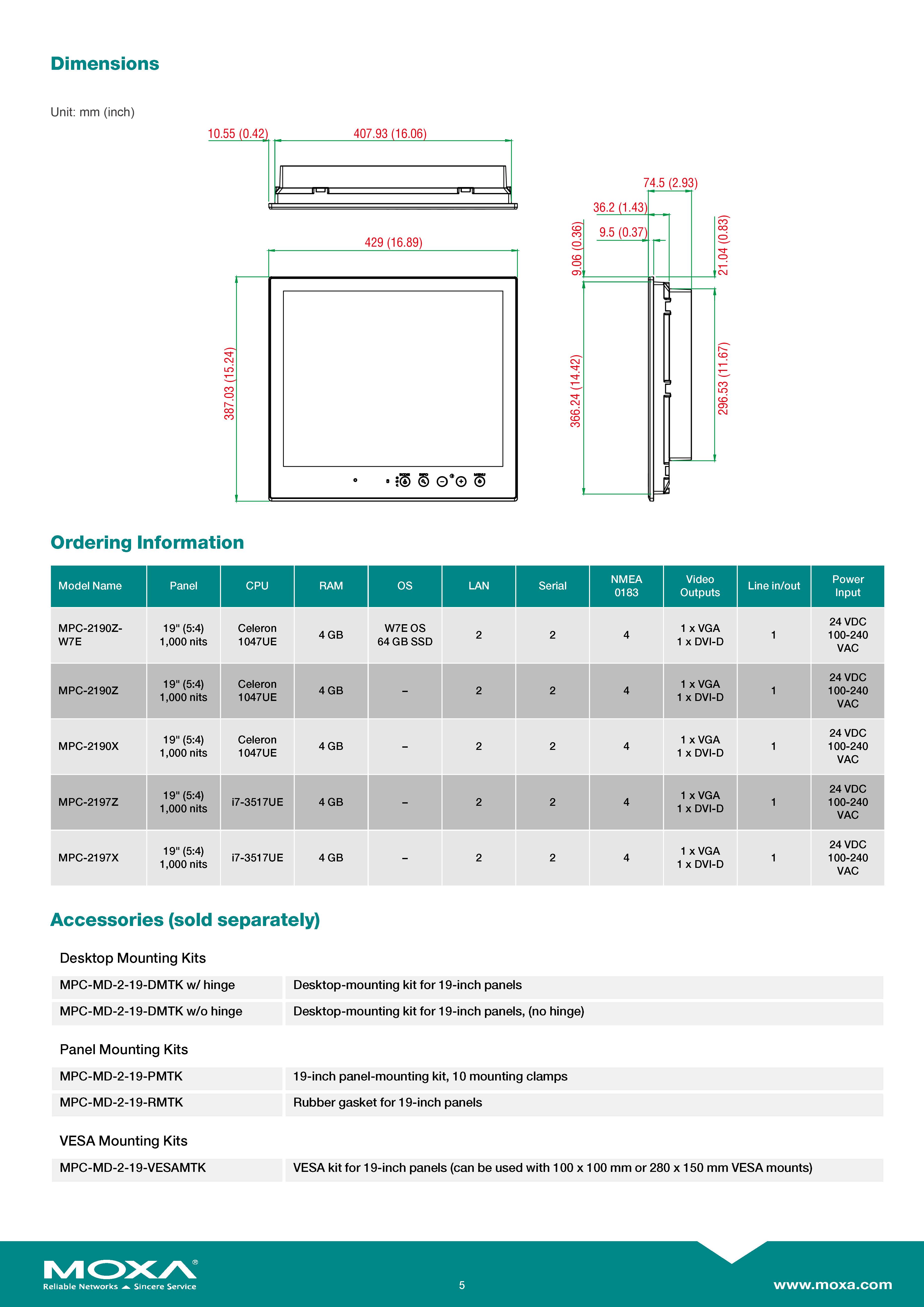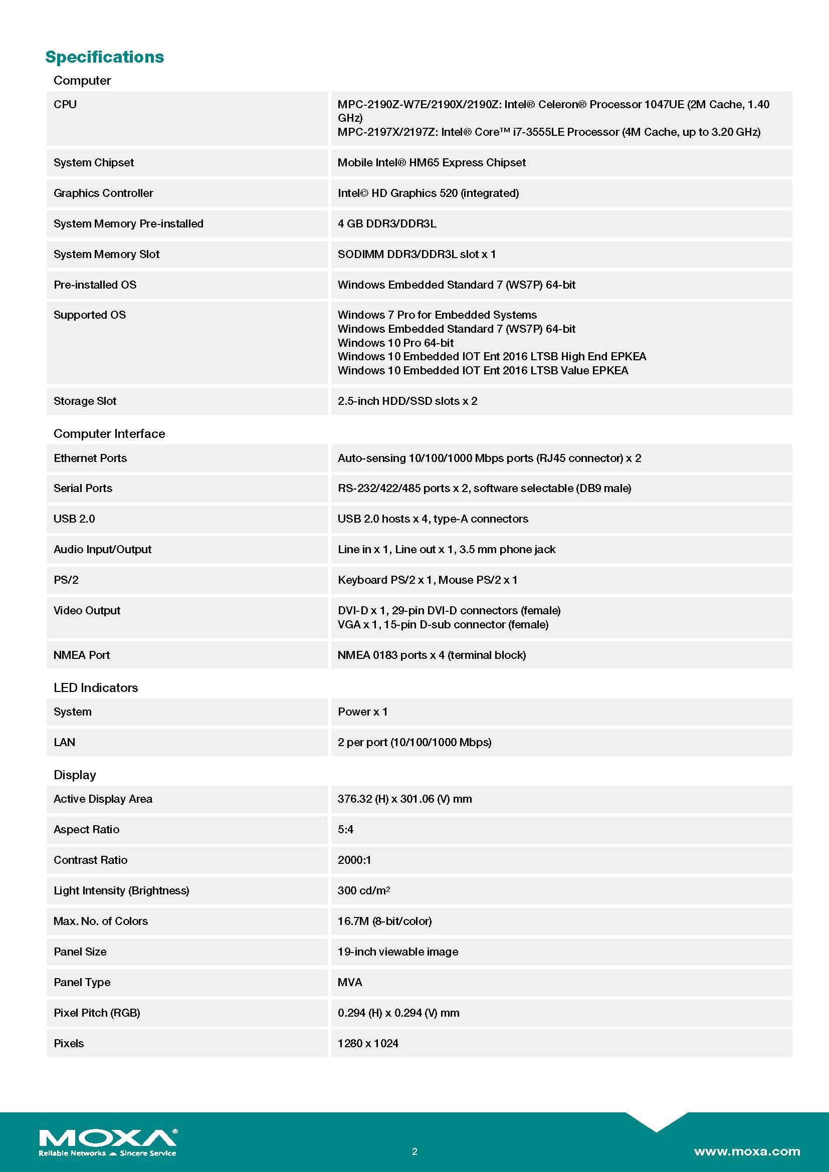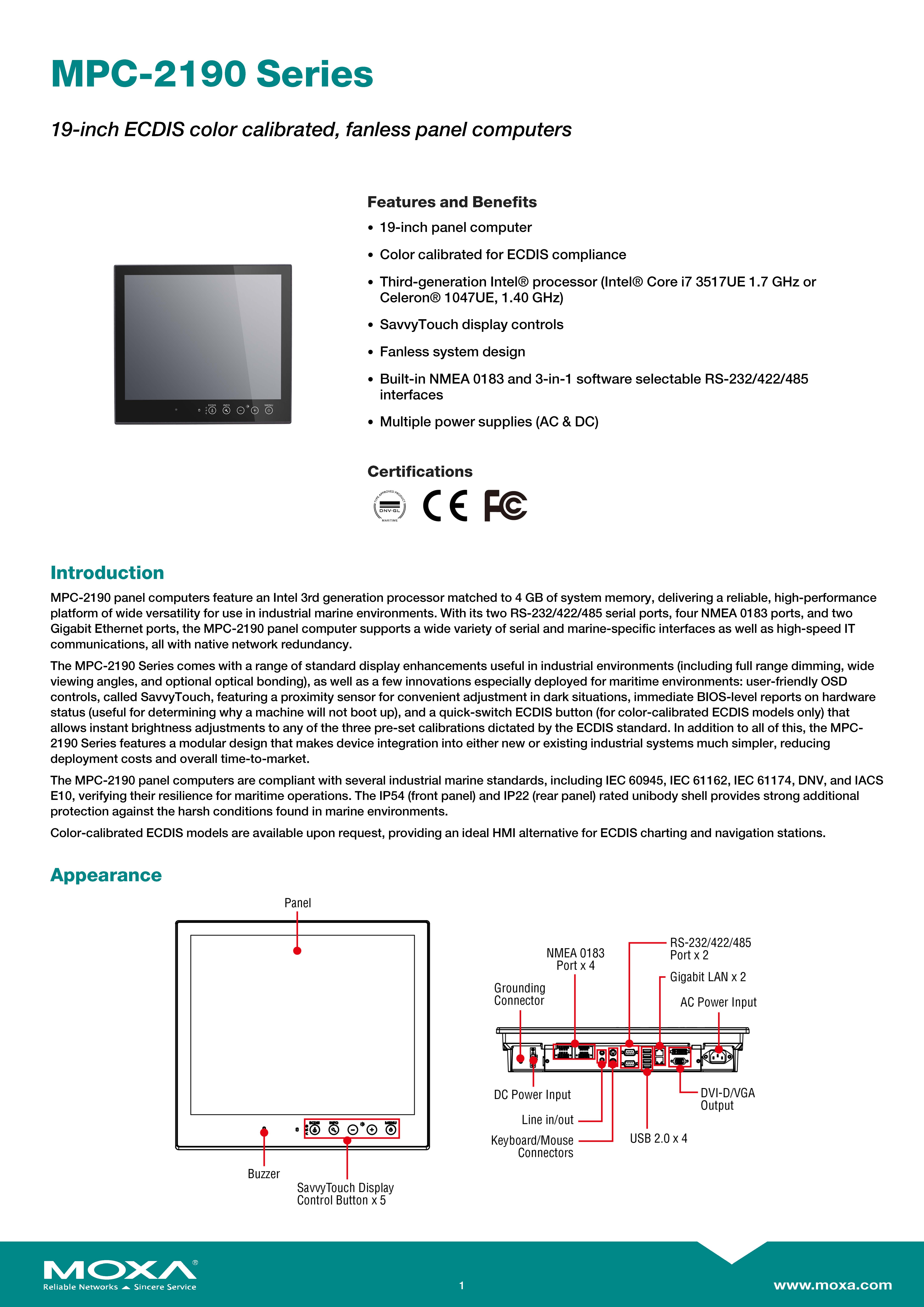 MOXA Industrial Panel Computers Model: MPC-2197X 19 inch fanless panel computer with Intel Core i7 processor 2610UE 1.50GHz CPU, NMEA 0183, SSD trays, dual AC/DC power inputs, tap bonding ขอราคาพิเศษสำหรับงานโครงการ ติดต่อฝ่ายขาย Line ID : @aimonline ฝ่ายขายโทร: 063-879-9917 ( สินค้ายังไม่รวมภาษีมูลค่าเพิ่ม, ค่าขนส่ง ) เช็คสต๊อกล่าสุดสินค้าก่อนสั่งซื้อ ราคายังไม่รวมค่าติดตั้ง