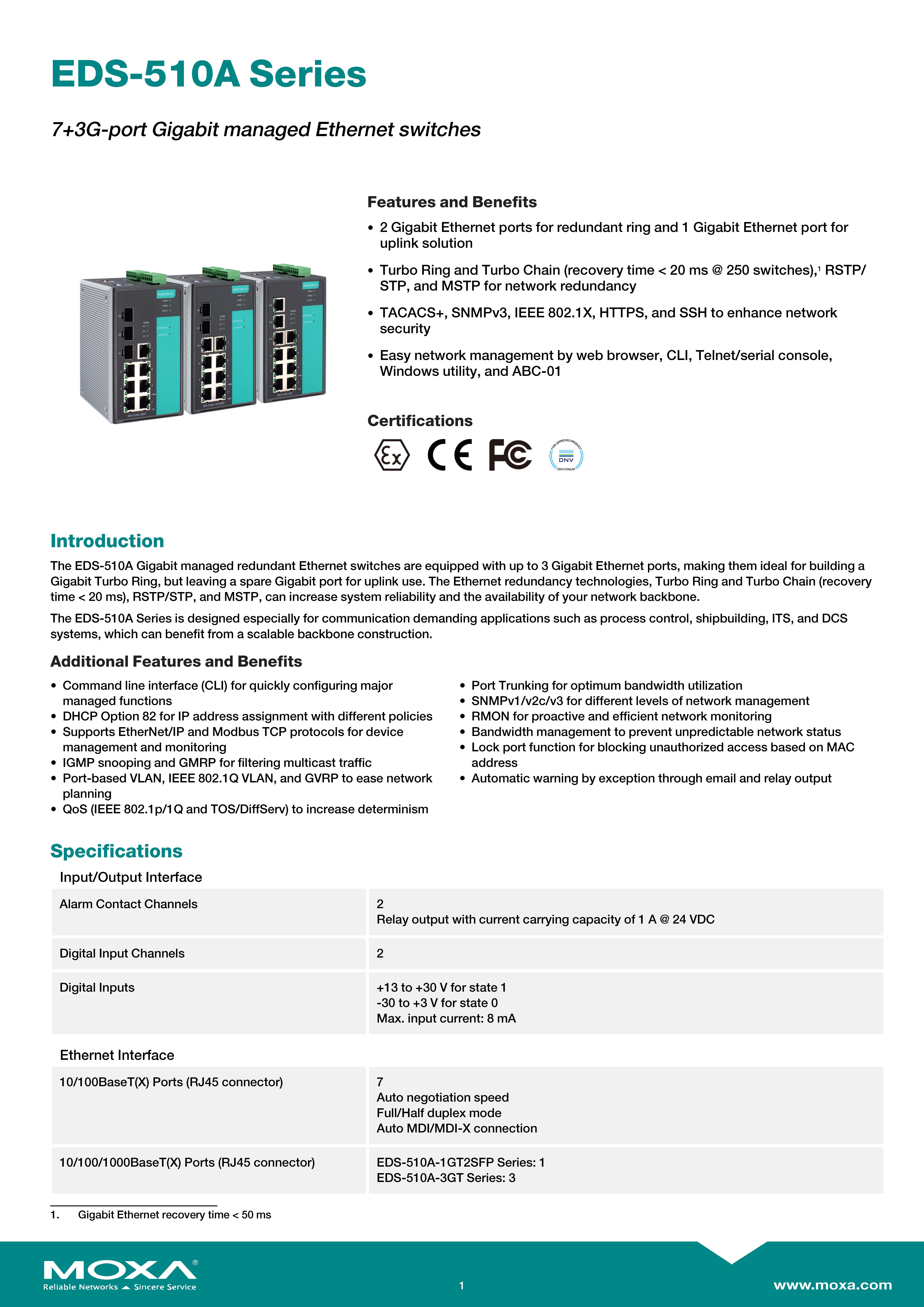 MOXA Layer 2 Managed Switches Model: EDS-510A-1GT2SFP ขอราคาพิเศษสำหรับงานโครงการ ติดต่อฝ่ายขาย Line ID : @aimonline ฝ่ายขายโทร: 063-879-9917 ( สินค้ายังไม่รวมภาษีมูลค่าเพิ่ม, ค่าขนส่ง ) เช็คสต๊อกล่าสุดสินค้าก่อนสั่งซื้อ ราคายังไม่รวมค่าติดตั้ง