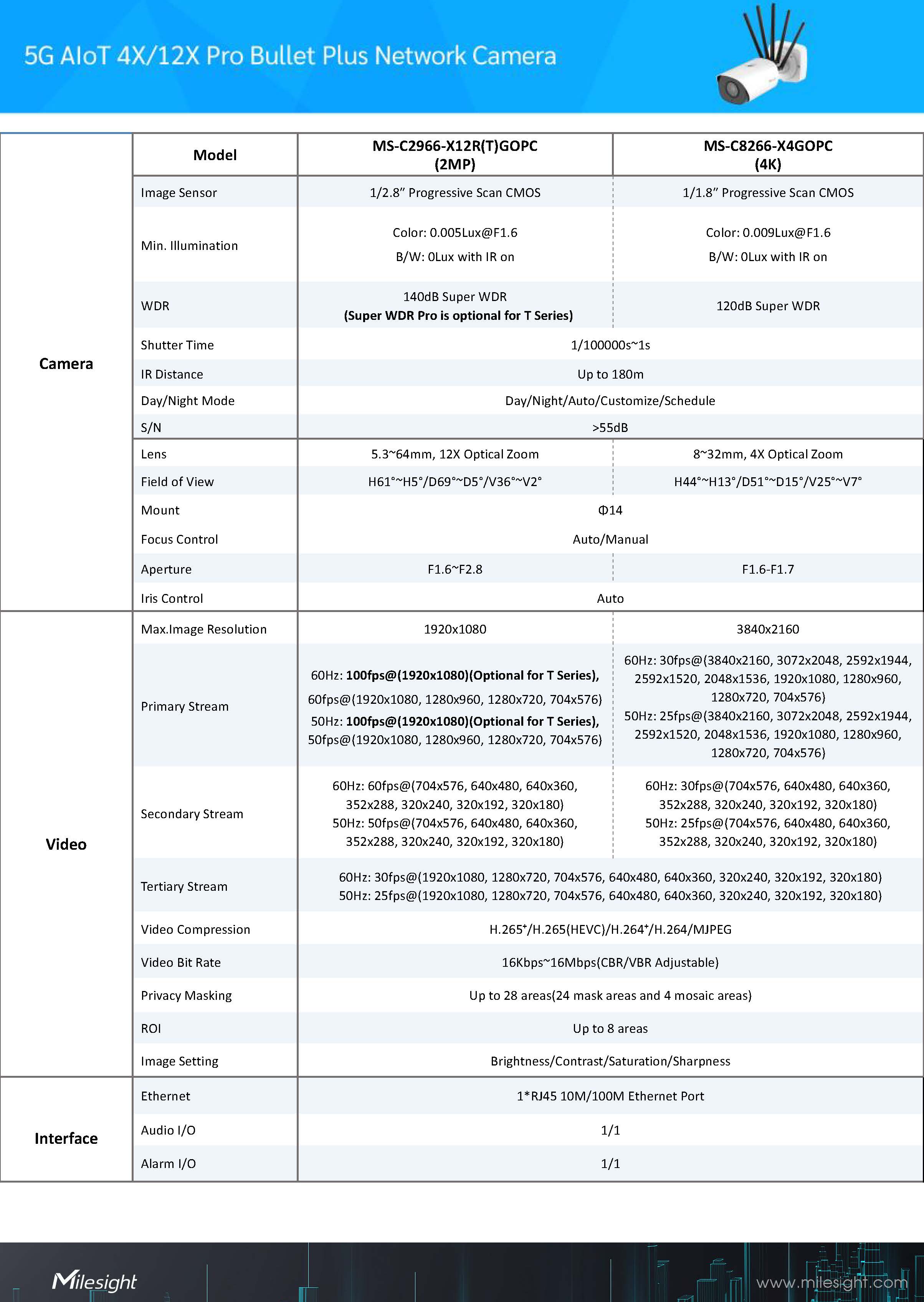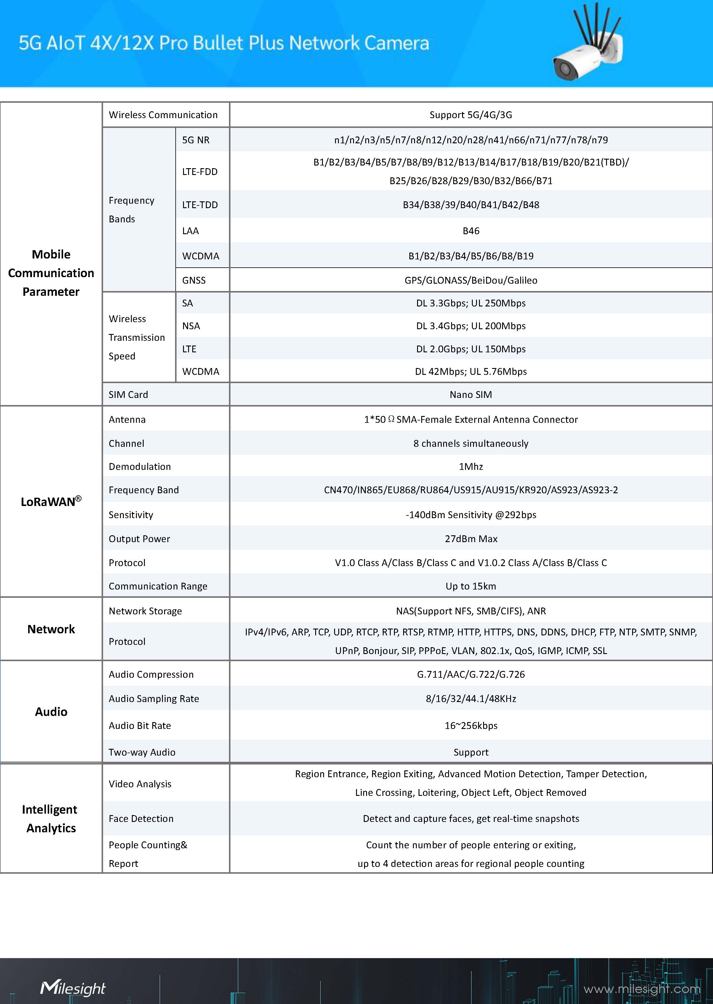 Milesight 5G AloT 4X/12X Pro Bullet Plus Network Camera Model MS-C2966-X12R(T)GOPC (2MP) ขอราคาพิเศษสำหรับงานโครงการ ติดต่อฝ่ายขาย Line ID : @aimonline ฝ่ายขายโทร: 063-879-9917 ( สินค้ายังไม่รวมภาษีมูลค่าเพิ่ม, ค่าขนส่ง ) เช็คสต๊อกล่าสุดสินค้าก่อนสั่งซื้อ ราคายังไม่รวมค่าติดตั้ง #NP 24
