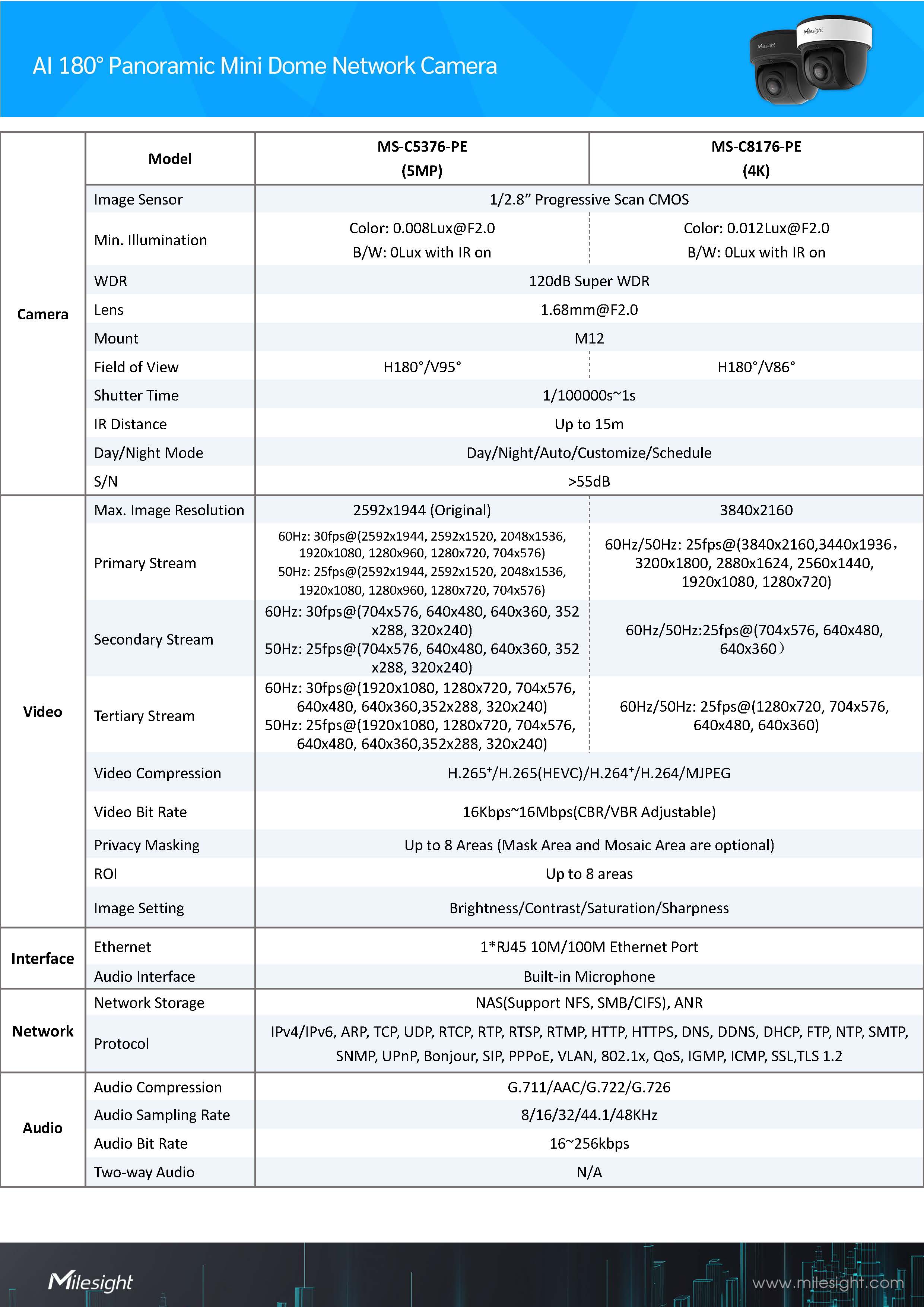 Milesight AI 180° Panoramic Mini Dome Network Camera Model MS-C5376-PE (5MP) ขอราคาพิเศษสำหรับงานโครงการ ติดต่อฝ่ายขาย Line ID : @aimonline ฝ่ายขายโทร: 063-879-9917 ( สินค้ายังไม่รวมภาษีมูลค่าเพิ่ม, ค่าขนส่ง ) เช็คสต๊อกล่าสุดสินค้าก่อนสั่งซื้อ ราคายังไม่รวมค่าติดตั้ง #NP 24