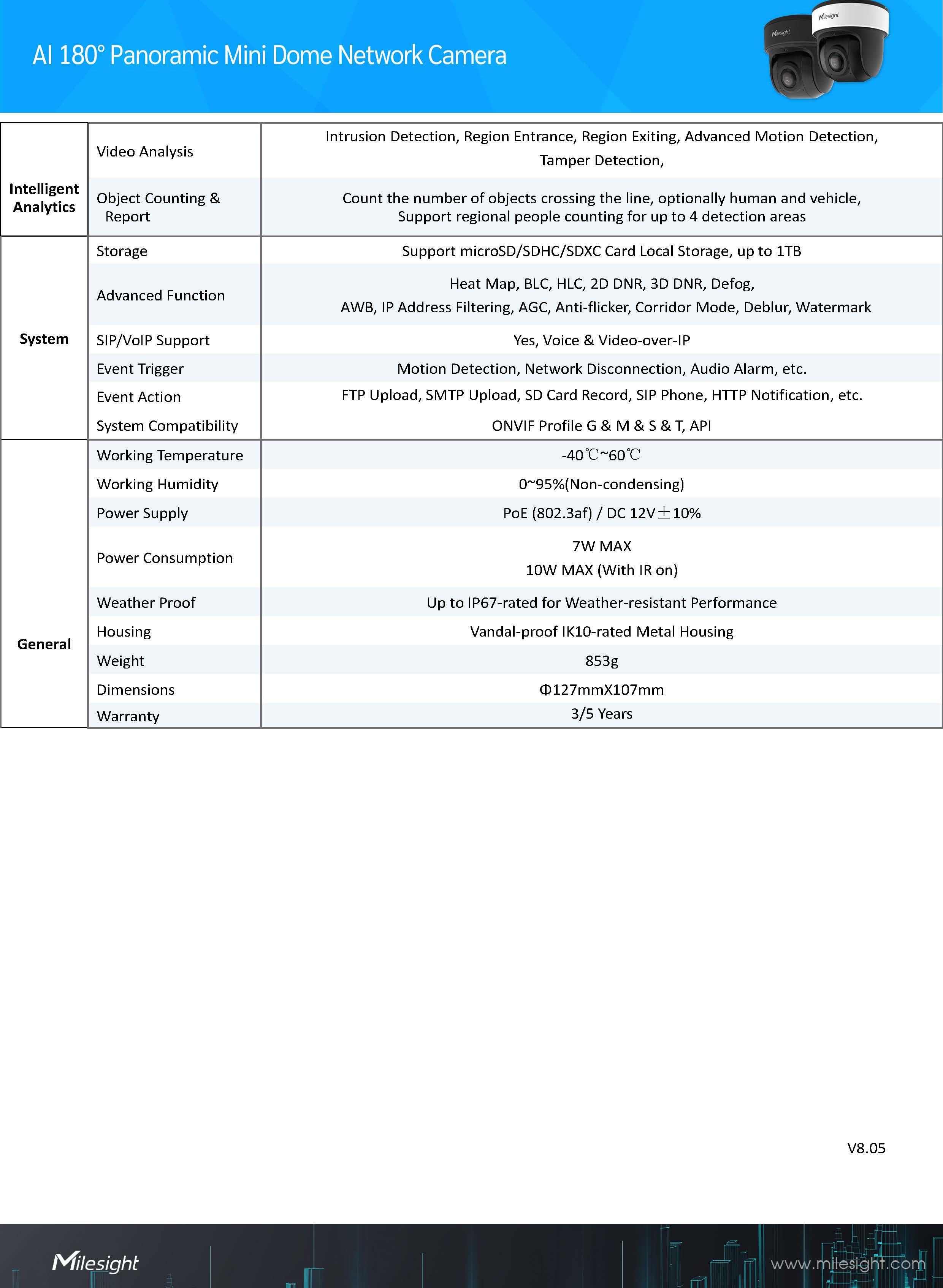 Milesight AI 180° Panoramic Mini Dome Network Camera Model MS-C8176-PA(4K) ขอราคาพิเศษสำหรับงานโครงการ ติดต่อฝ่ายขาย Line ID : @aimonline ฝ่ายขายโทร: 063-879-9917 ( สินค้ายังไม่รวมภาษีมูลค่าเพิ่ม, ค่าขนส่ง ) เช็คสต๊อกล่าสุดสินค้าก่อนสั่งซื้อ ราคายังไม่รวมค่าติดตั้ง #NP 24