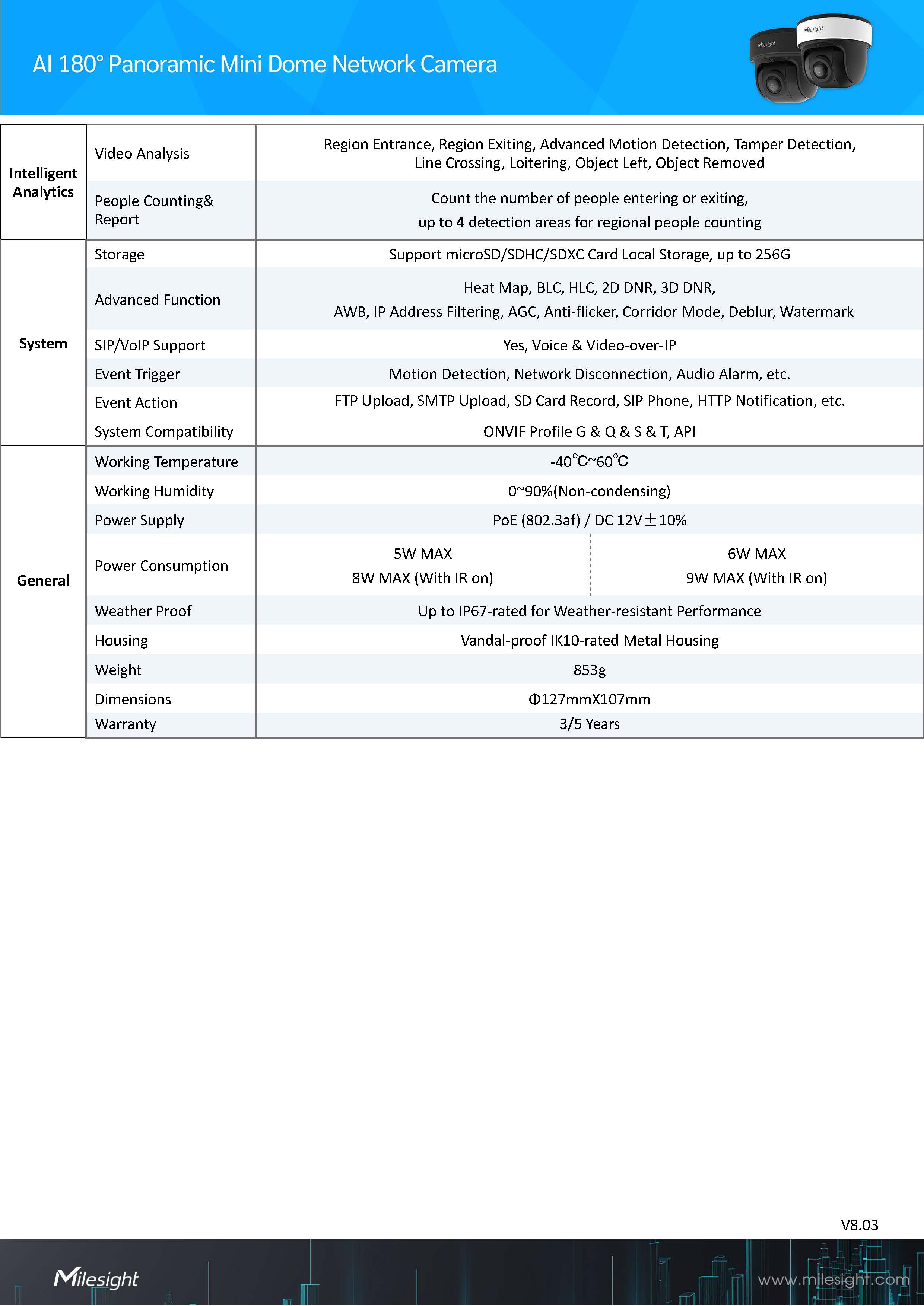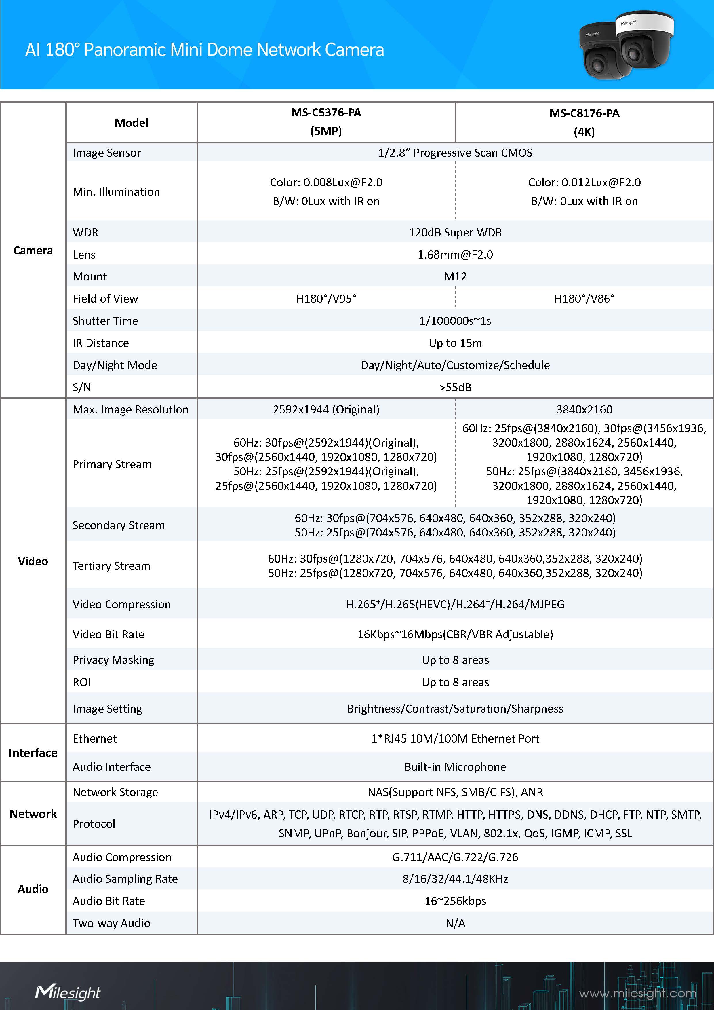 Milesight AI 180° Panoramic Mini Dome Network Camera Model MS-C5376-PA (5MP) ขอราคาพิเศษสำหรับงานโครงการ ติดต่อฝ่ายขาย Line ID : @aimonline ฝ่ายขายโทร: 063-879-9917 ( สินค้ายังไม่รวมภาษีมูลค่าเพิ่ม, ค่าขนส่ง ) เช็คสต๊อกล่าสุดสินค้าก่อนสั่งซื้อ ราคายังไม่รวมค่าติดตั้ง #NP 24