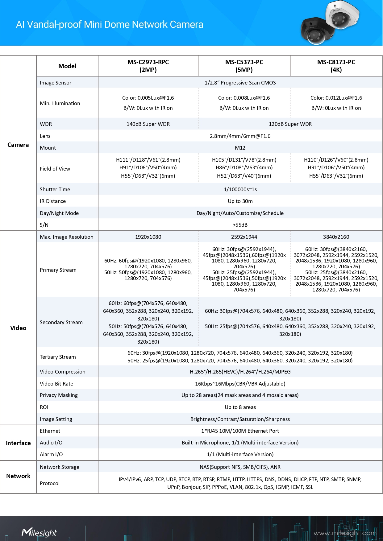 Milesight AI Vandal-proof Mini Dome Network Camera Model MS-C8173-PC(4K)ขอราคาพิเศษสำหรับงานโครงการ ติดต่อฝ่ายขาย Line ID : @aimonline ฝ่ายขายโทร: 063-879-9917 ( สินค้ายังไม่รวมภาษีมูลค่าเพิ่ม, ค่าขนส่ง ) เช็คสต๊อกล่าสุดสินค้าก่อนสั่งซื้อ ราคายังไม่รวมค่าติดตั้ง #NP 24
