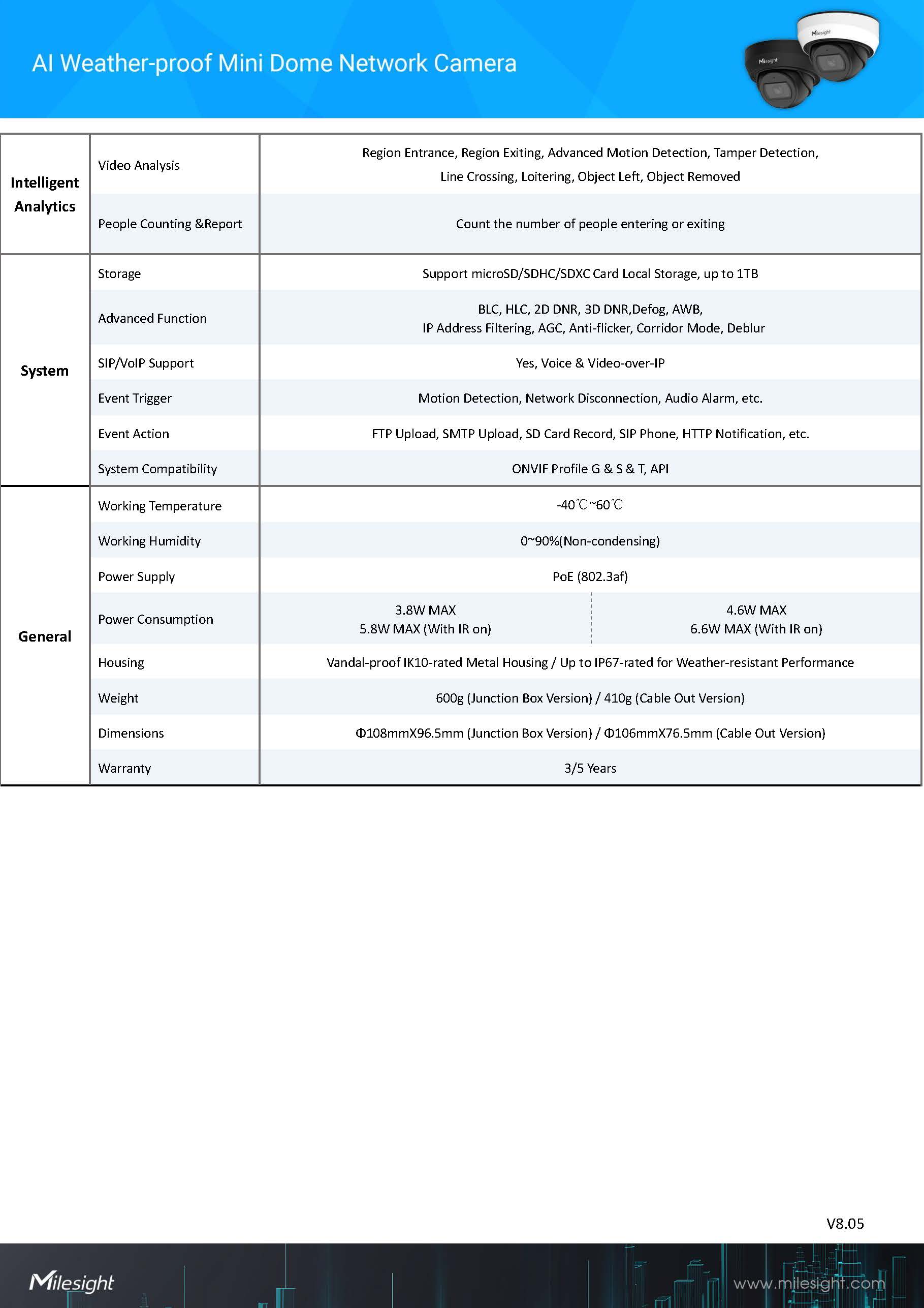 Milesight AI Weather-proof Mini Dome Network CameraModel:MS-C2975-(R)PD (2MP)ขอราคาพิเศษสำหรับงานโครงการ ติดต่อฝ่ายขาย Line ID : @aimonline ฝ่ายขายโทร: 063-879-9917 (สินค้ายังไม่รวมภาษีมูลค่าเพิ่ม,ค่าขนส่ง) เช็คสต๊อกล่าสุดสินค้าก่อนสั่งซื้อ ราคายังไม่รวมค่าติดตั้ง #NP24