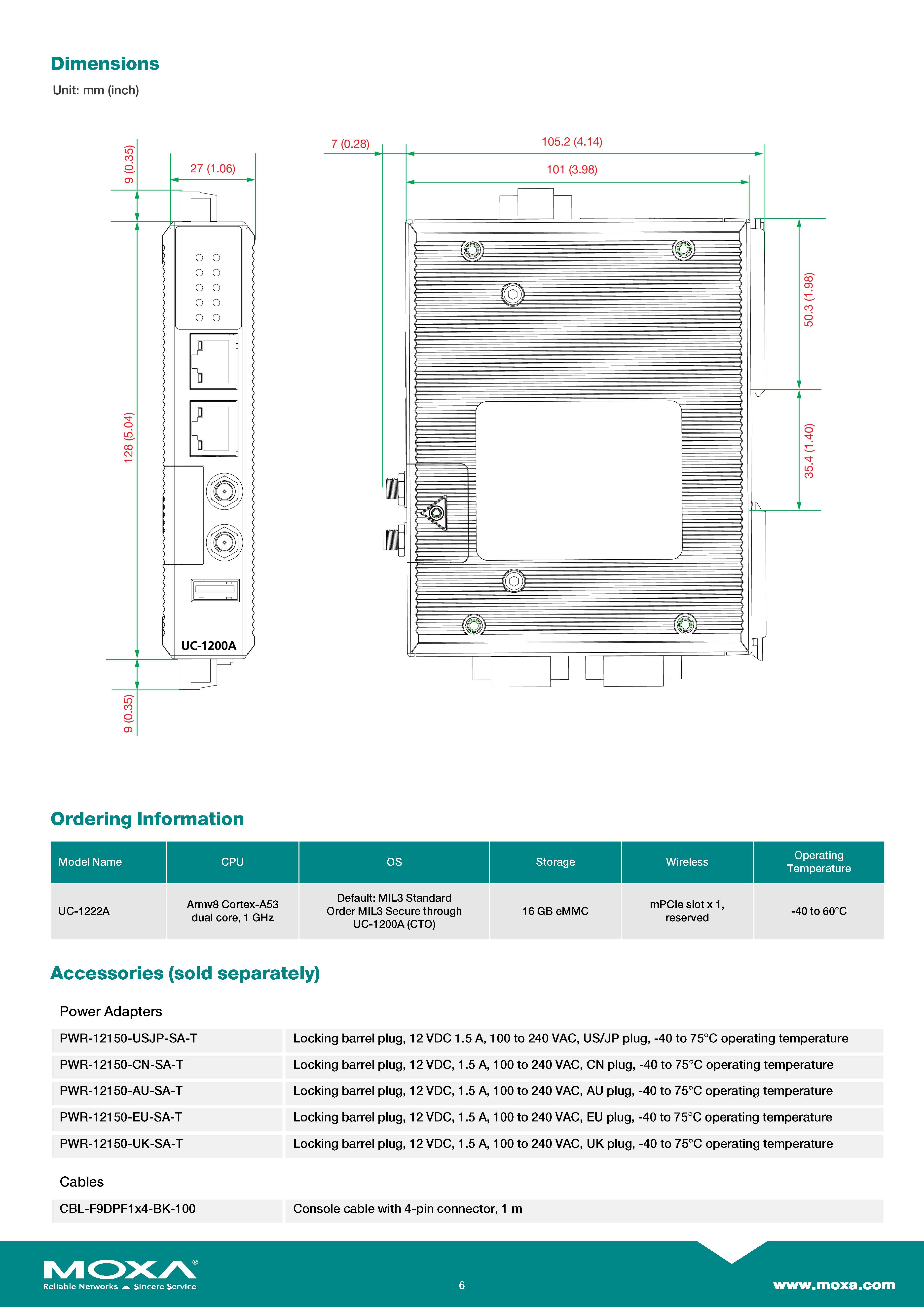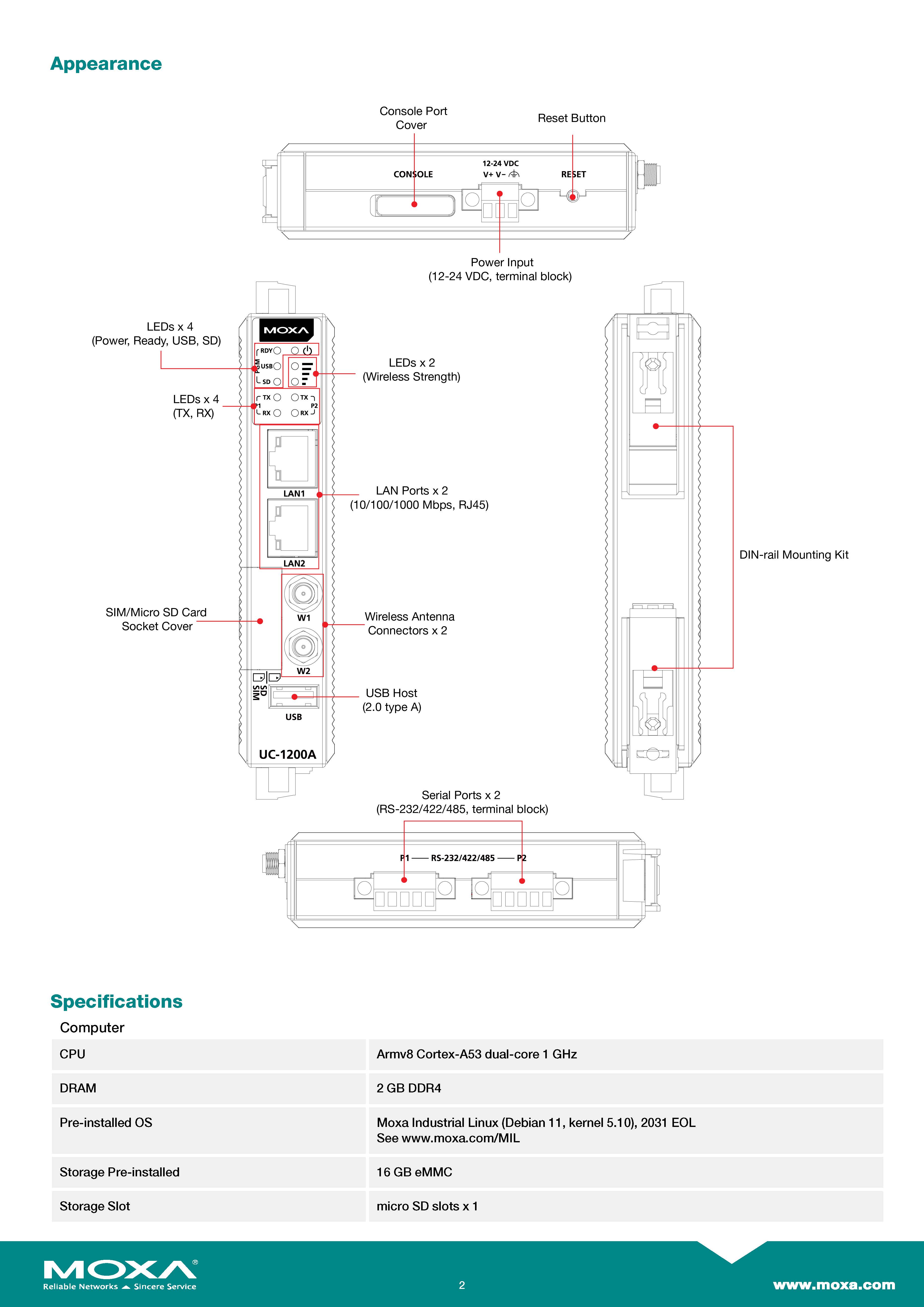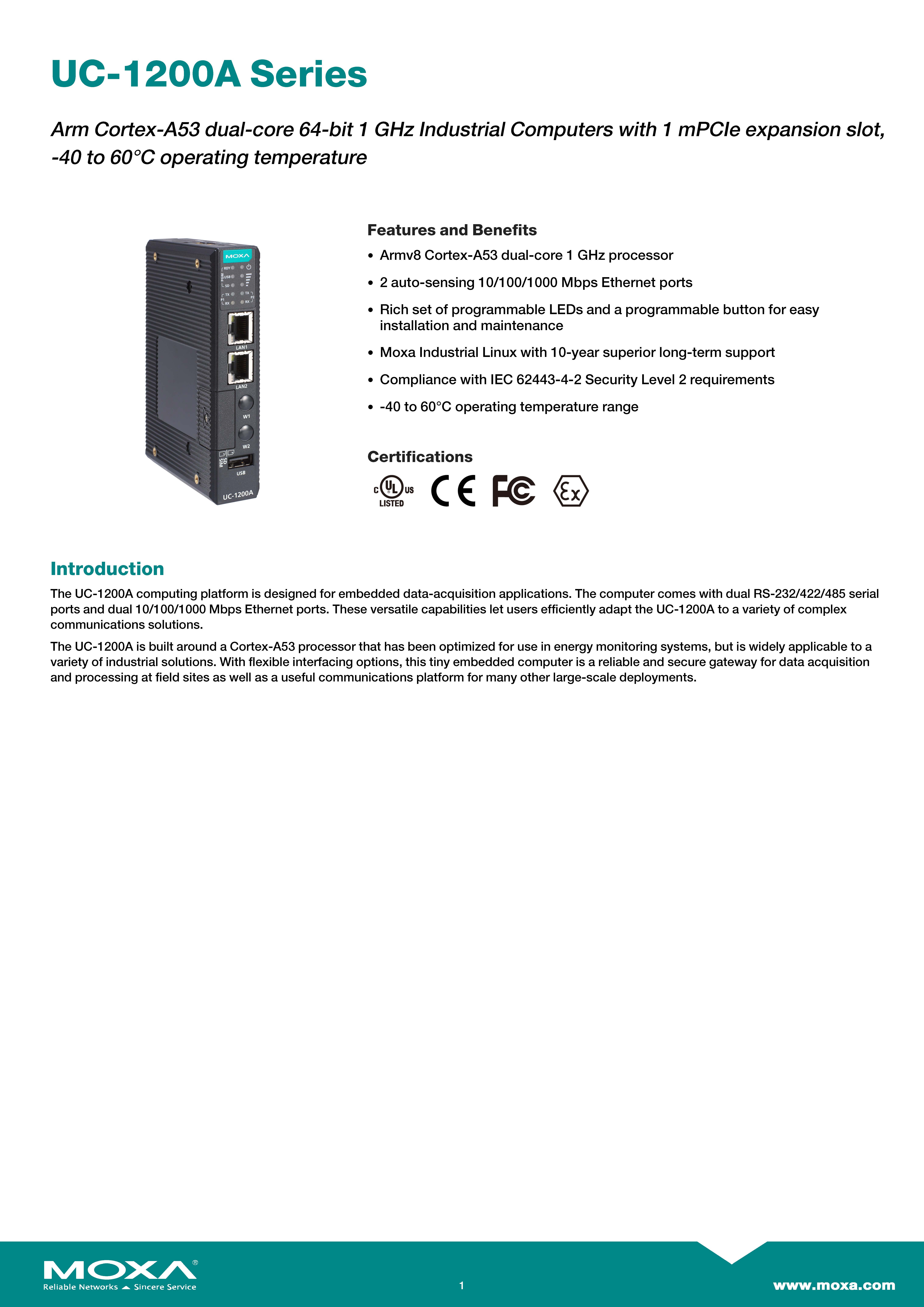 สินค้ายี่ห้อ MOXA รุ่น UC-1200A รายละเอียดสินค้า คอมพิวเตอร์ฝังตัวระดับอุตสาหกรรม (Arm-Based Industrial Embedded Computer)ขับเคลื่อนด้วยขุมพลังประมวลผล Armv8 Cortex-A53 แบบ Dual-core 1 GHz มาพร้อมระบบปฏิบัติการ Moxa Industrial Linux ในตัว โดดเด่นด้วยพอร์ตเชื่อมต่อเครือข่าย Gigabit Ethernet 2 ช่อง และพอร์ตซีเรียล (RS-232/422/485) 2 ช่อง พร้อมสล็อต Mini PCIe สำหรับติดตั้งโมดูลสื่อสารไร้สาย ภายใต้ตัวเรือนขนาดกะทัดรัดที่ทนทานต่ออุณหภูมิการทำงานตั้งแต่ -40 ถึง 60°C ตอบโจทย์การใช้งานเป็นศูนย์กลางเก็บรวบรวมข้อมูล (Data Acquisition) สำหรับระบบตรวจสอบพลังงานและโซลูชันอุตสาหกรรมได้อย่างมีเสถียรภาพสูงสุด ✅ ขอราคาพิเศษสำหรับงานโครงการติดต่อ Mobile : 063-879-9917 Line ID @aimonline *ราคาสินค้าอาจจะมีการเปลี่ยนแปลงโดยไม่แจ้งให้ทราบล่วงหน้า กรุณาติดต่อฝ่ายขายเพื่ออัพเดทราคาทราคา